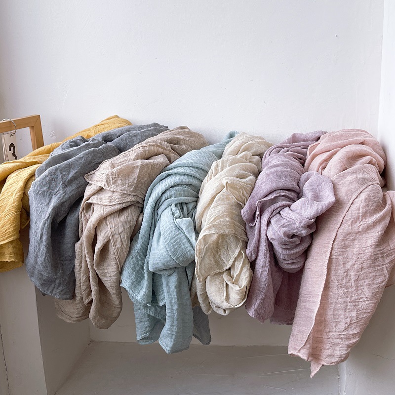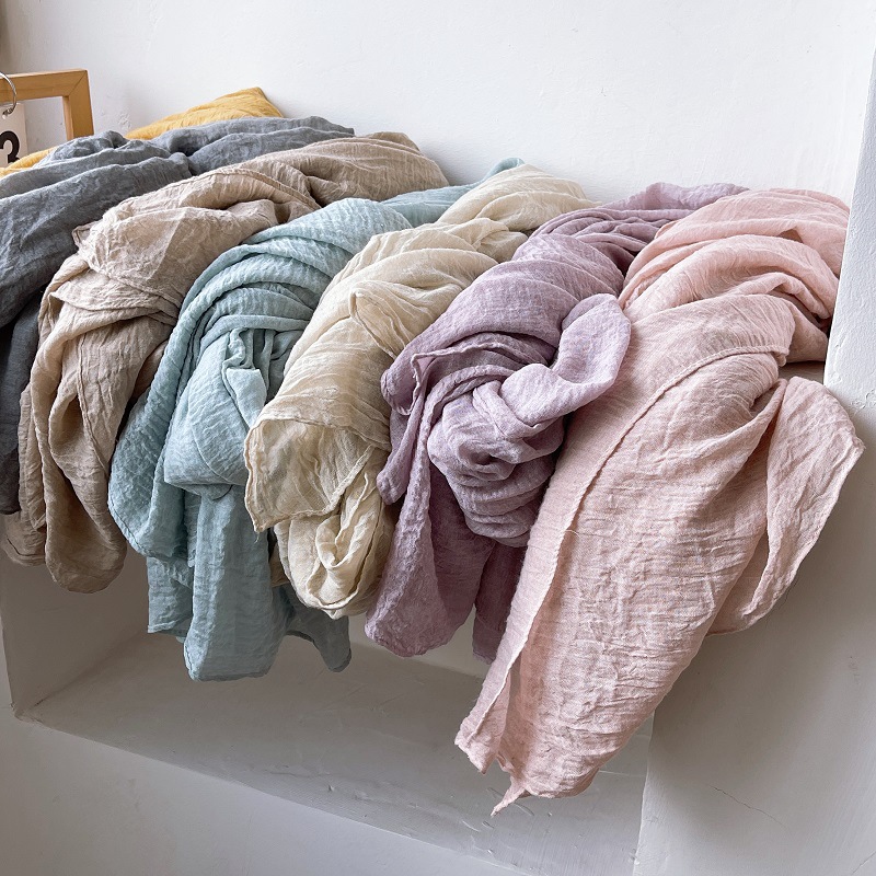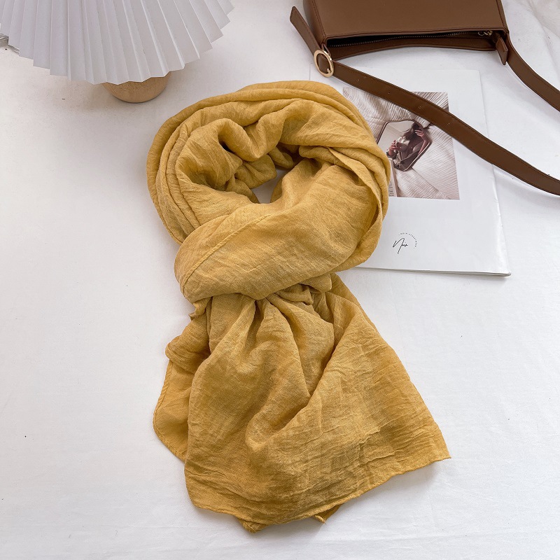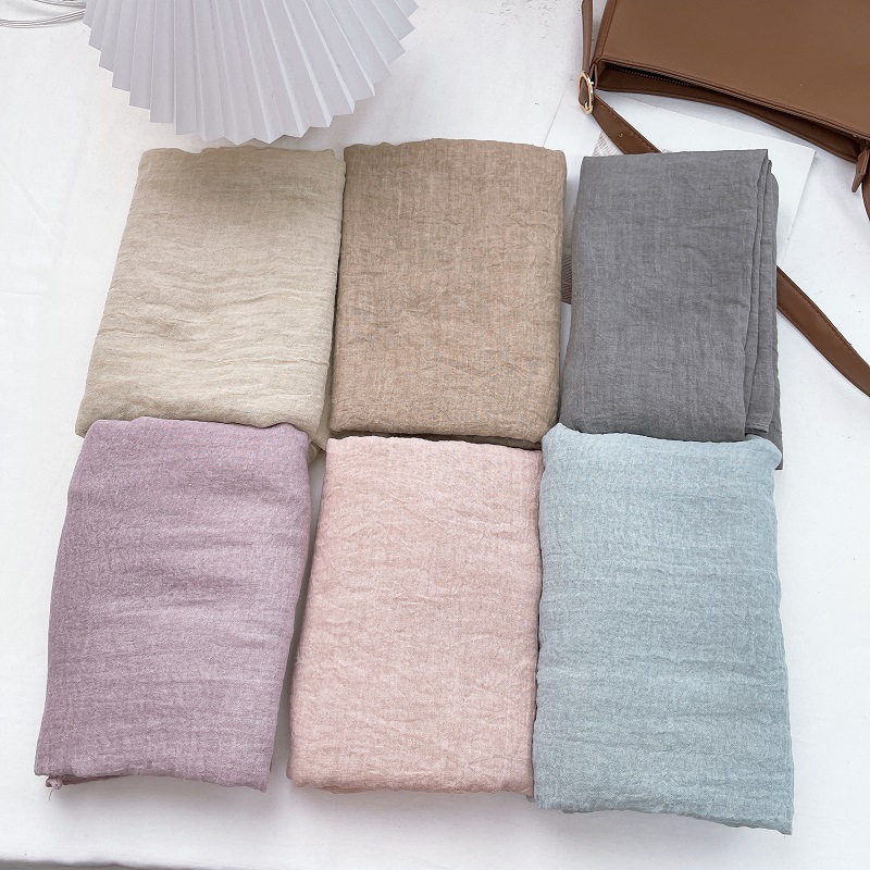 질감 패턴 주름 린넨 스카프 향수 컬러 빈티지 염색 코튼 리넨 스카프 여성의 봄과 가을 오리지널 실크 스카프 가을과 겨울스토어 가기