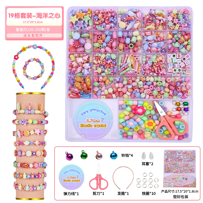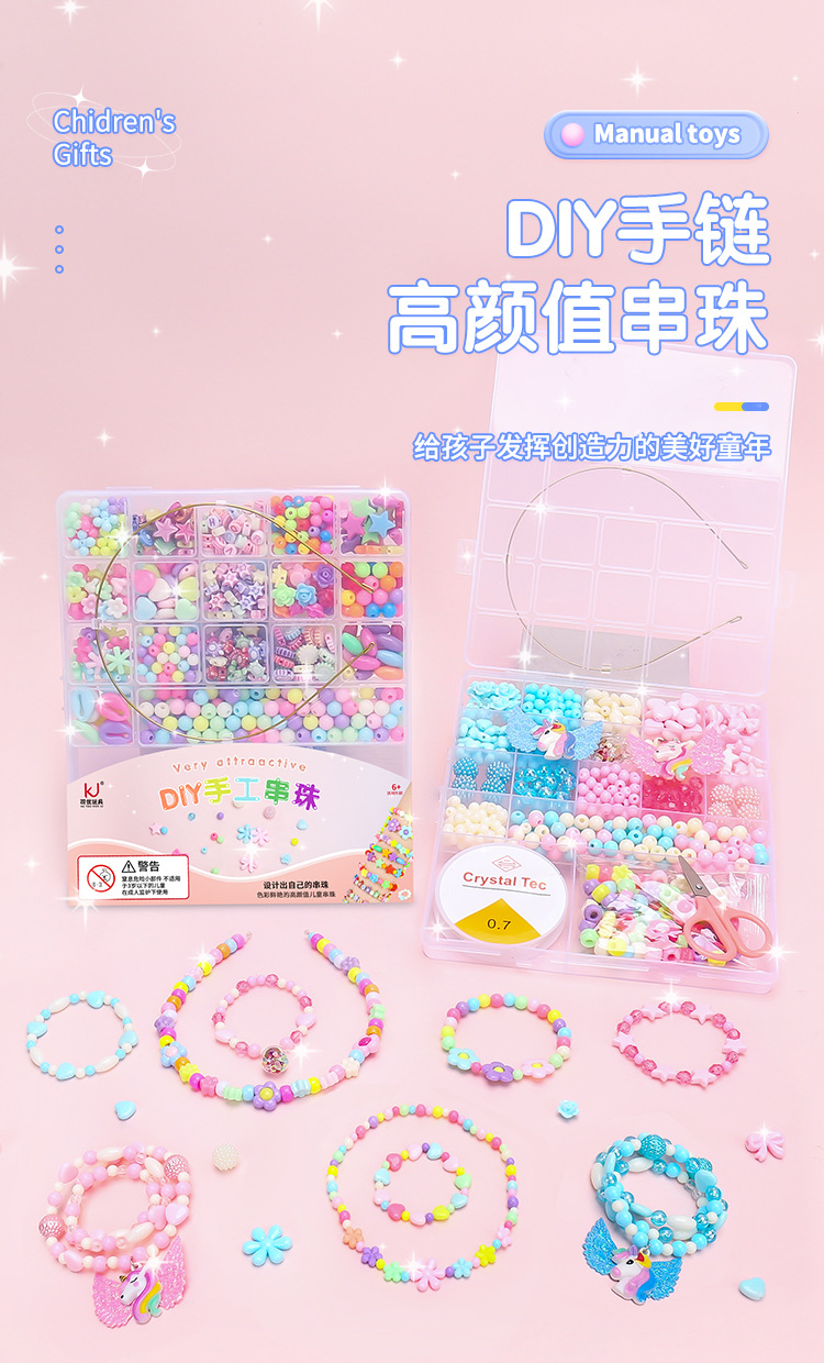 어린이 팔찌 구슬 수제 DIY 소재 팔찌 구슬 목걸이 선물 상자 소녀 교육 어린 소녀 장난감스토어 가기