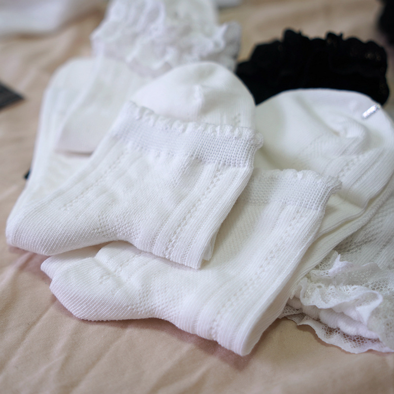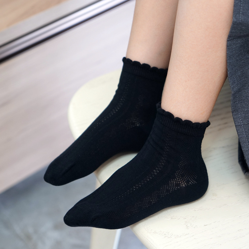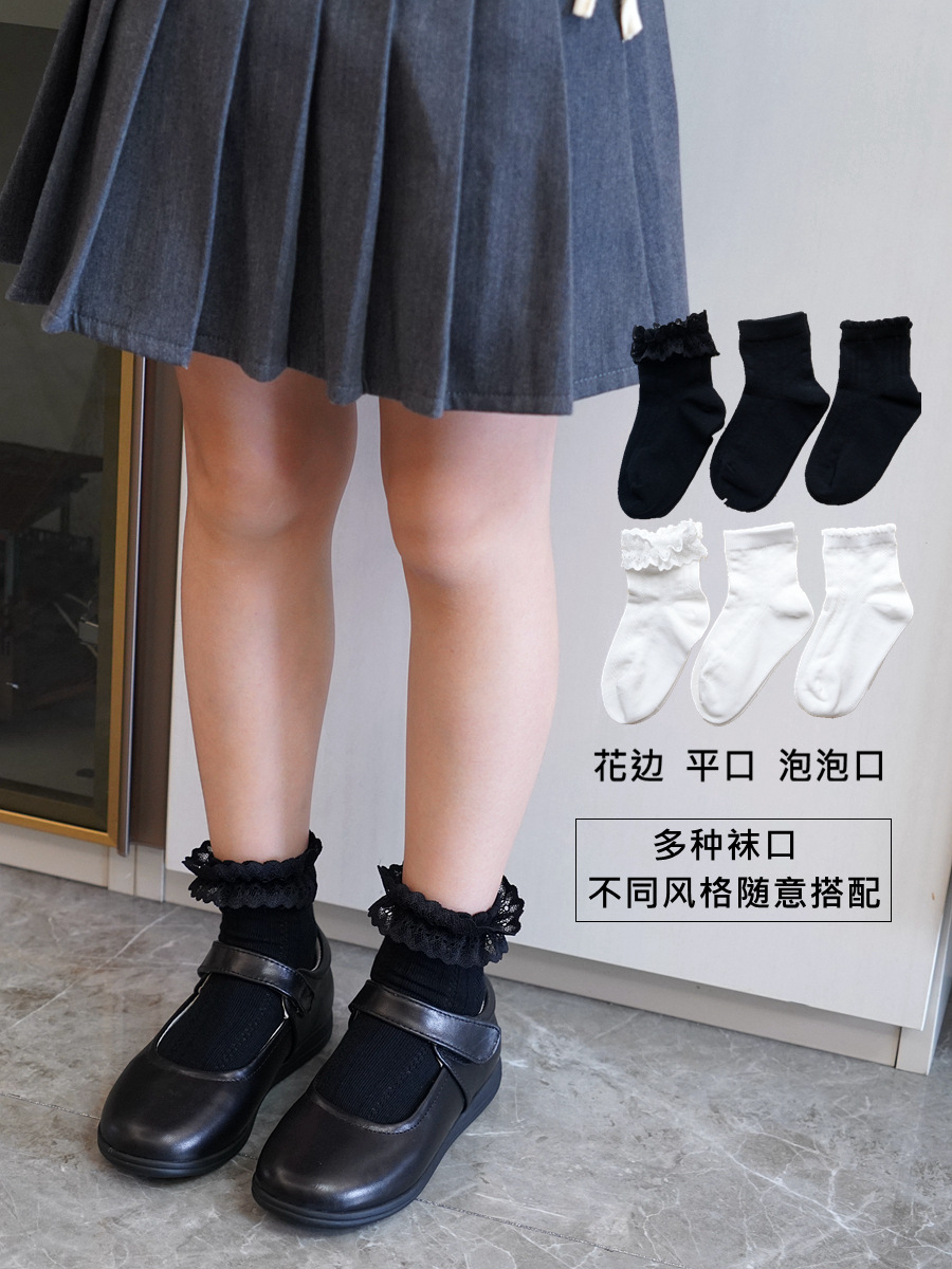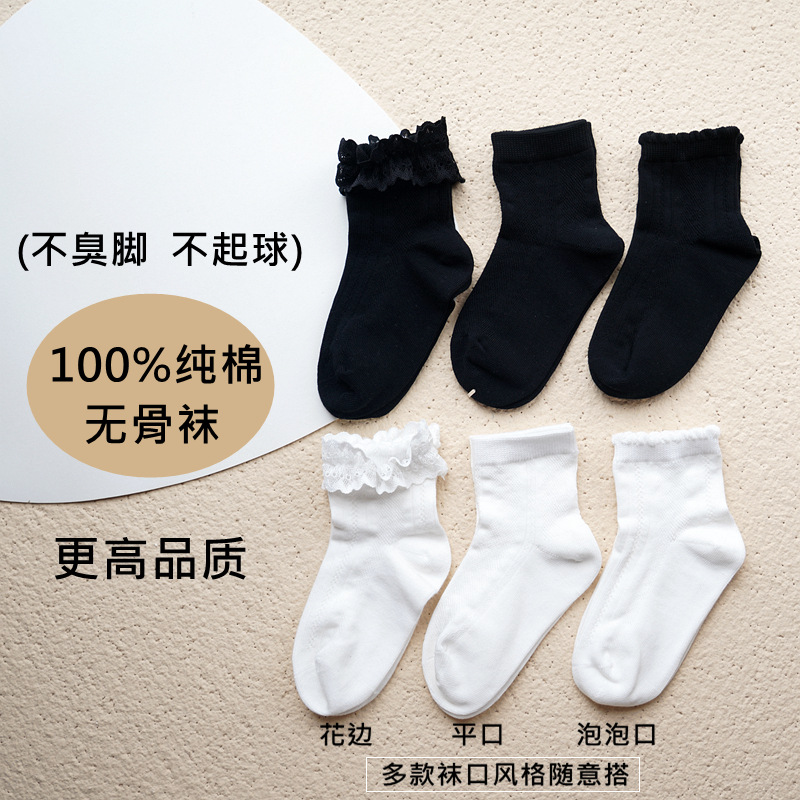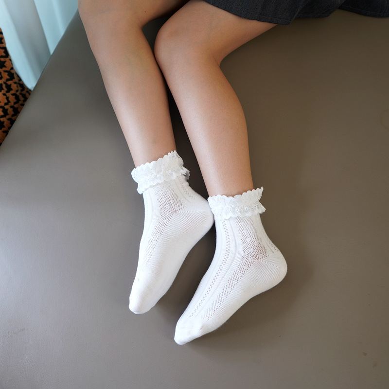 도매 어린이 양말 100% 면 블랙 화이트 학생 양말 소녀 레이스 양말 얇은 메쉬 미드 튜브 양말스토어 가기