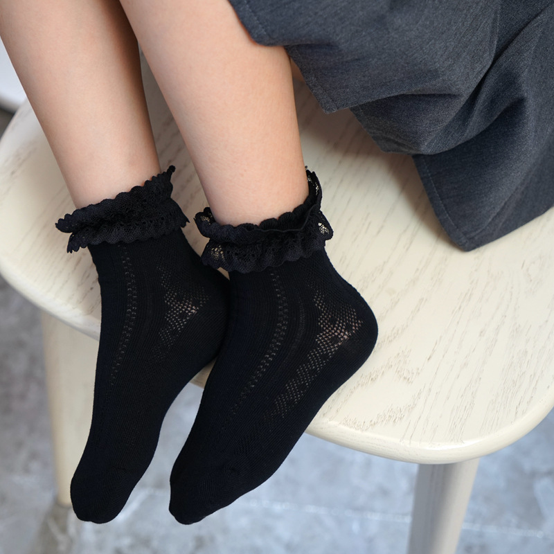 도매 어린이 양말 100% 면 블랙 화이트 학생 양말 소녀 레이스 양말 얇은 메쉬 미드 튜브 양말