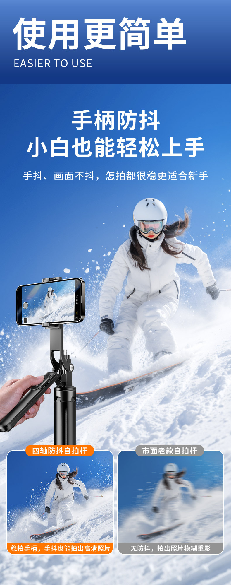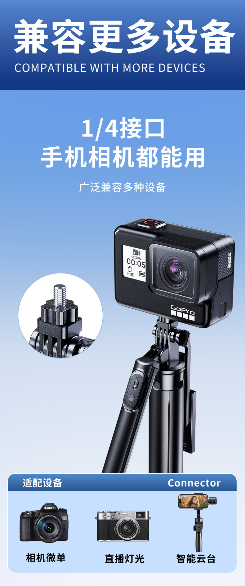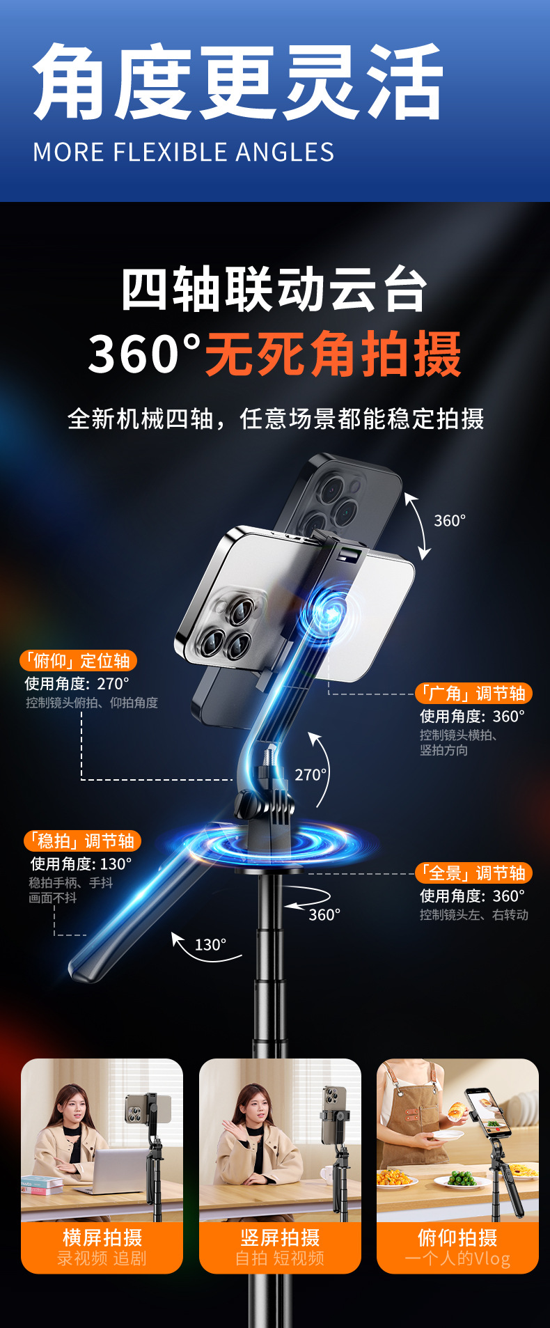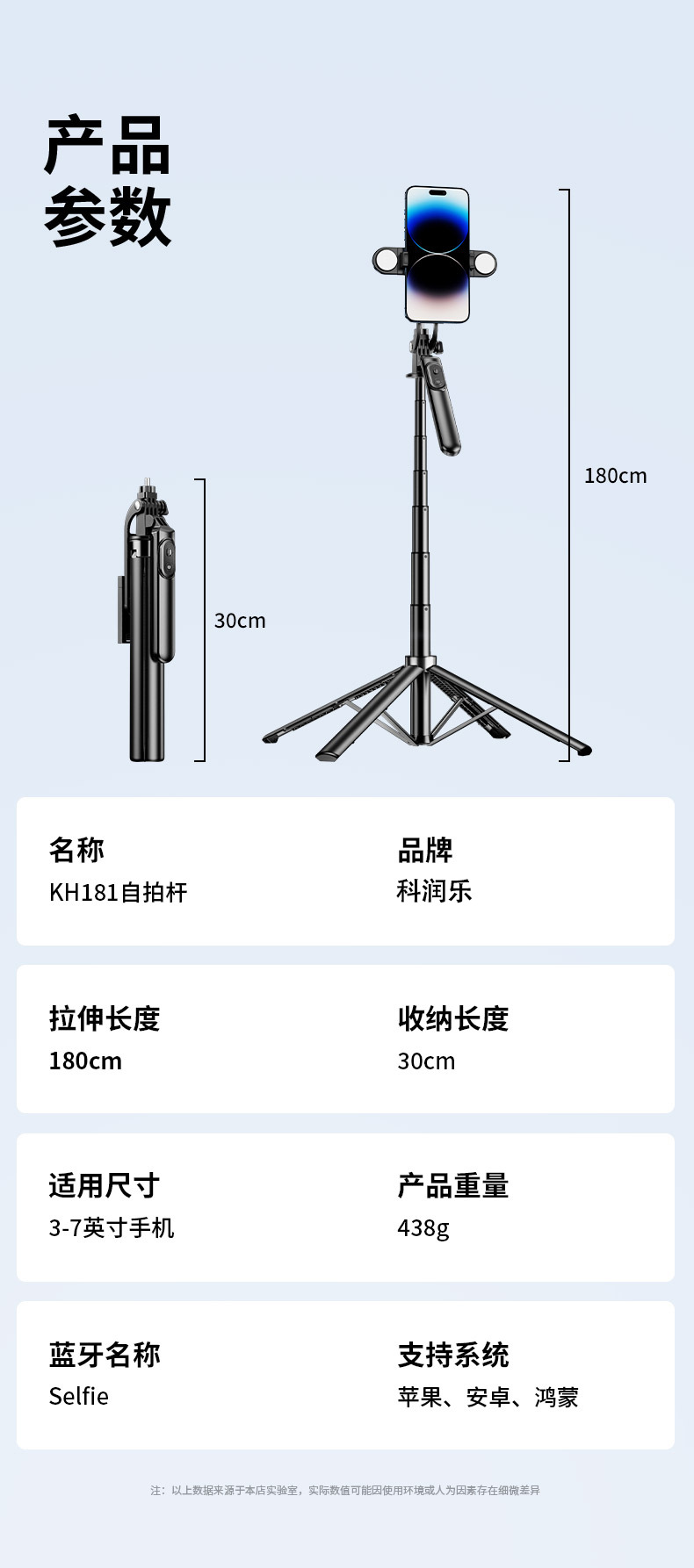 • 1.8m [알루미늄 합금 + 단일 보조광] 4축 파노라마 손떨림 방지 및 안정적인 촬영 - 4각 안정성 업그레이드 - 20m 충전 리모컨