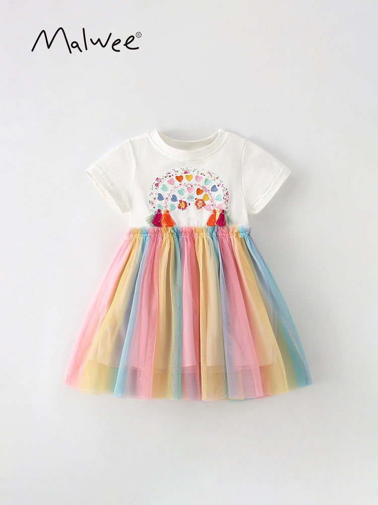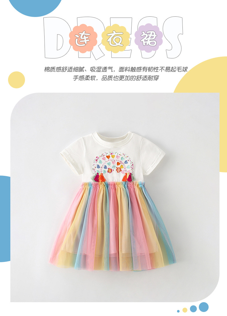 말위 어린이 공주 원피스 여름 새로운 유럽과 미국 어린이 서양식 소녀의 둥근 목 짧은 소매 치마