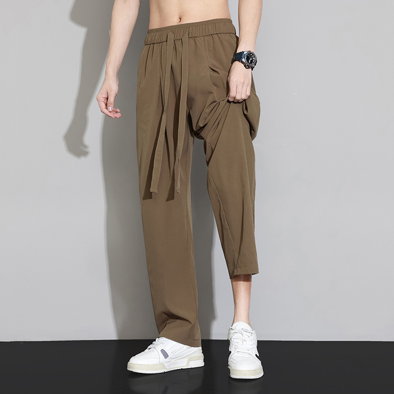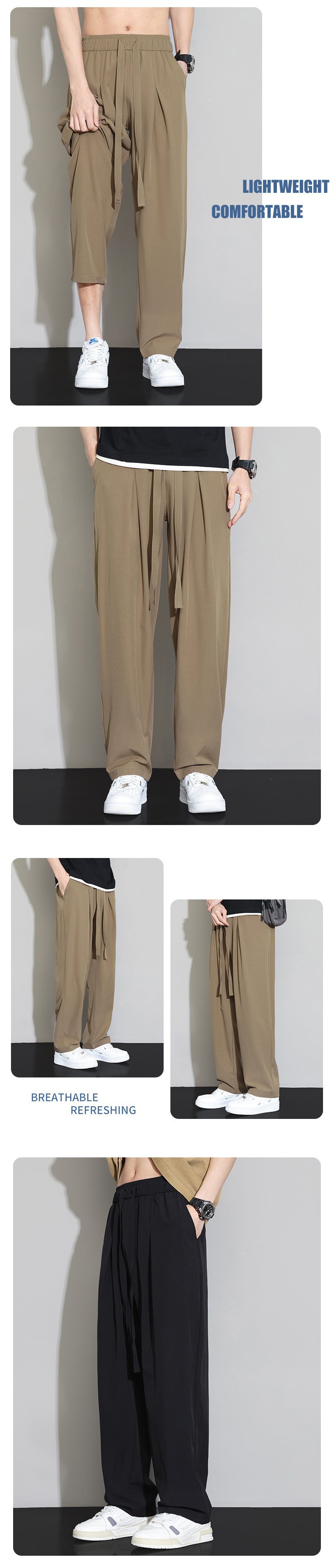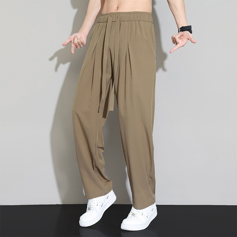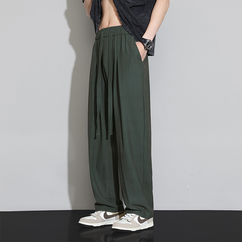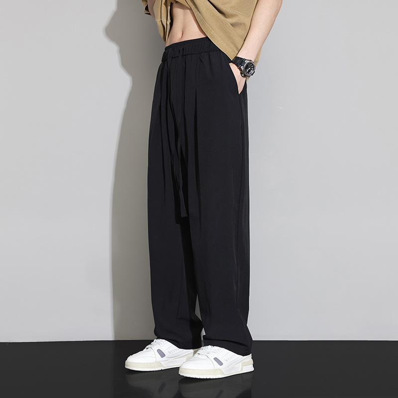 남자 캐주얼 바지 2024 새로운 여름 플러스 사이즈 아이스 실크 얇은 스트레이트 바지 남자 스포츠 탄성 에어컨 바지 바지
