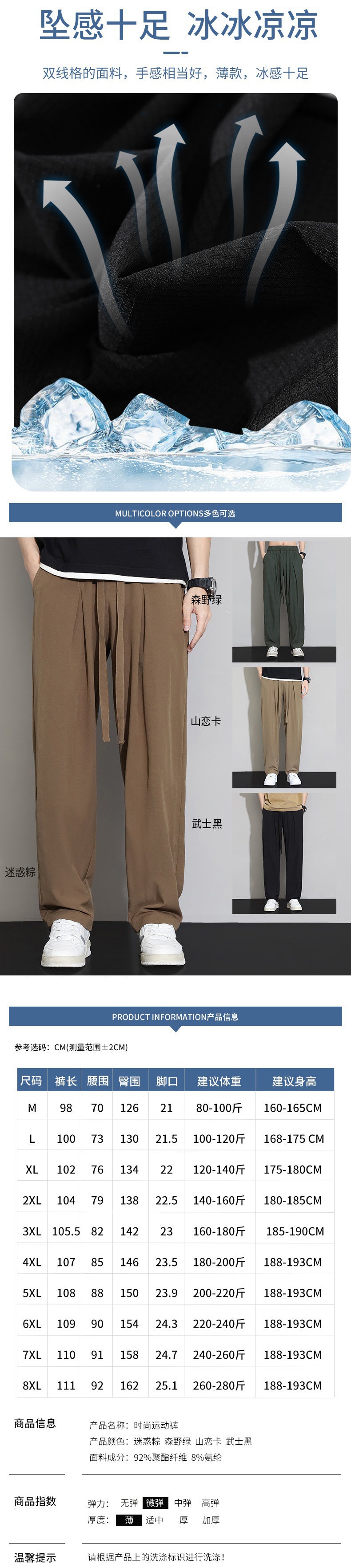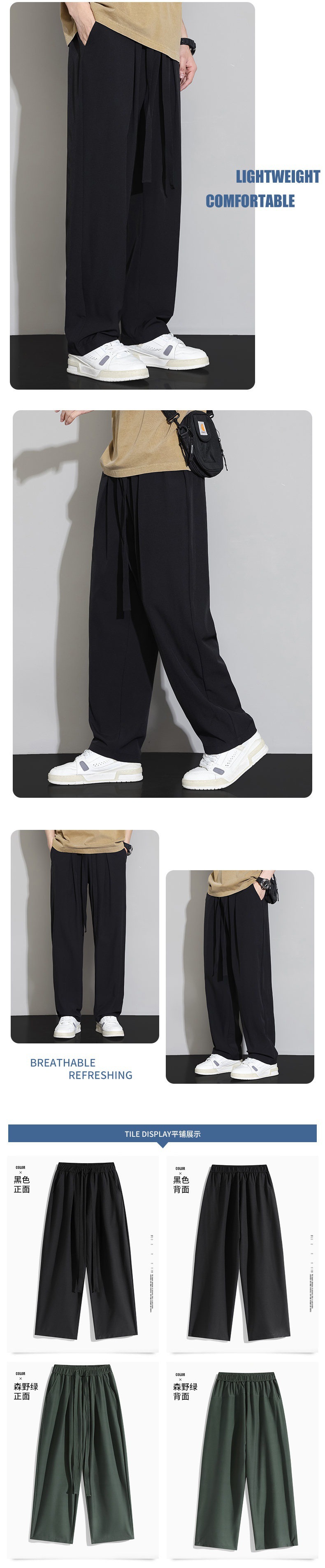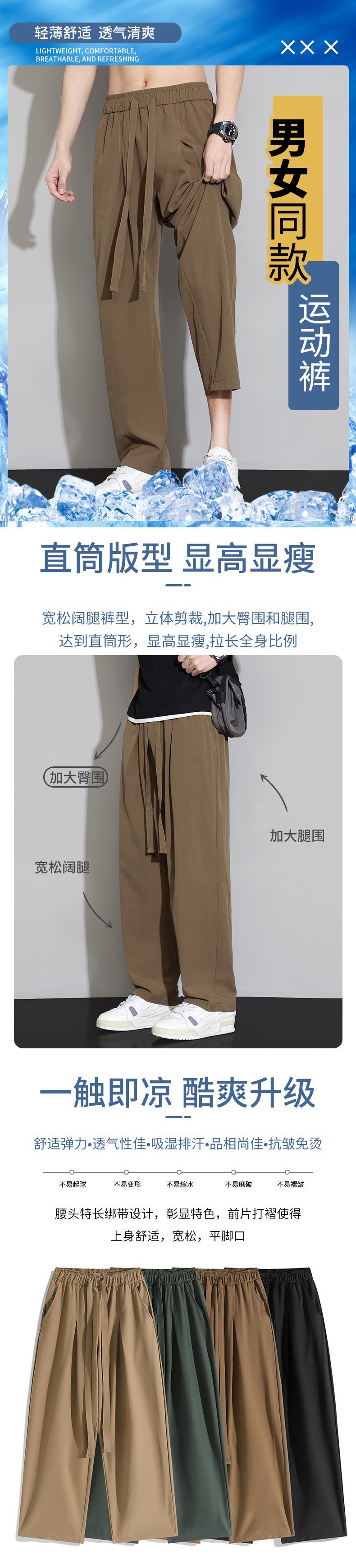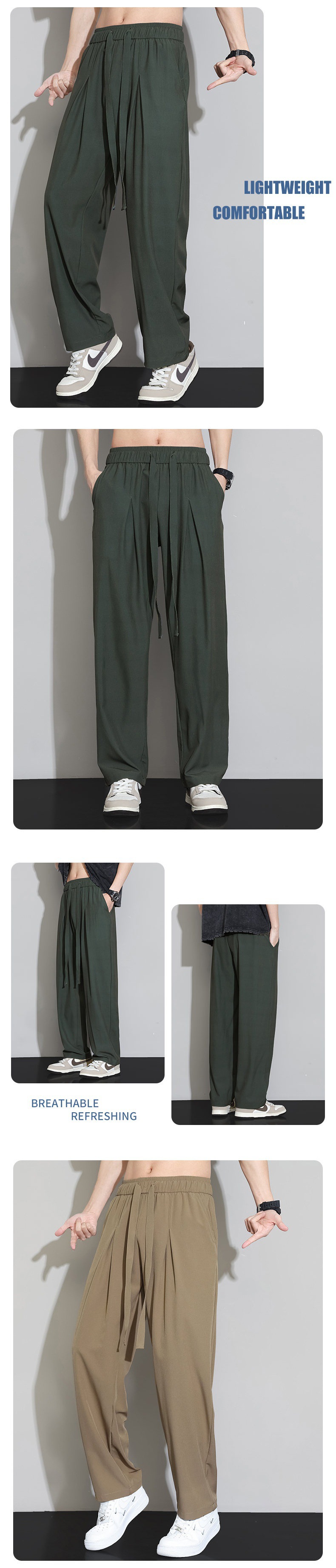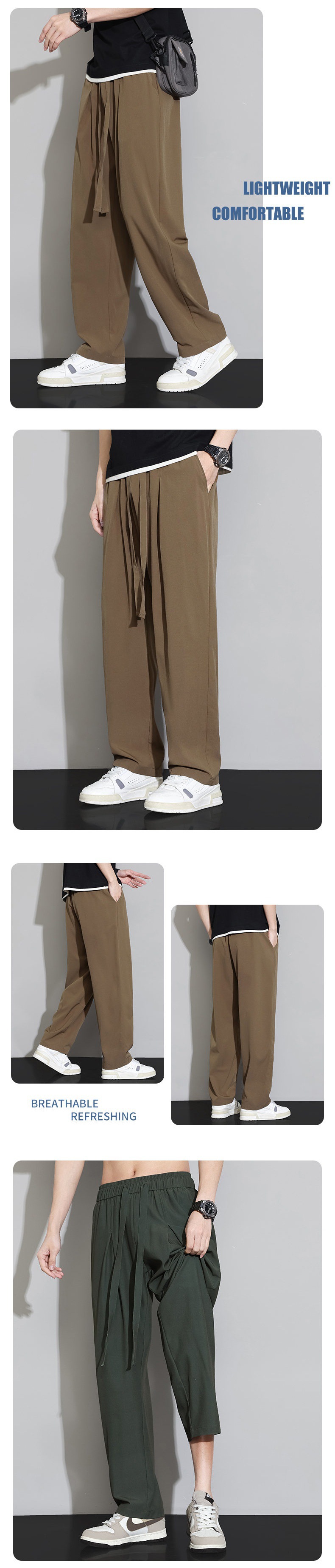 남자 캐주얼 바지 2024 새로운 여름 플러스 사이즈 아이스 실크 얇은 스트레이트 바지 남자 스포츠 탄성 에어컨 바지 바지스토어 가기