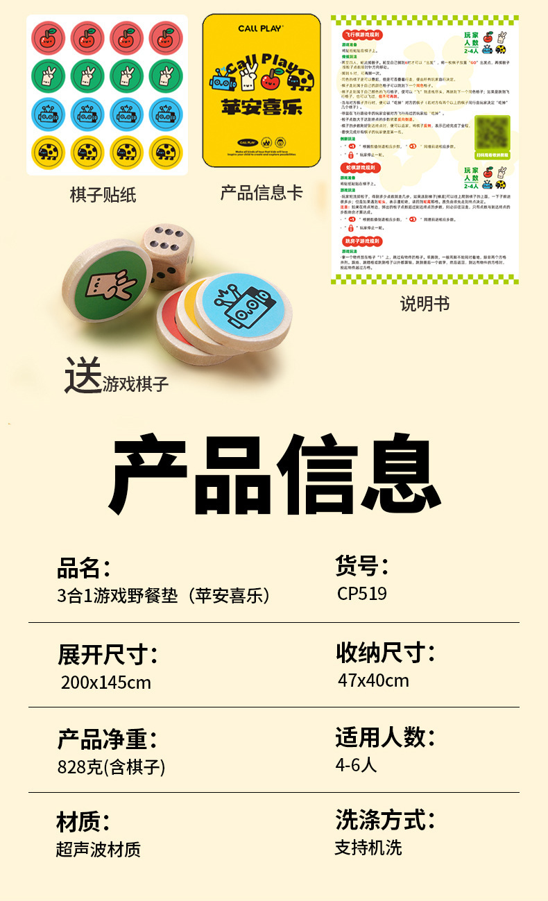 • 고덕 3-in -1 게임 피크닉 매트 (핑 안 자일)