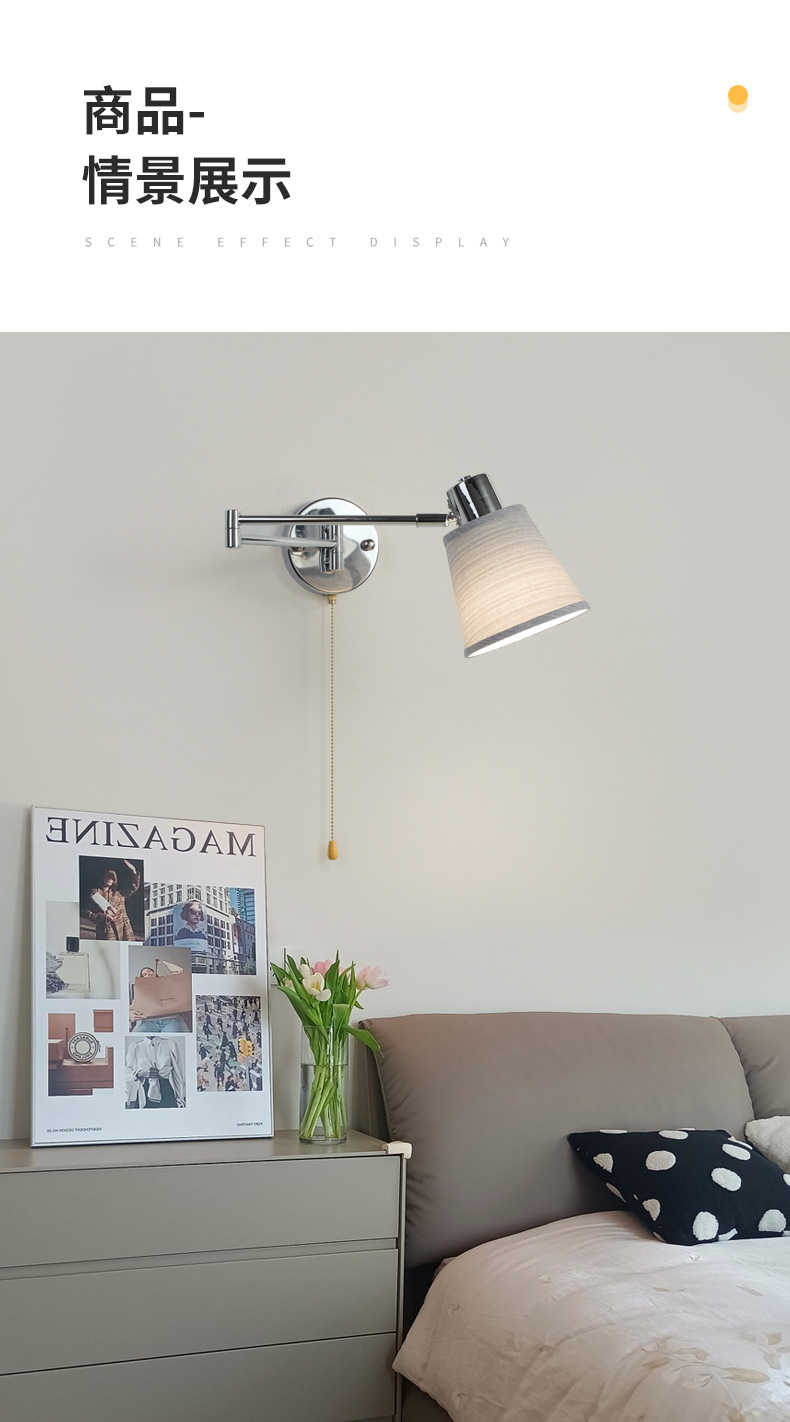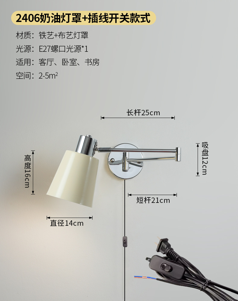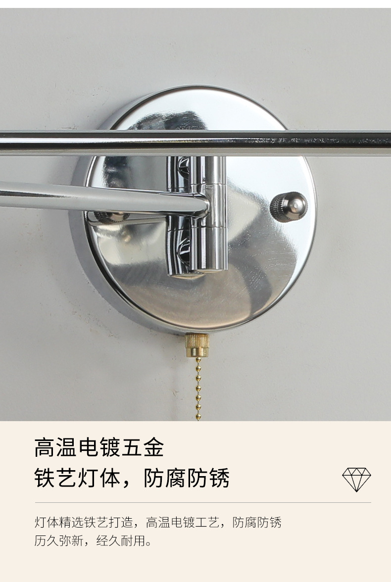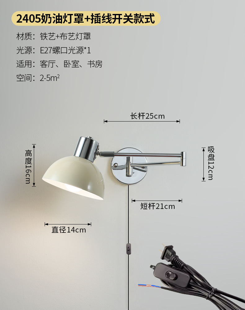 북유럽 간단한 복고풍 로커 팔 변위 가능한 침대 옆 벽 램프 중세 빈티지 연구 접이식 독서 램프스토어 가기