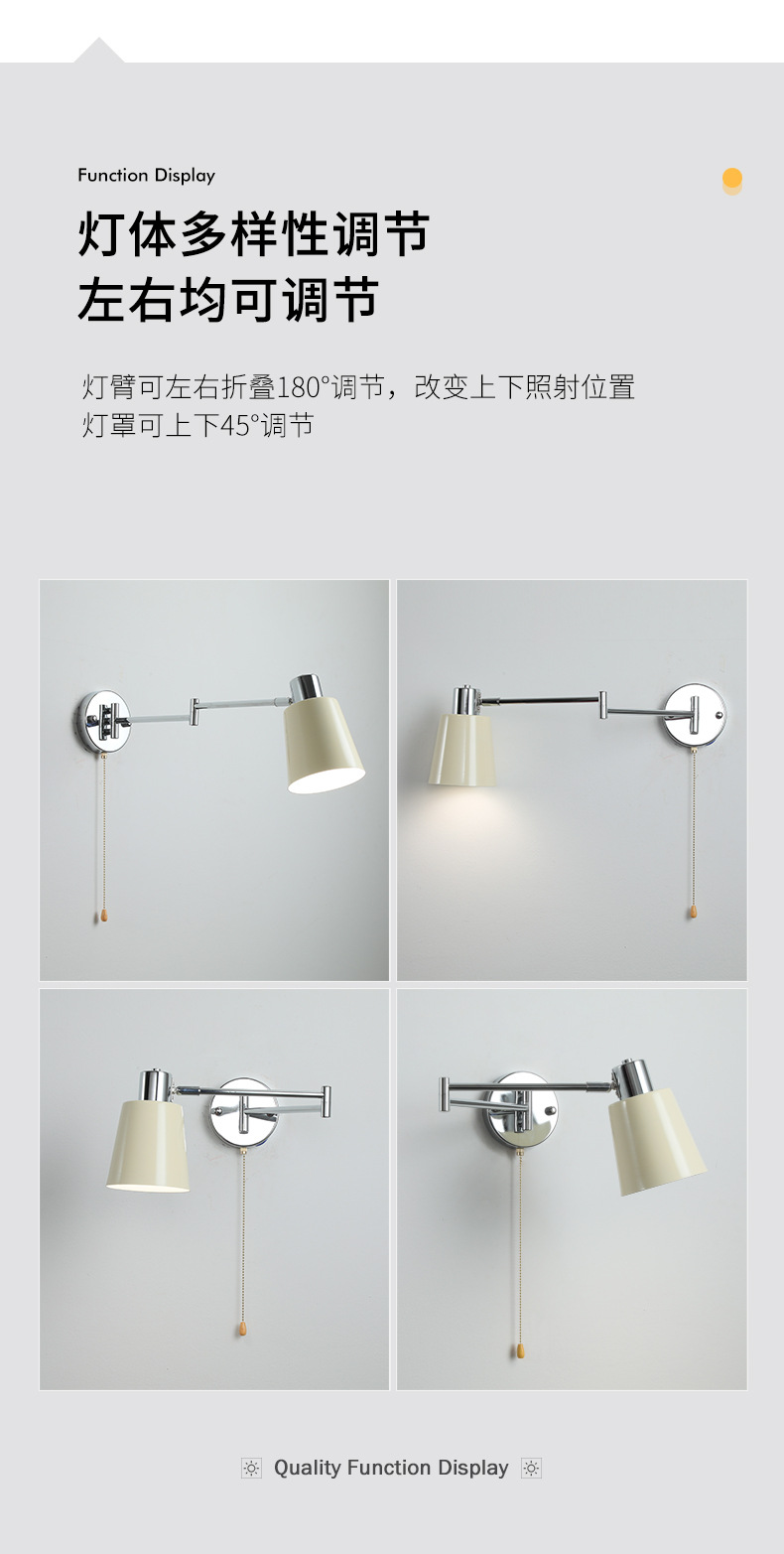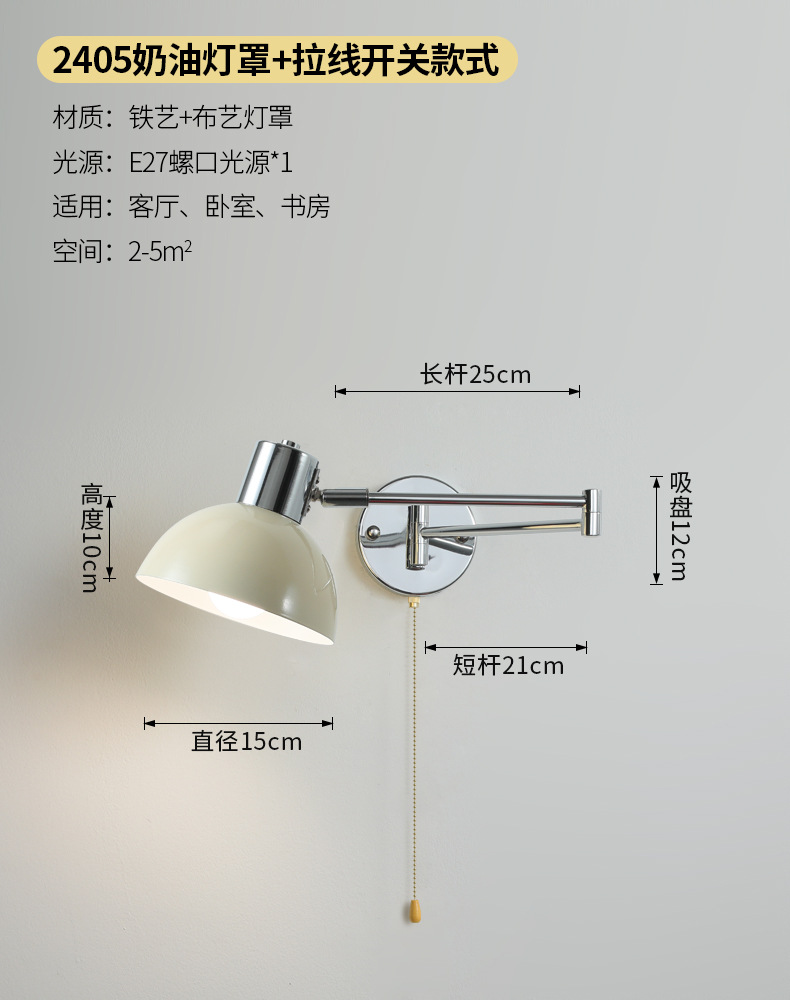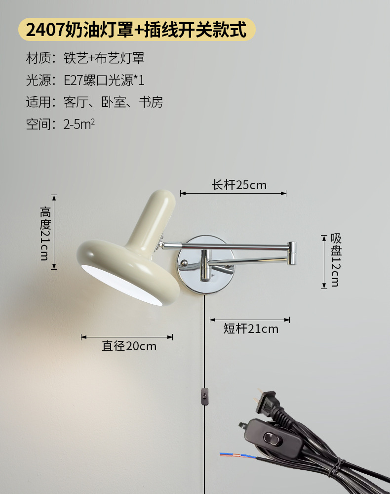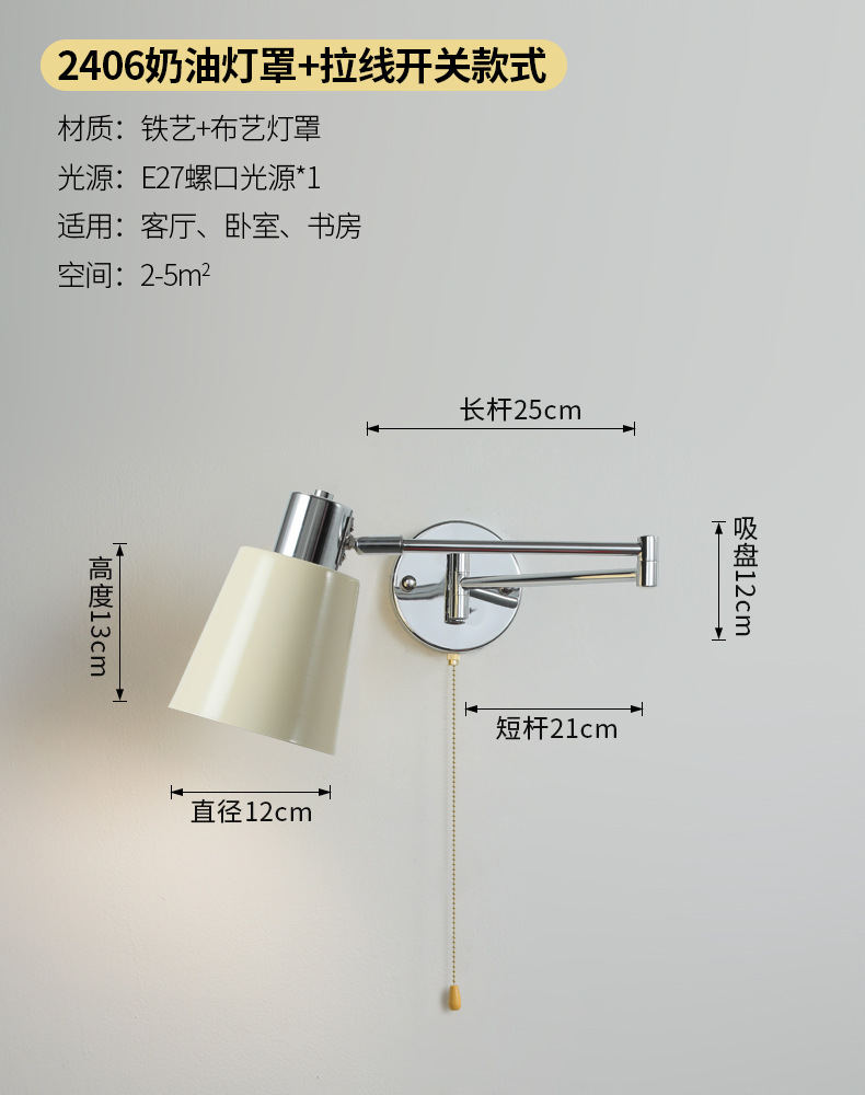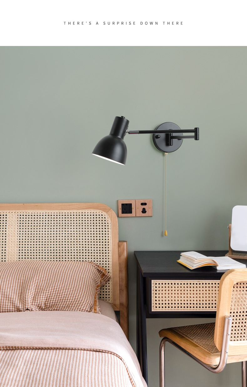 북유럽 간단한 복고풍 로커 팔 변위 가능한 침대 옆 벽 램프 중세 빈티지 연구 접이식 독서 램프스토어 가기