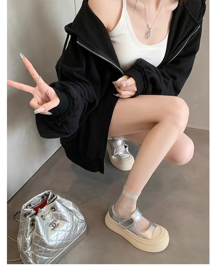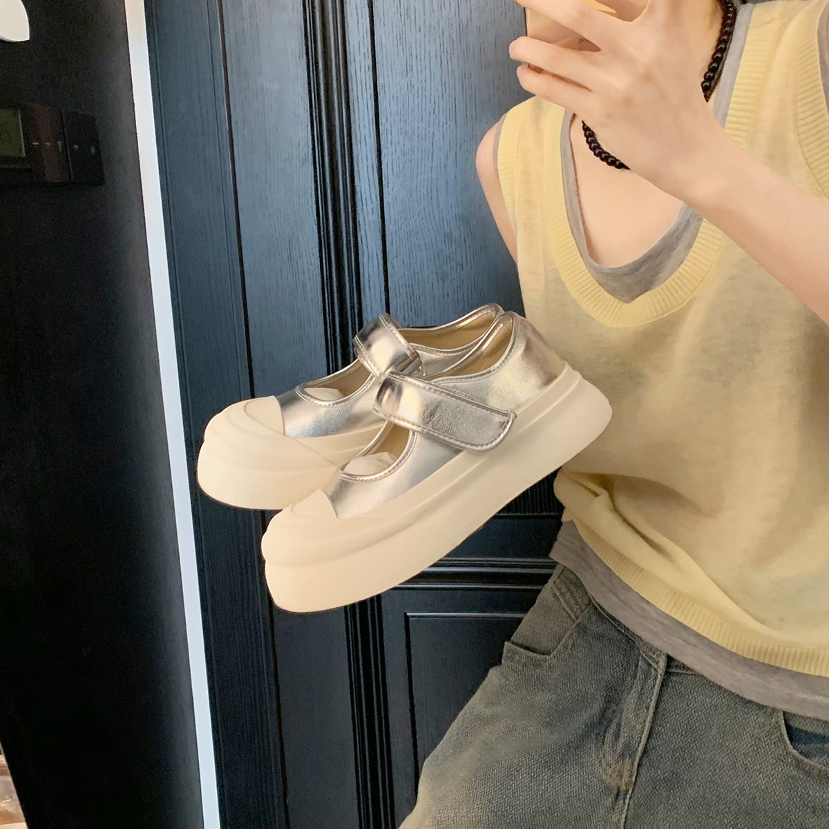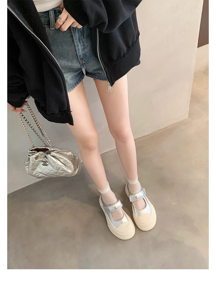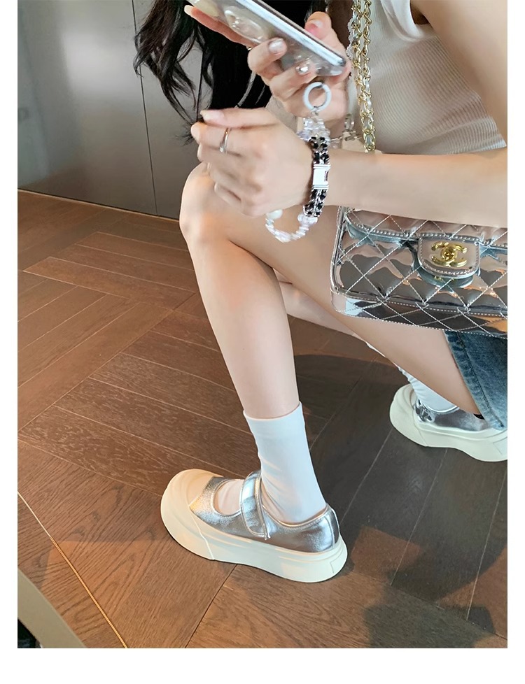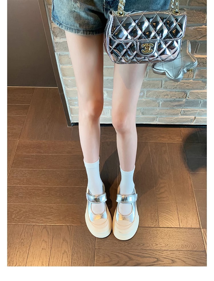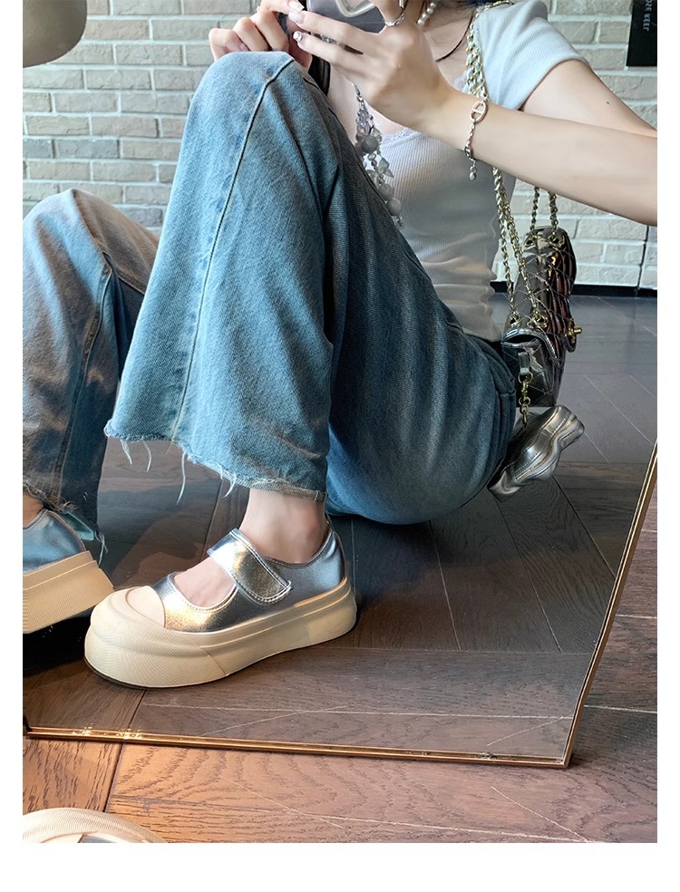 Zhao Rusi의 같은 스타일 올 매치 빅 헤드 벨크로 플랫폼 두꺼운 바닥 라운드 헤드 얕은 입 메리 제인 작은 가죽 신발 여성 신발