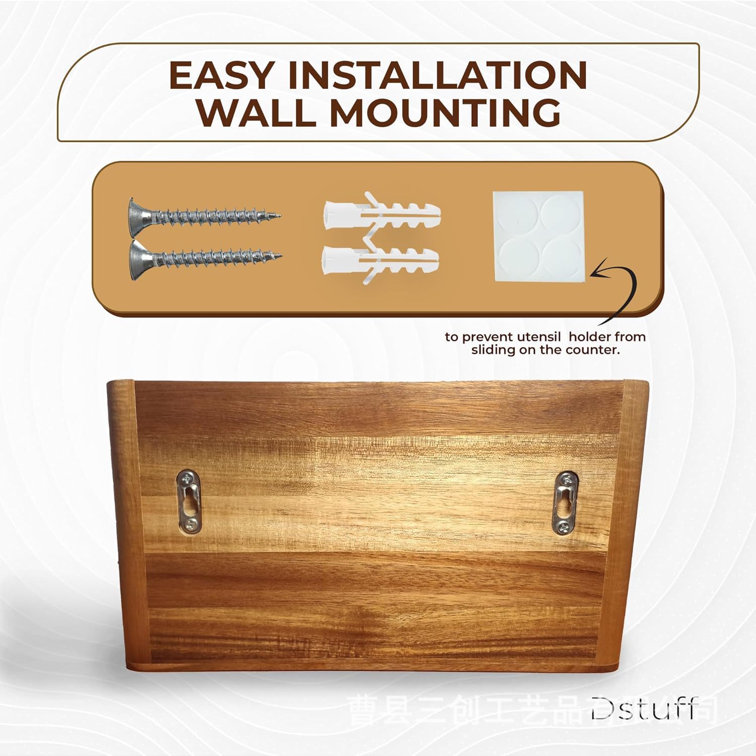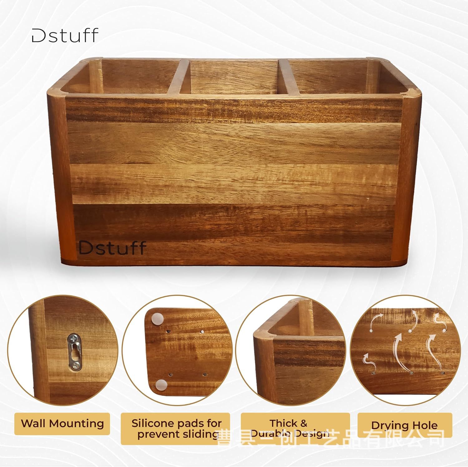 뚜껑이없는 실버 웨어 보관을위한 식기, 젓가락 및 숟가락 저장 상자 용 구획이있는 대형 목재 주방 용품 보관 랙