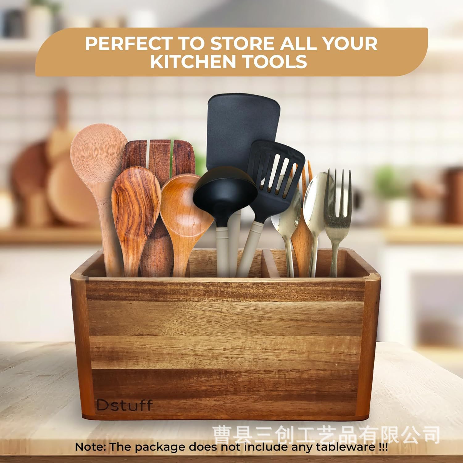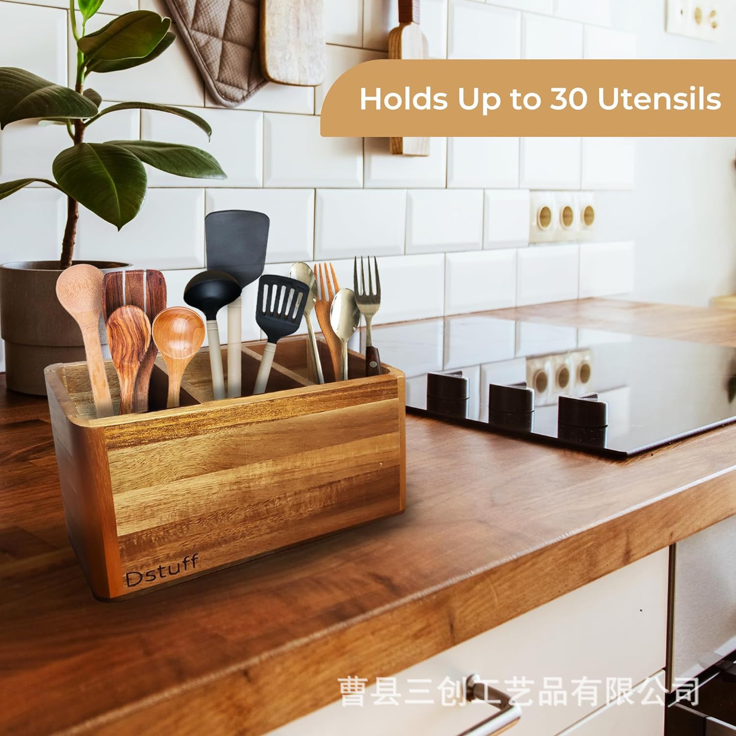 뚜껑이없는 실버 웨어 보관을위한 식기, 젓가락 및 숟가락 저장 상자 용 구획이있는 대형 목재 주방 용품 보관 랙스토어 가기