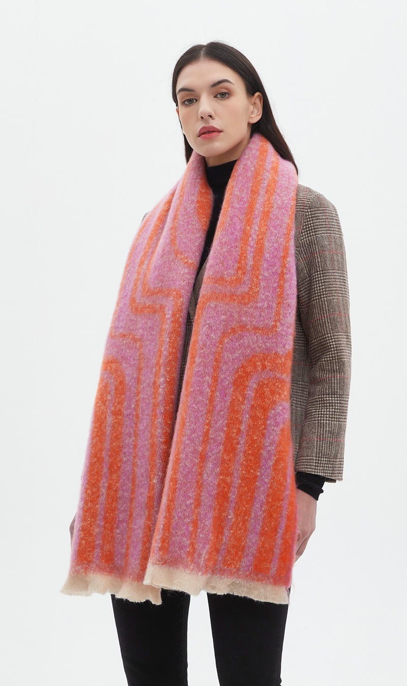 신상 스카프, 유럽 및 미국 수출용, 가을 겨울용, 원사 짜임, 짧은 털, 기하학적 자카드 스카프, 숄, 도매 제조업체