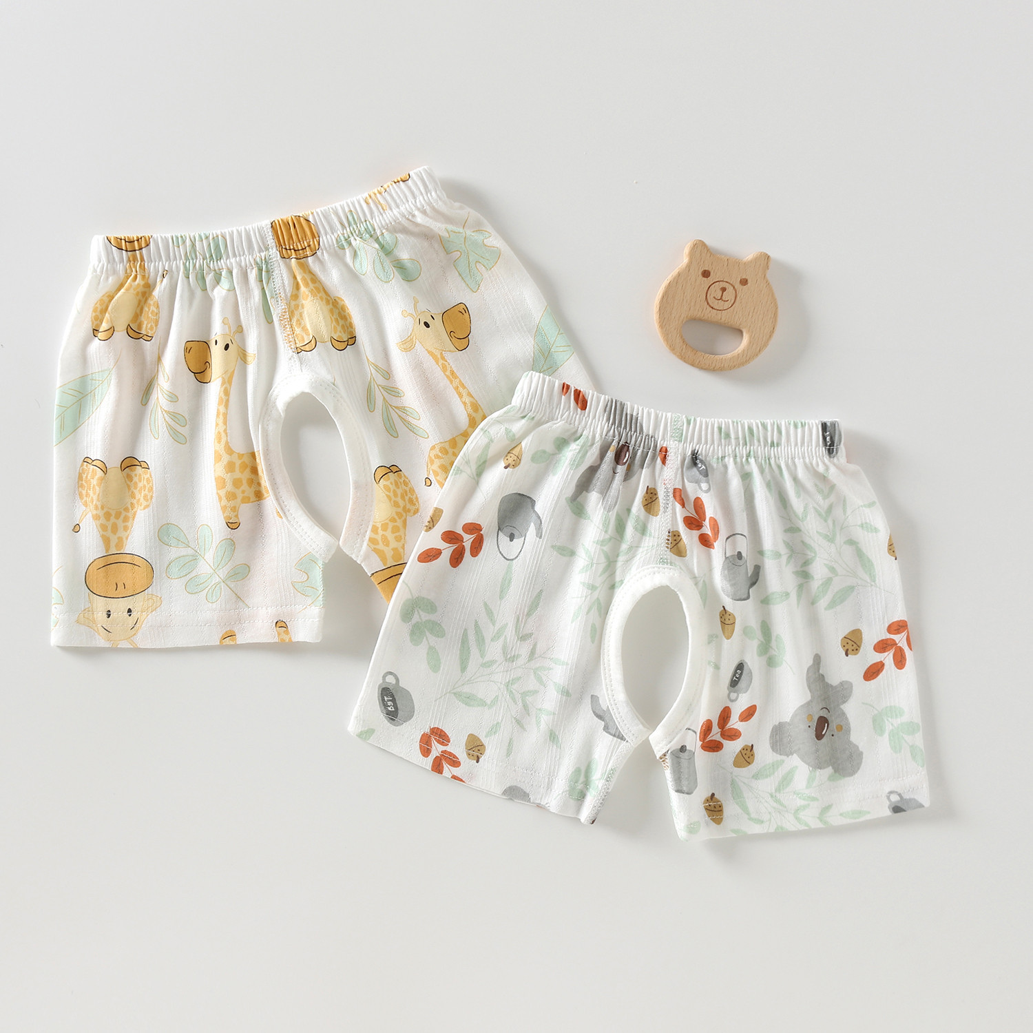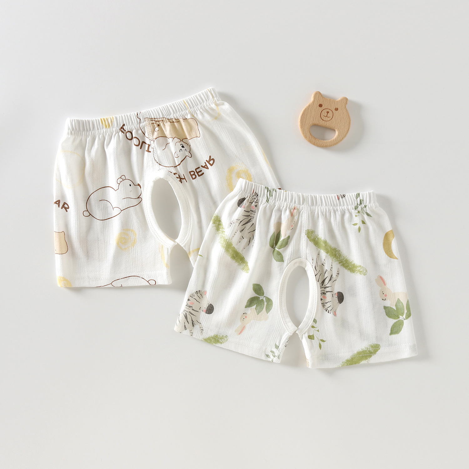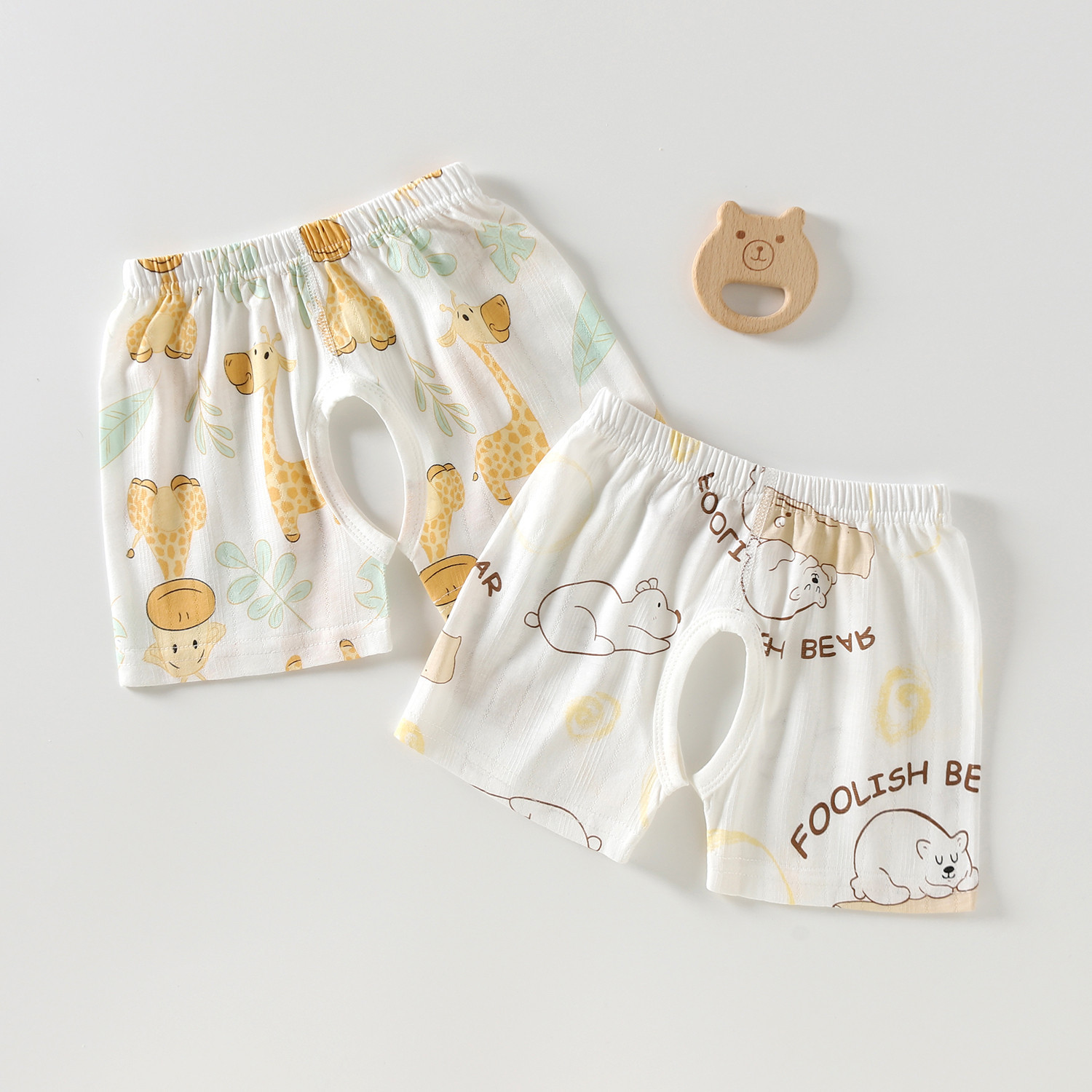 [2 팩] 남녀 어린이 여름 면화 얇은 오픈 가랑이 바지 아기 반바지 여름 아기 뼈없는 바지스토어 가기