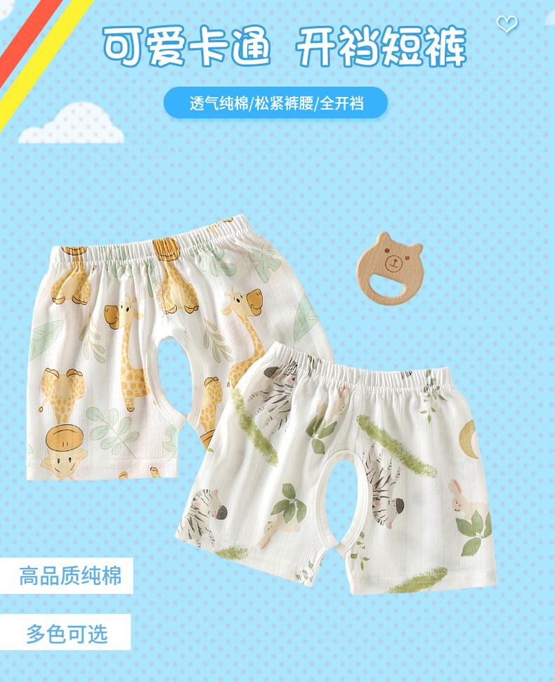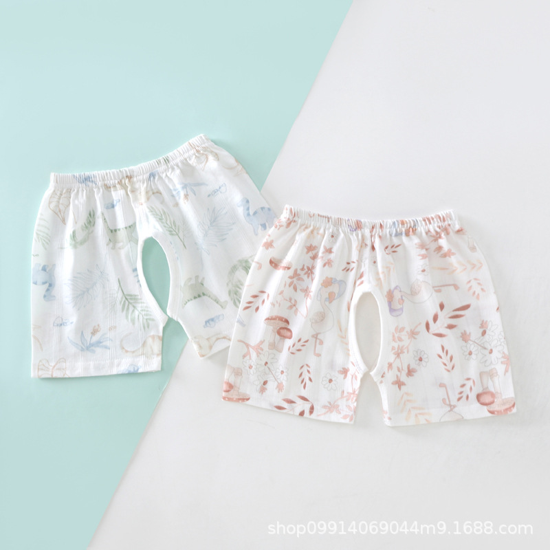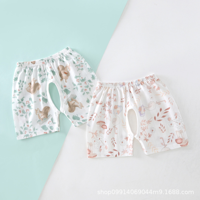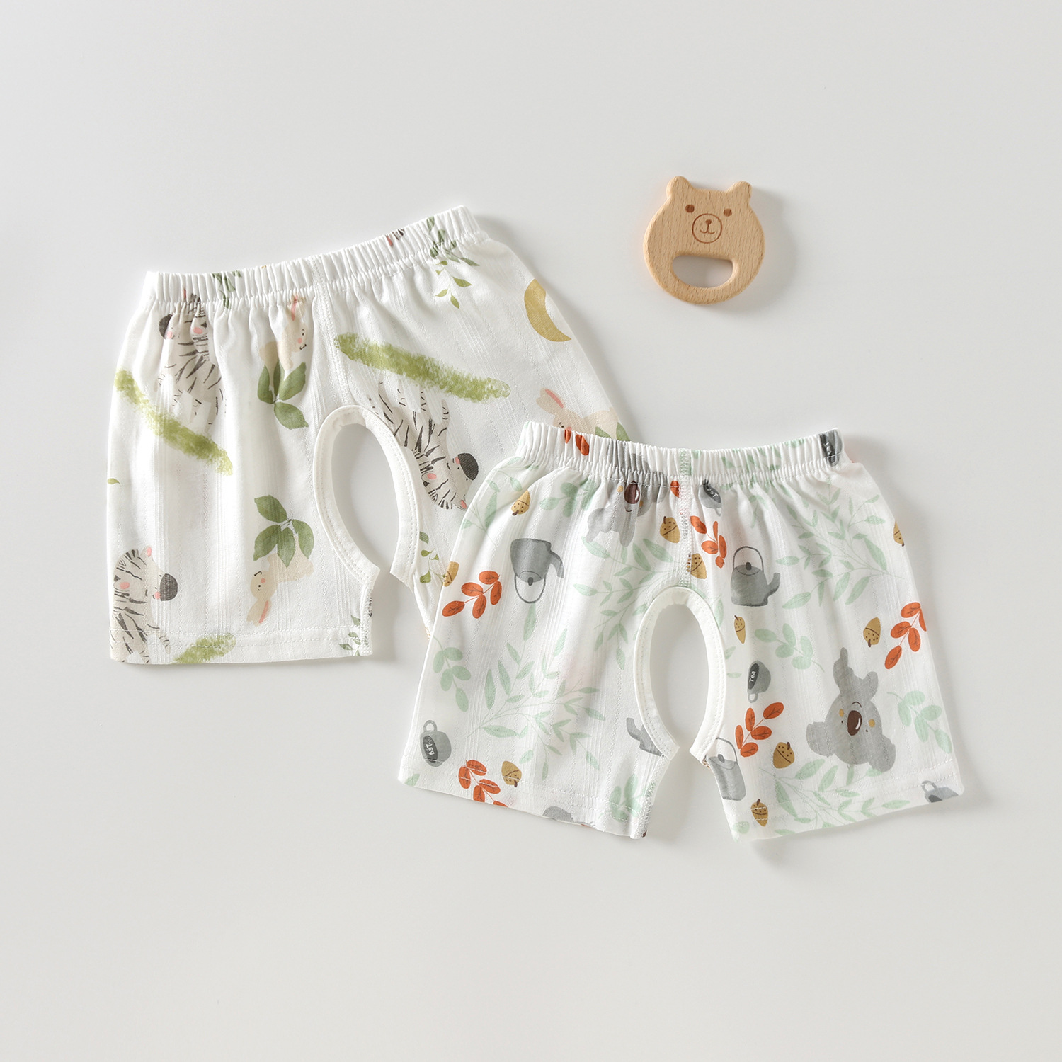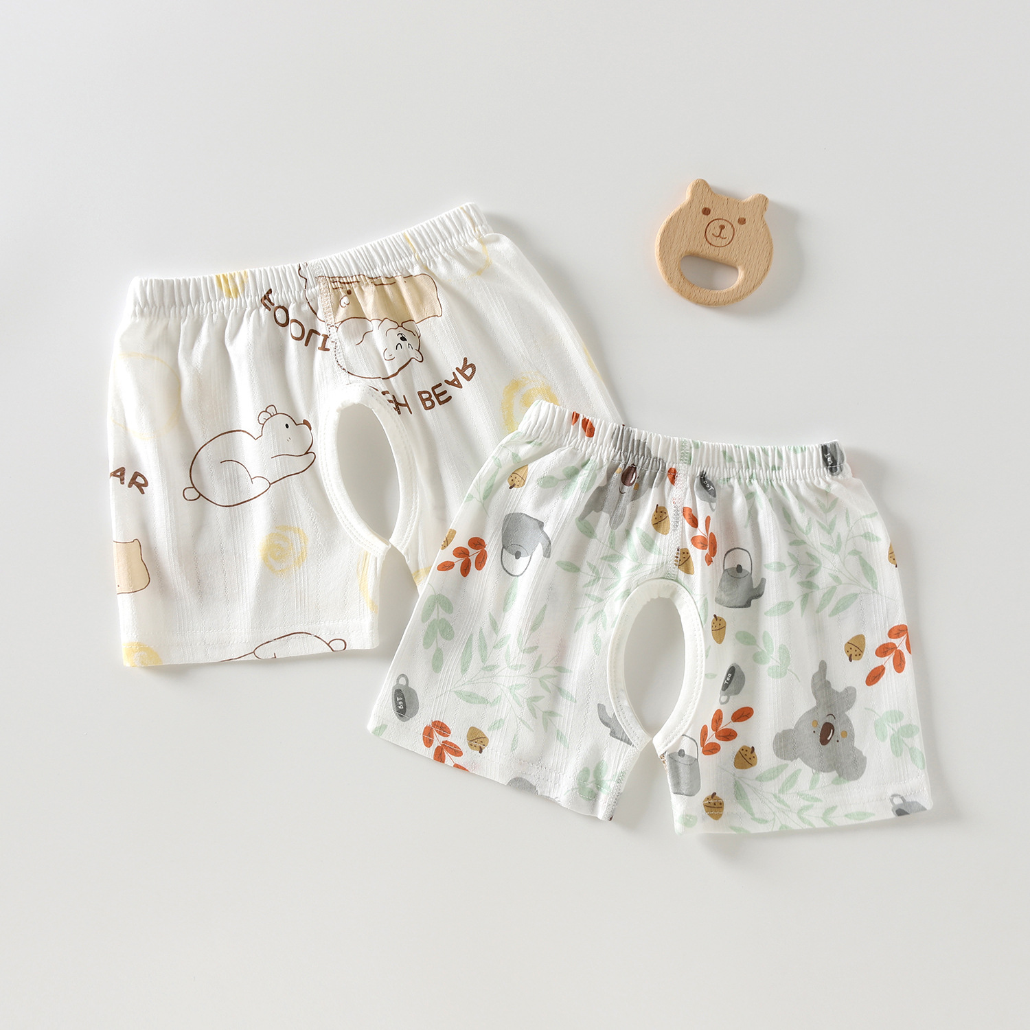 [2 팩] 남녀 어린이 여름 면화 얇은 오픈 가랑이 바지 아기 반바지 여름 아기 뼈없는 바지스토어 가기