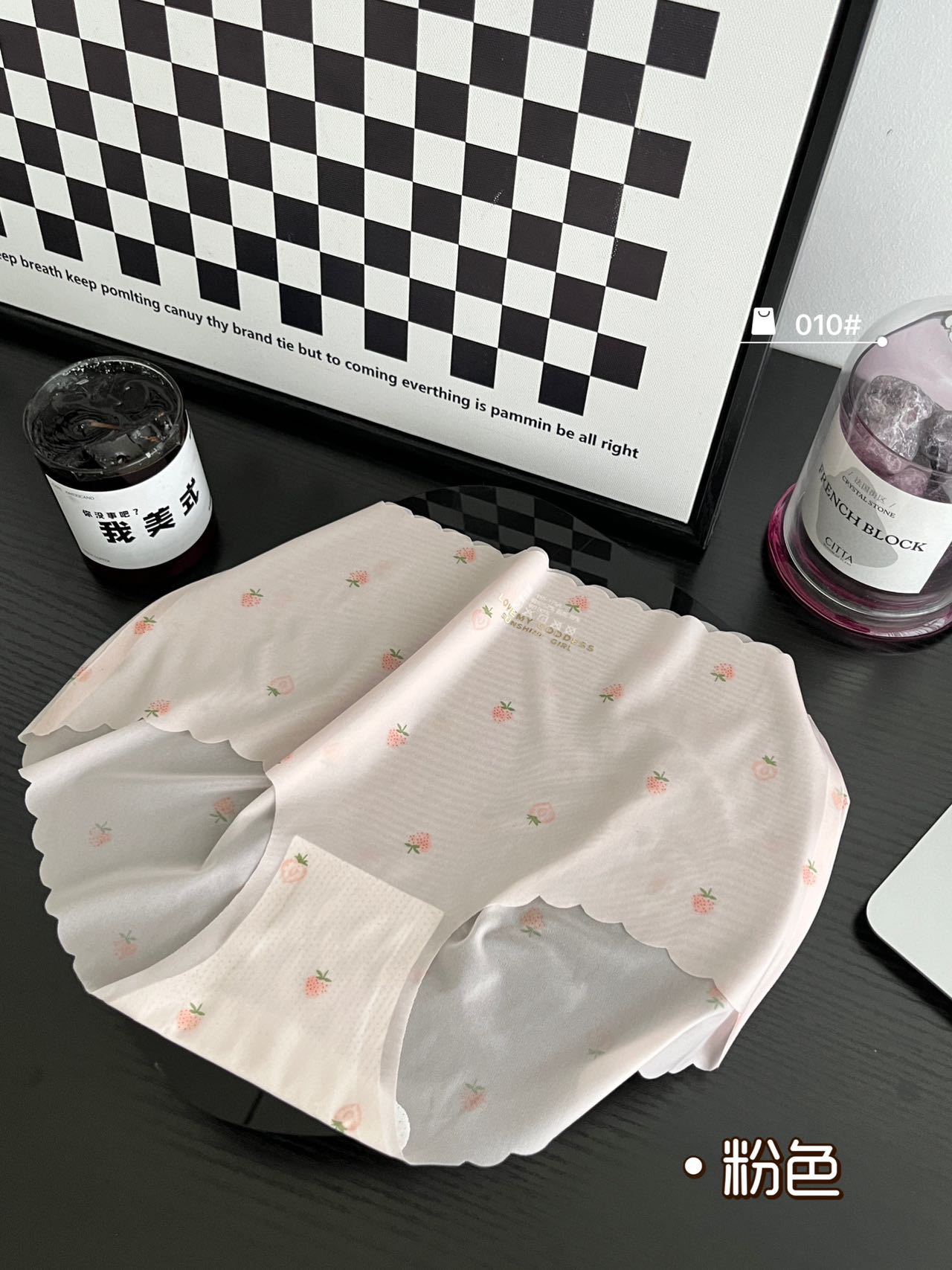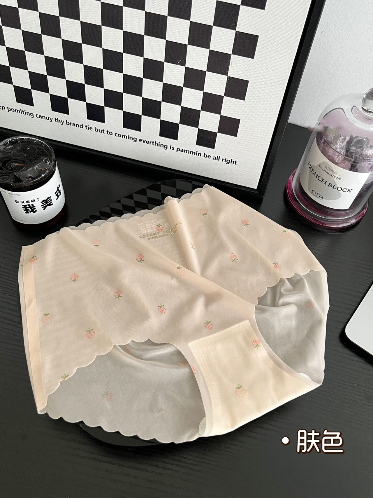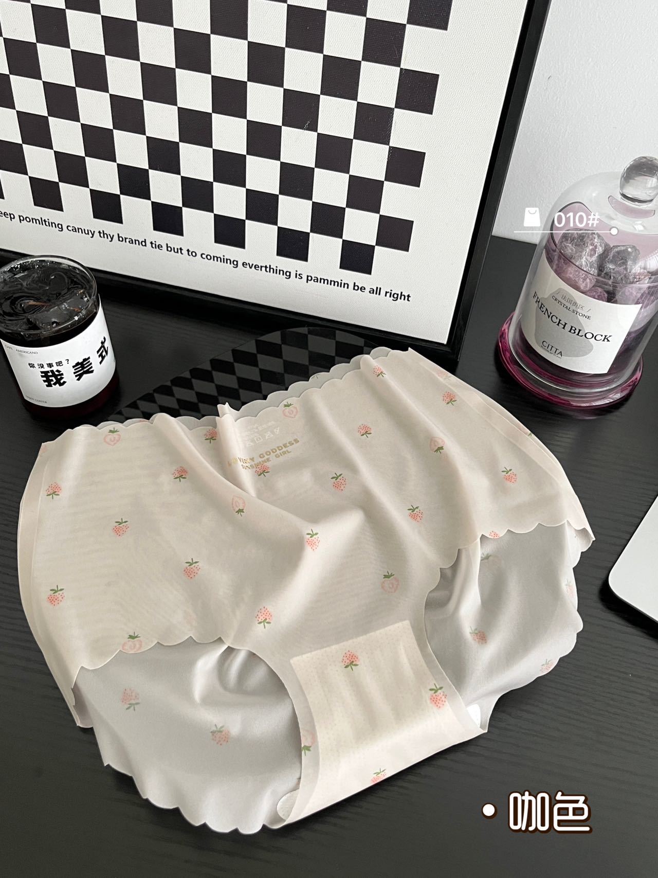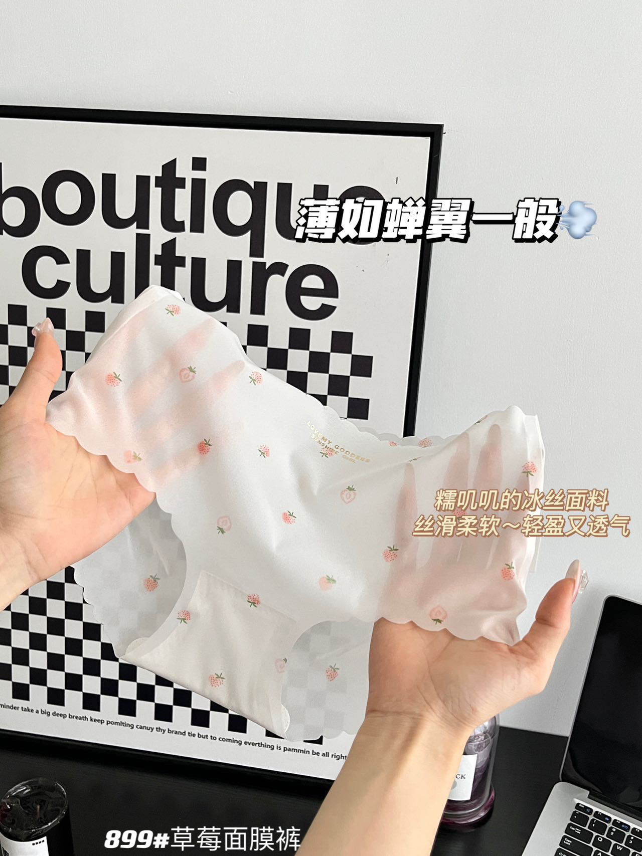 딸기 프린트 일본 스타일 소녀 무봉제 아이스 실크 팬티 초박형 여름용 빠른 건조 항균 중간 높이 허리 여성용 힙업