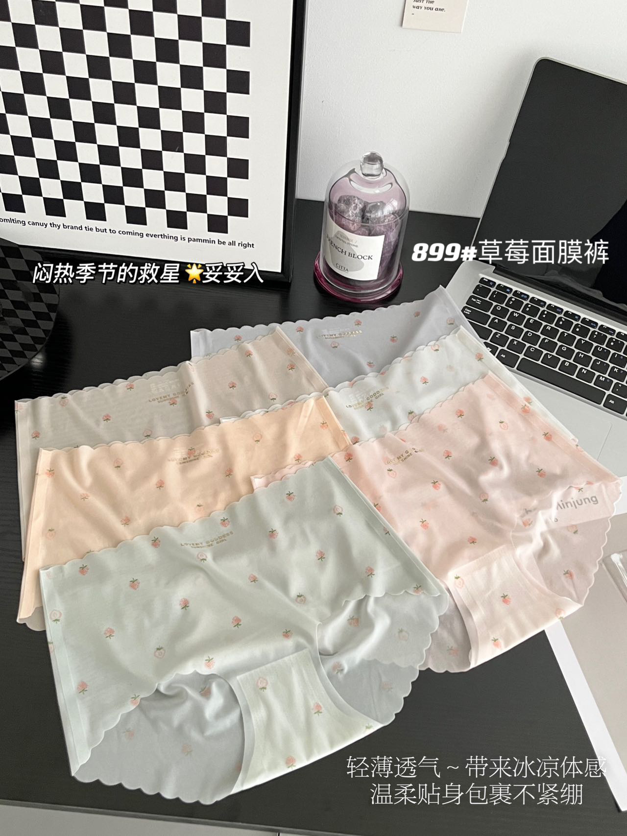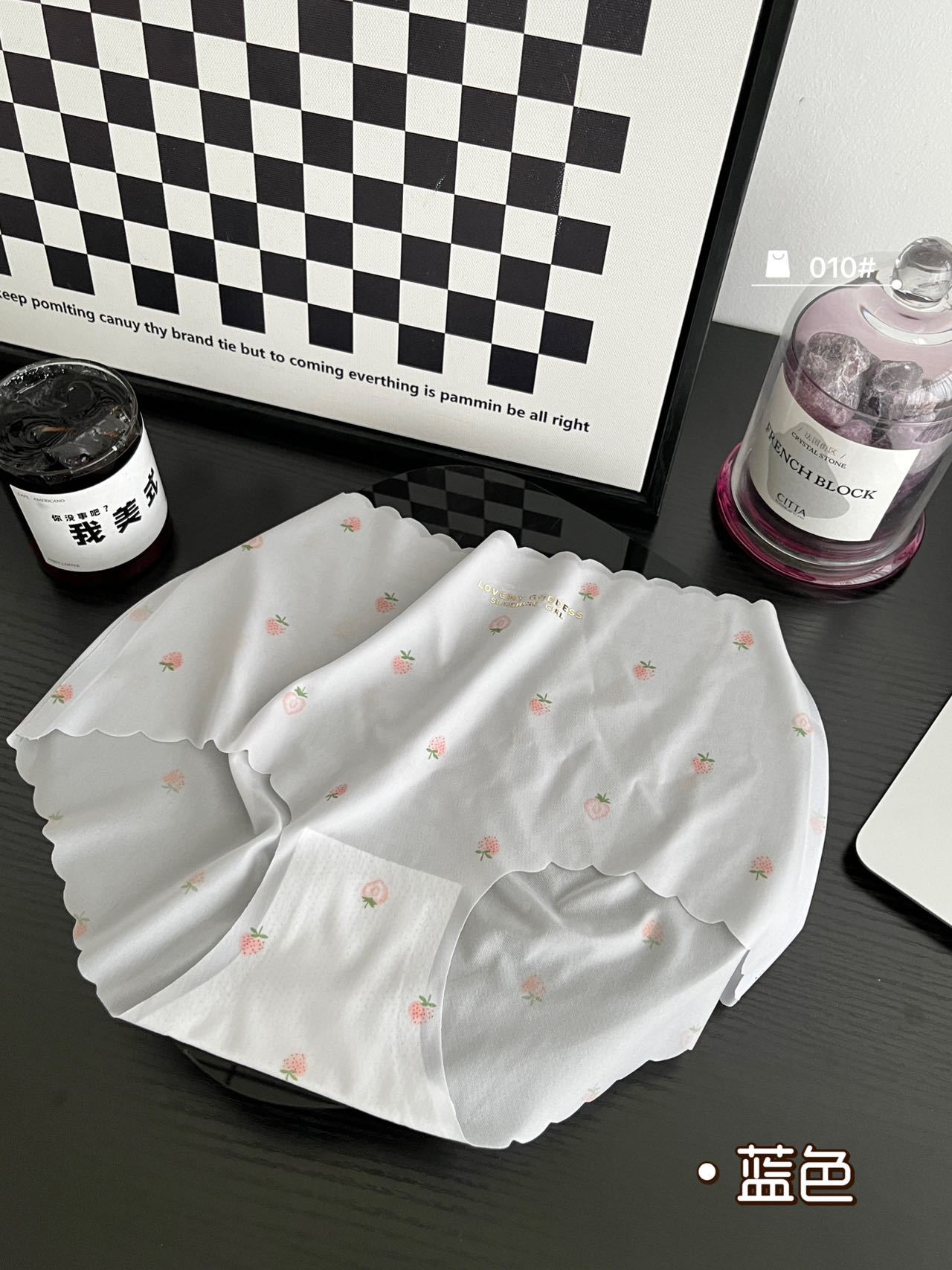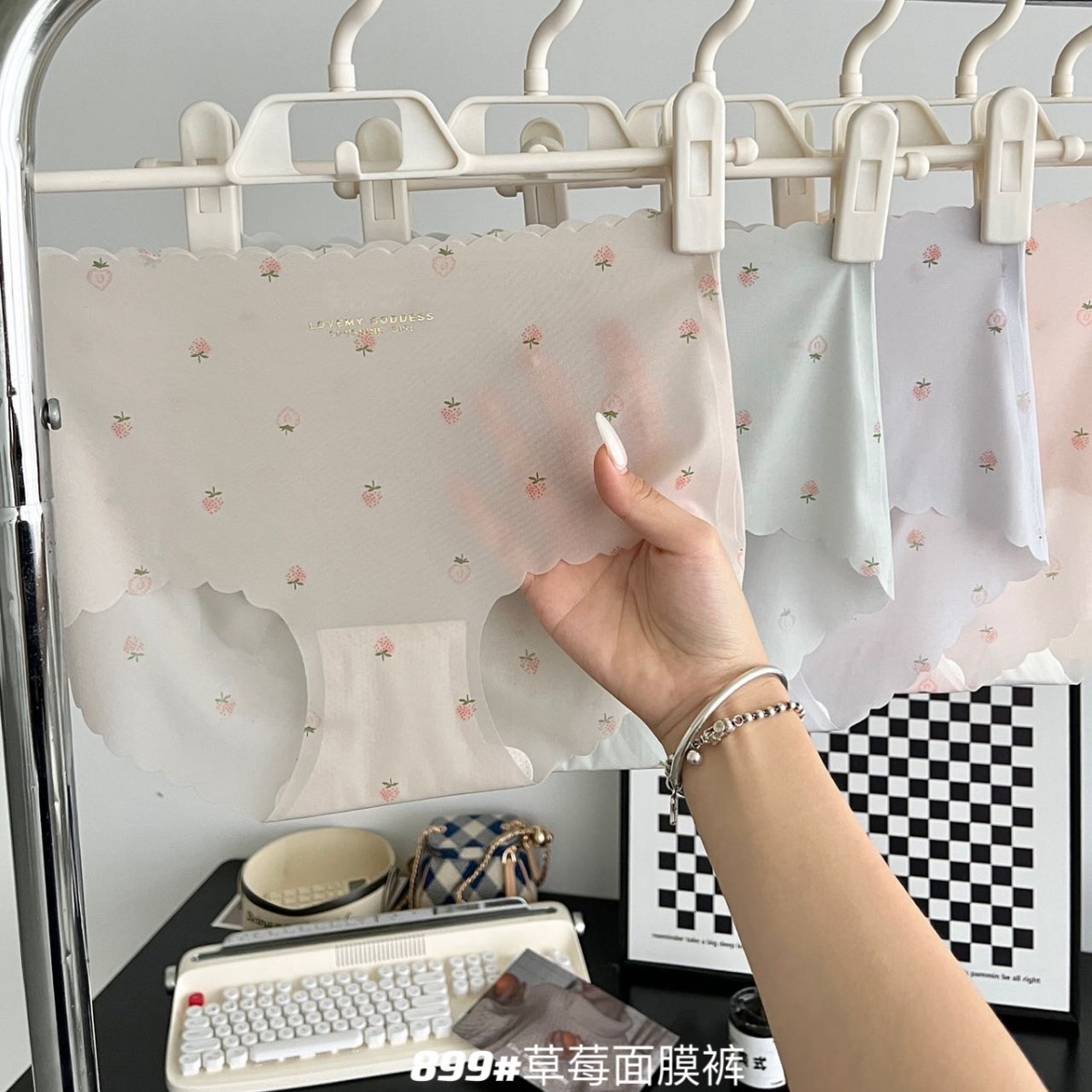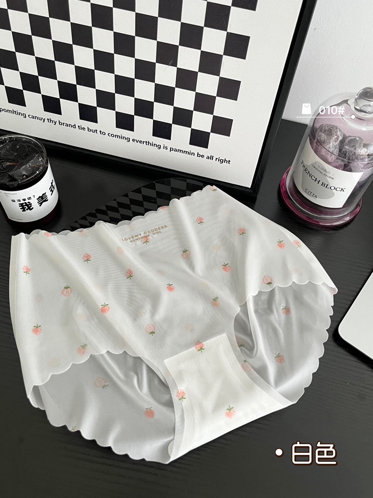 딸기 프린트 일본 스타일 소녀 무봉제 아이스 실크 팬티 초박형 여름용 빠른 건조 항균 중간 높이 허리 여성용 힙업