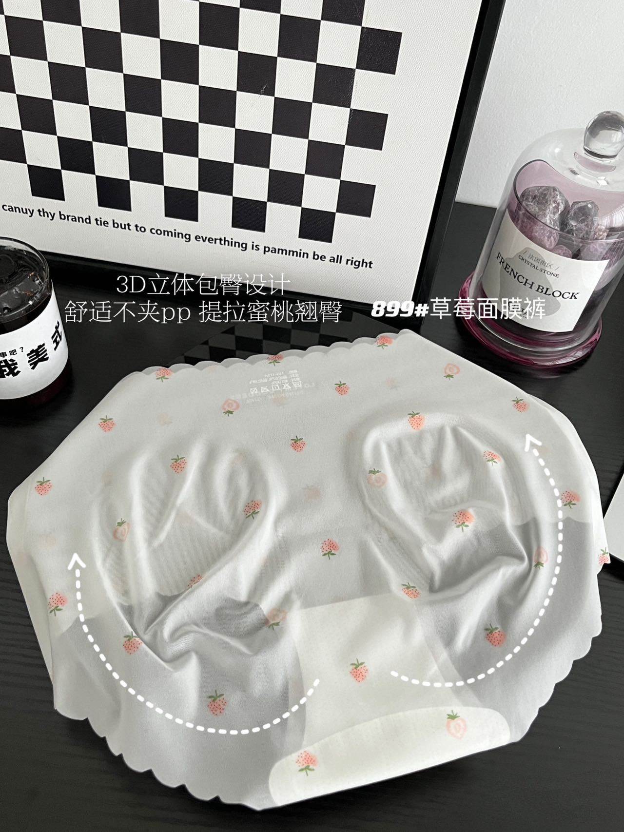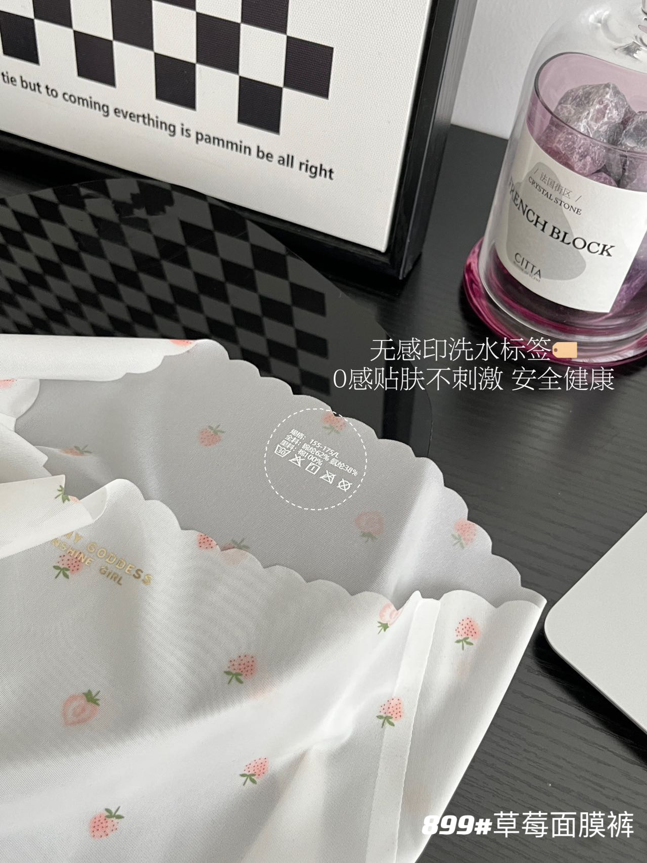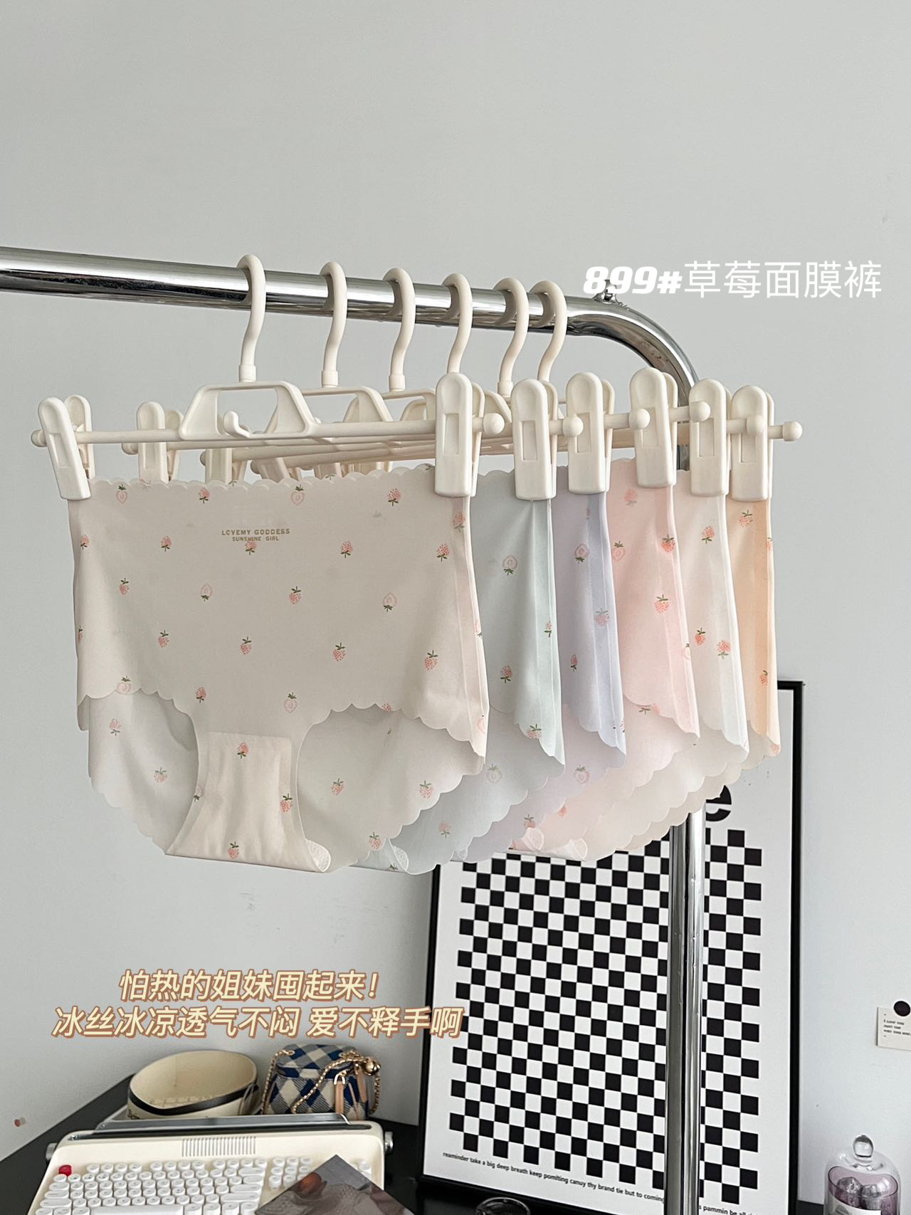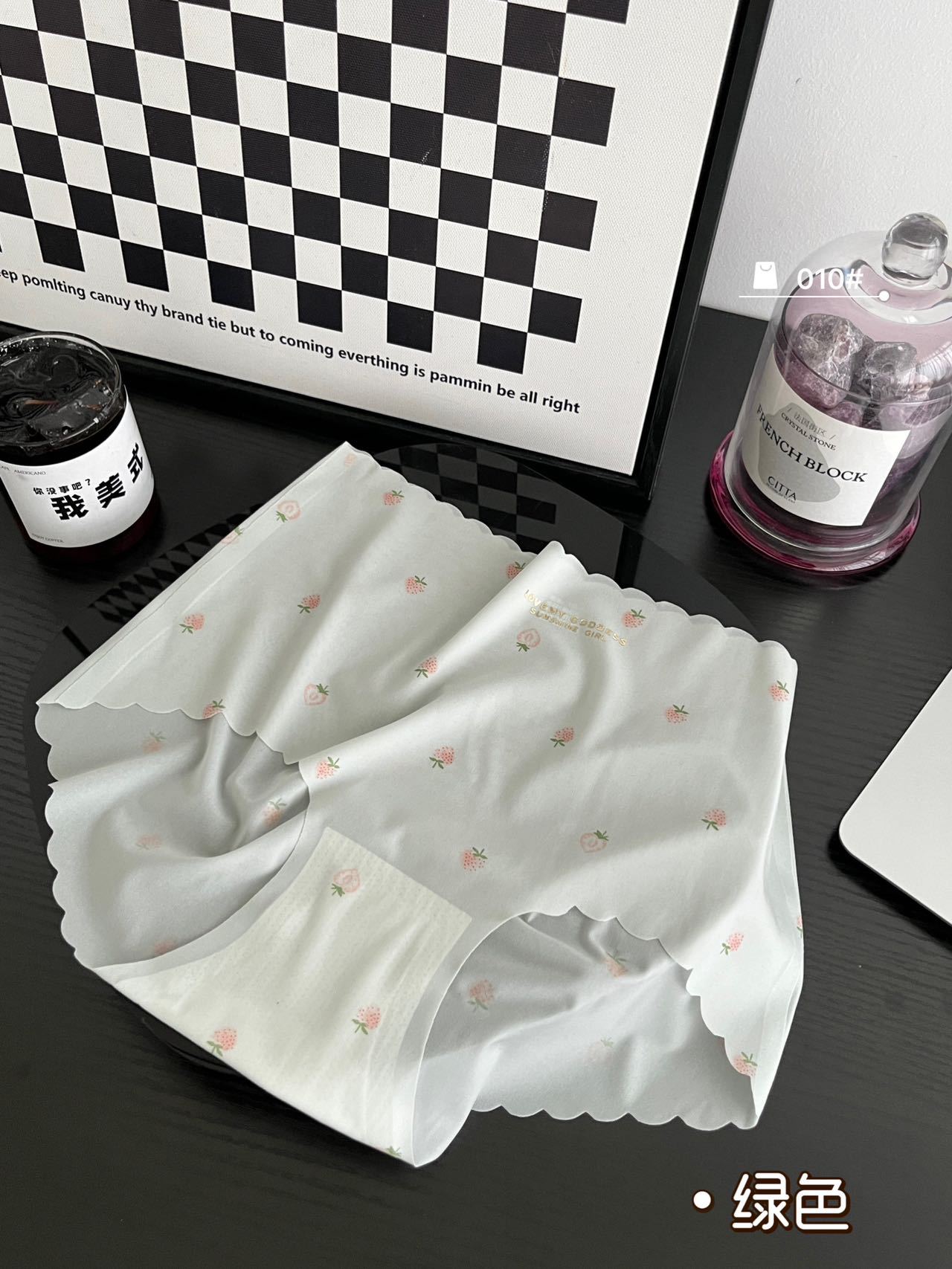 딸기 프린트 일본 스타일 소녀 무봉제 아이스 실크 팬티 초박형 여름용 빠른 건조 항균 중간 높이 허리 여성용 힙업