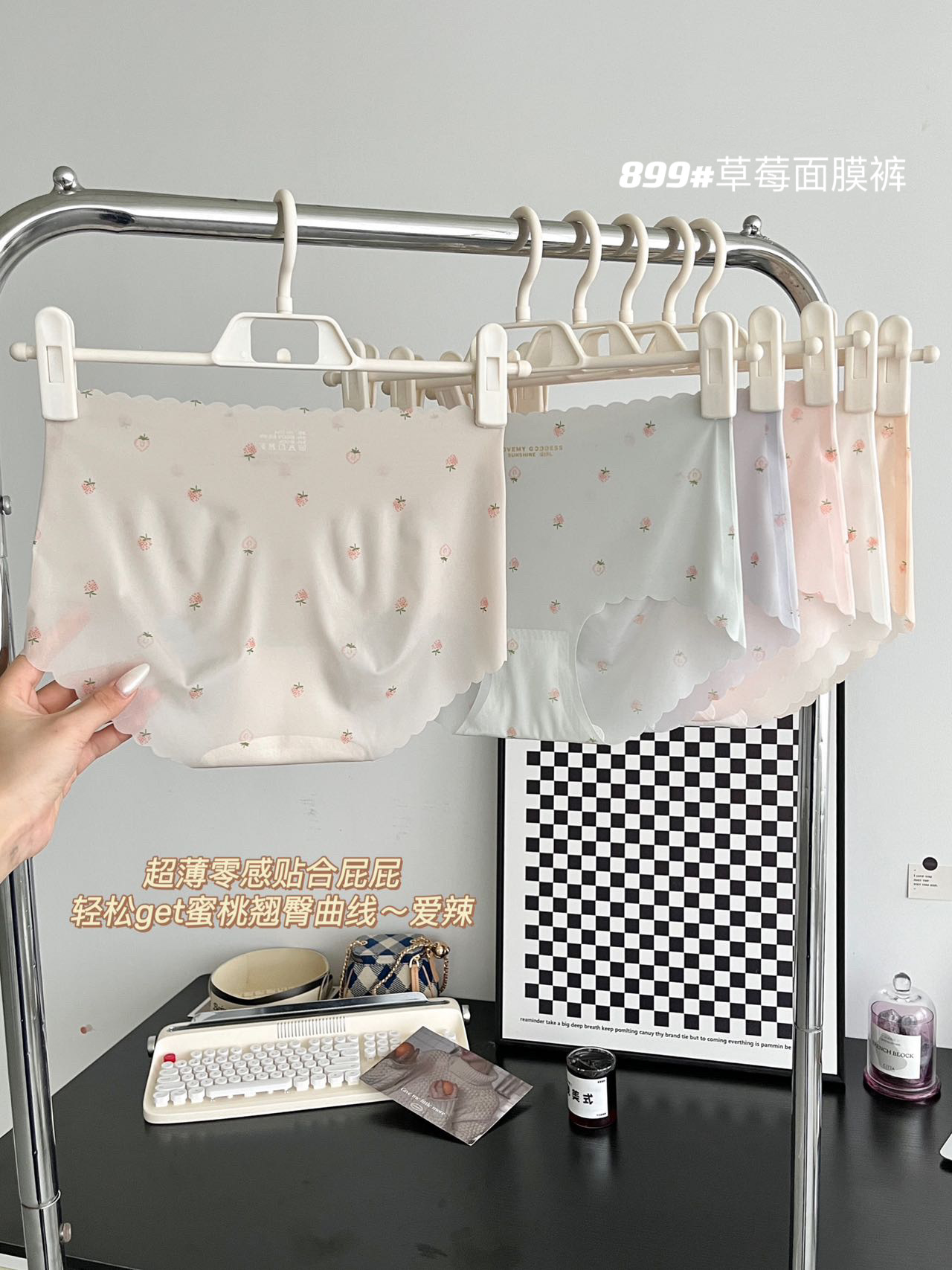 딸기 프린트 일본 스타일 소녀 무봉제 아이스 실크 팬티 초박형 여름용 빠른 건조 항균 중간 높이 허리 여성용 힙업스토어 가기