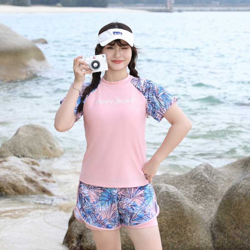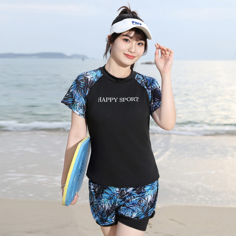 여름 스포츠 수영복 여성의 보수적 인 투피스 세트 슬림 바디 슬리밍 빅 가슴 통통녀 대형 심플 패셔너블 수영복