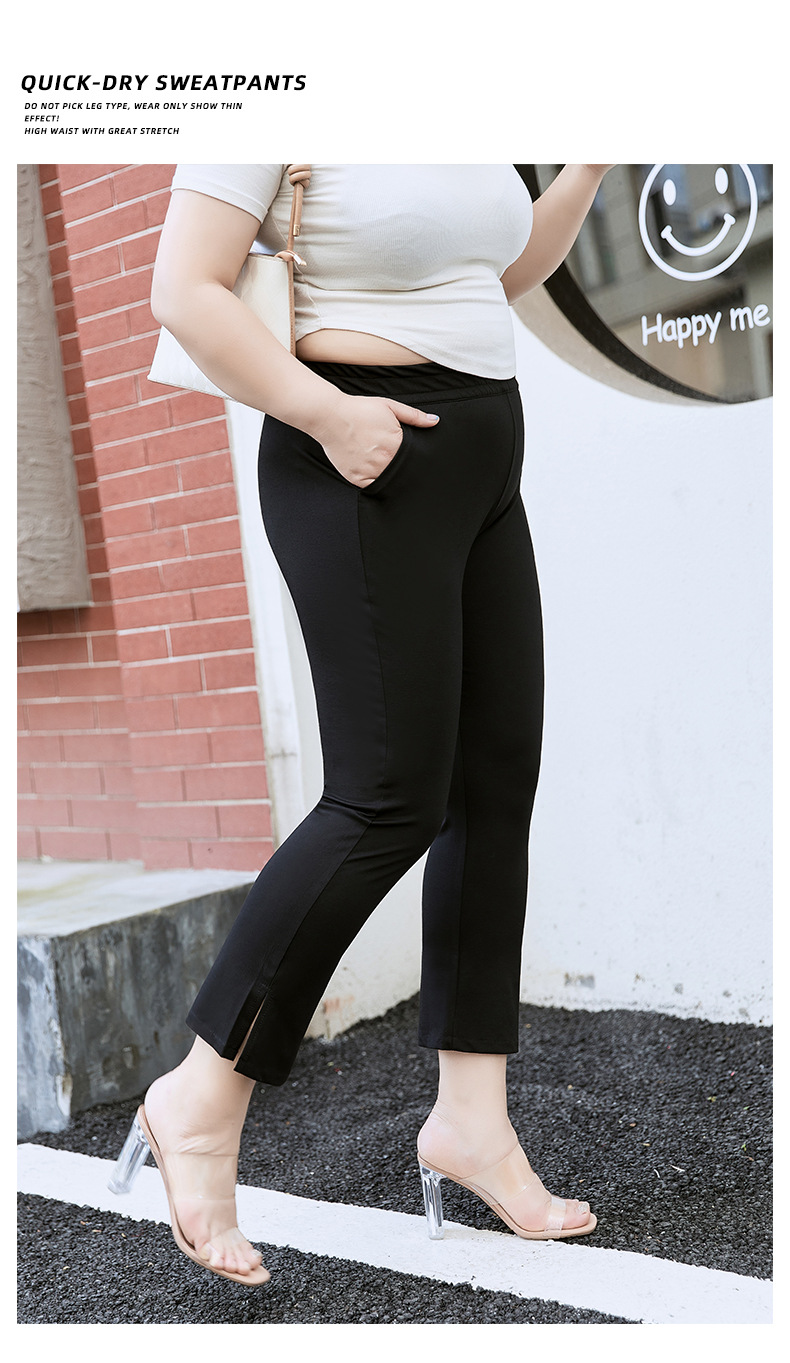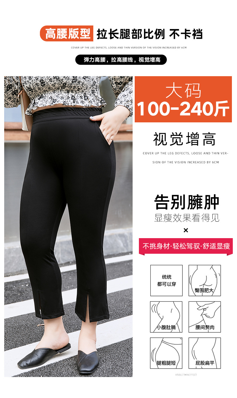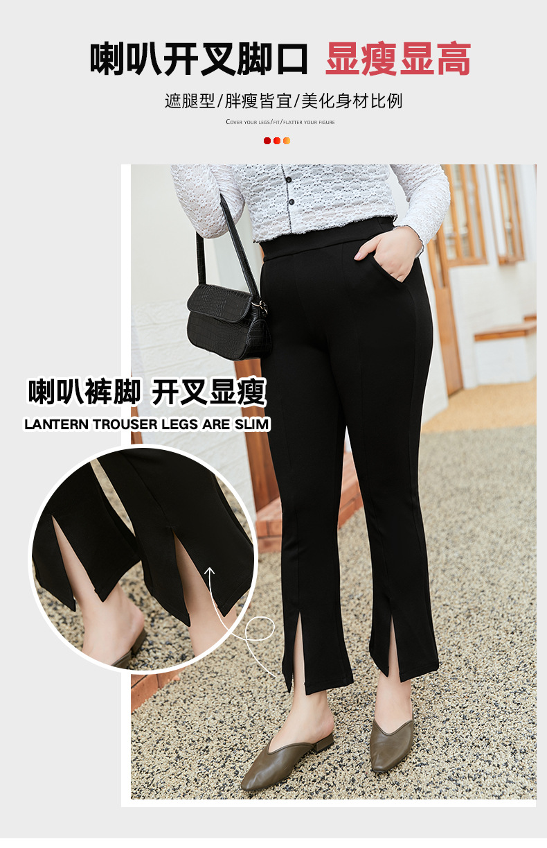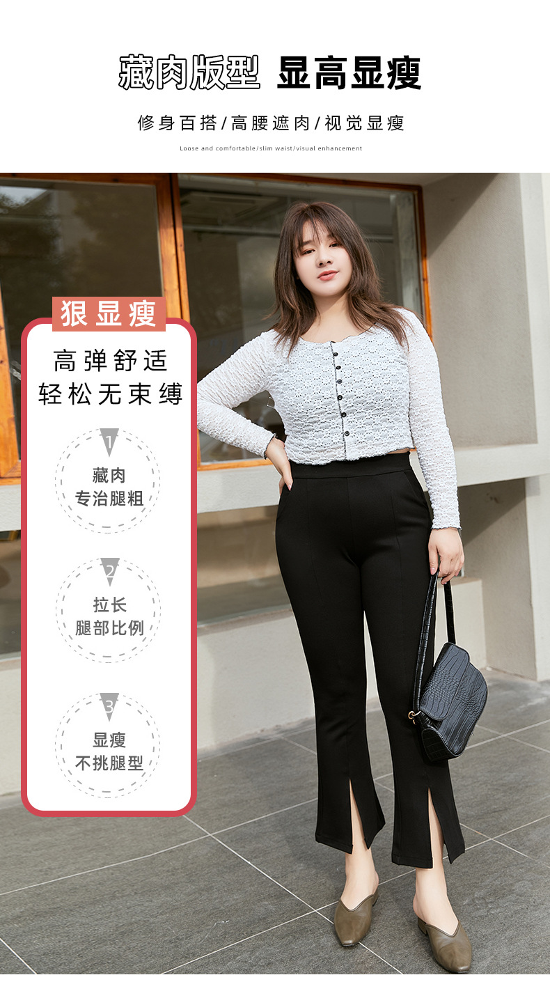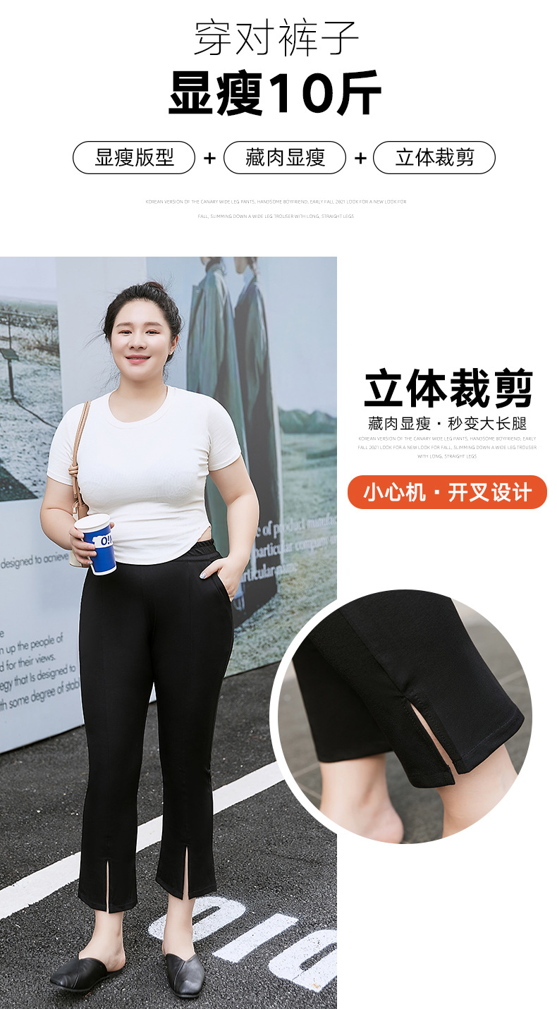 9 점 마이크로 혼 스플릿 팬츠 여성용 플러스 사이즈 200kg 뚱뚱한 자매 하이 웨이스트 커버 고기 슬림 조커 캐주얼 8 점 바지스토어 가기
