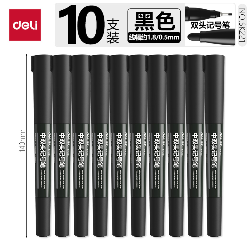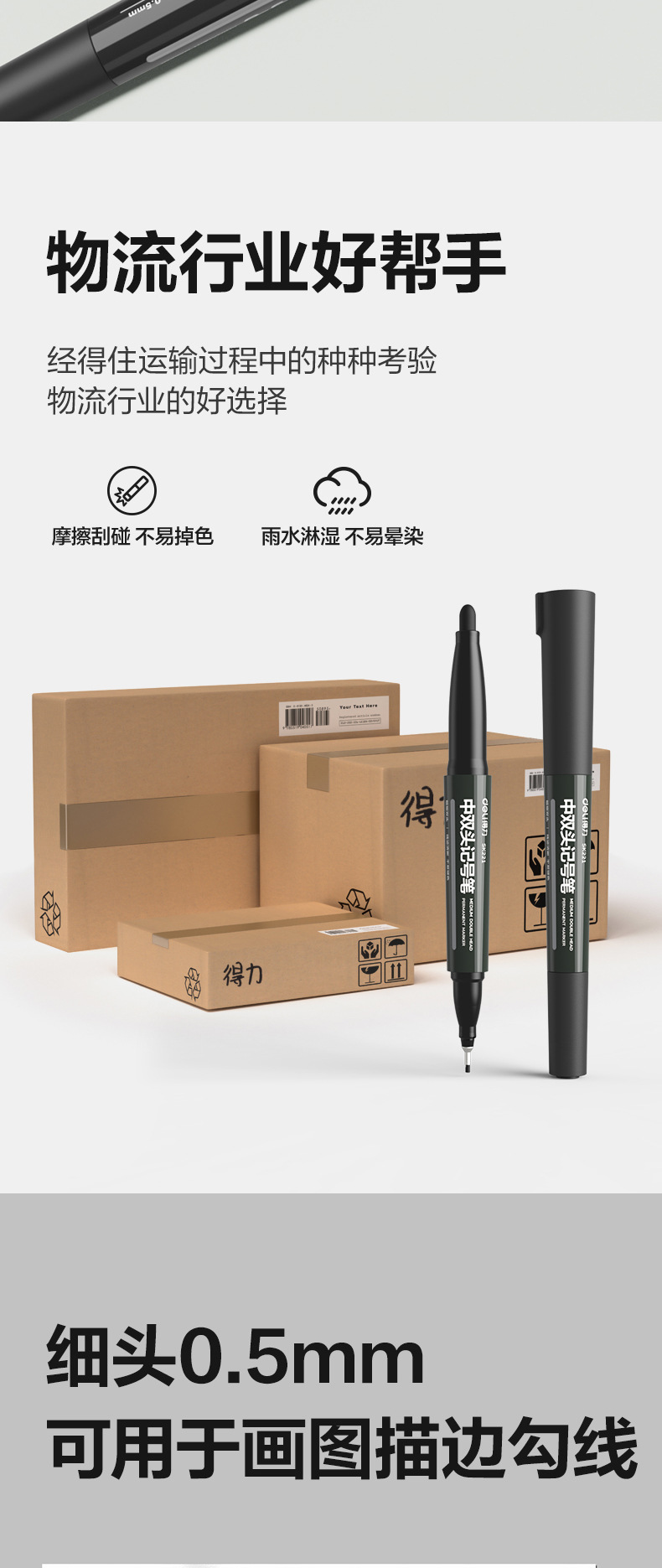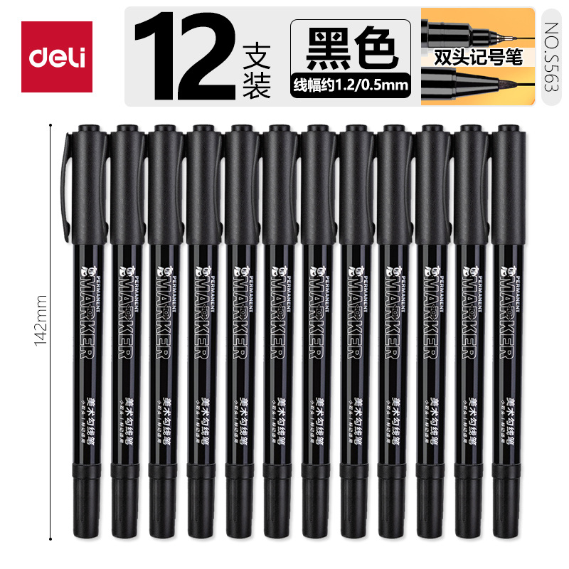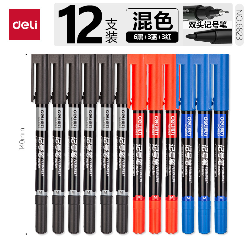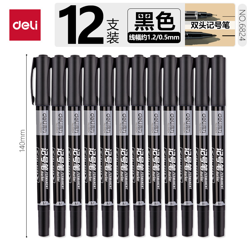 델리 6824 작은 더블 마커 레드 블루 블랙 오일 펜 그림 Gou 라인 펜 물류 익스프레스 마커 12