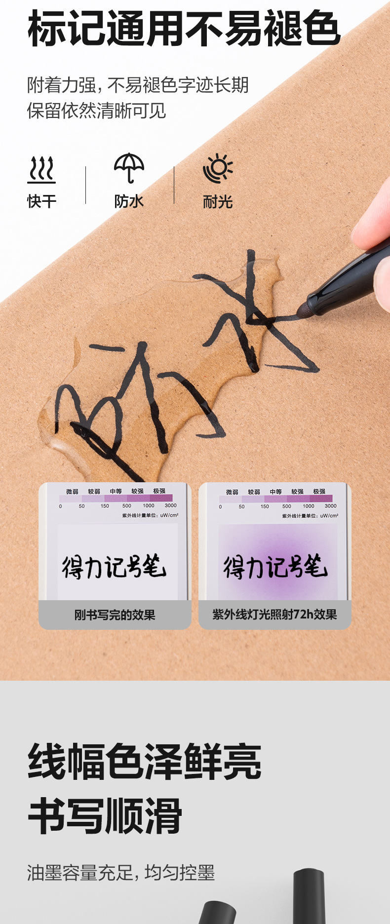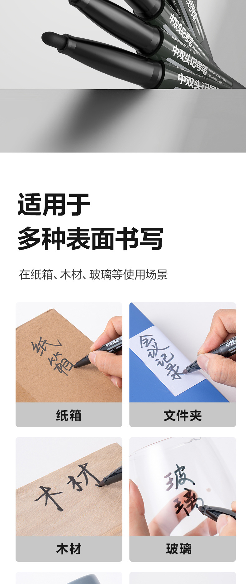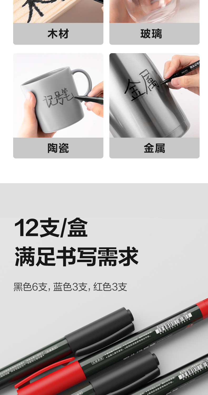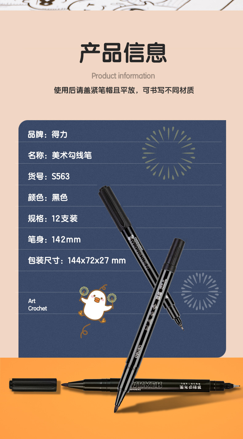 델리 6824 작은 더블 마커 레드 블루 블랙 오일 펜 그림 Gou 라인 펜 물류 익스프레스 마커 12