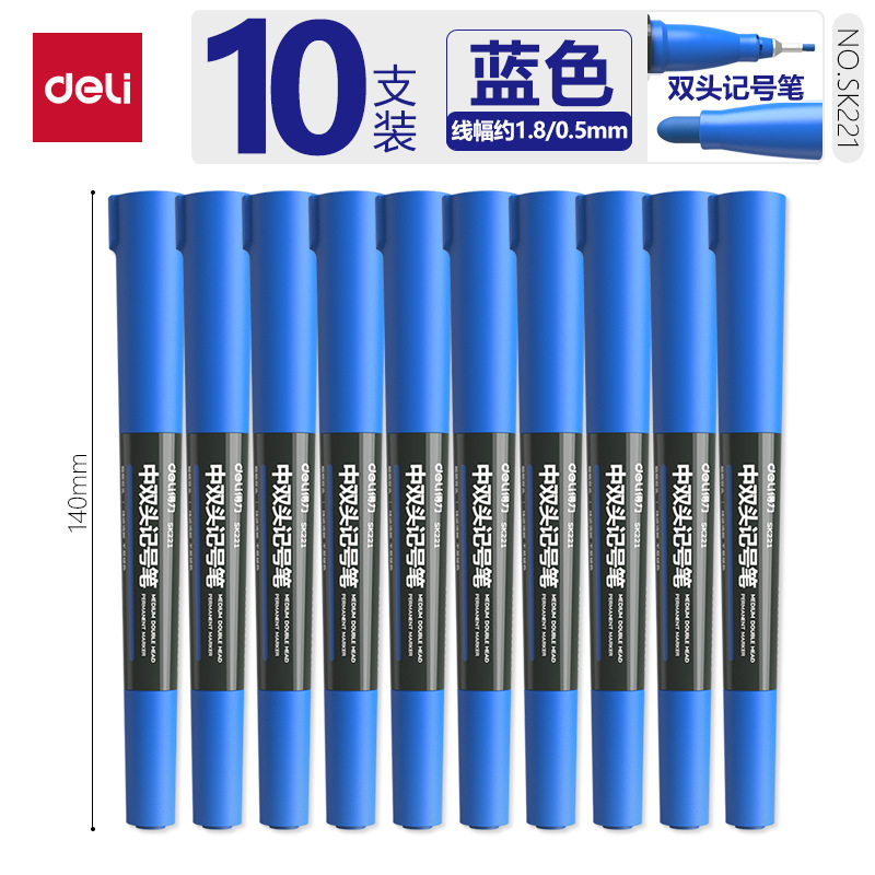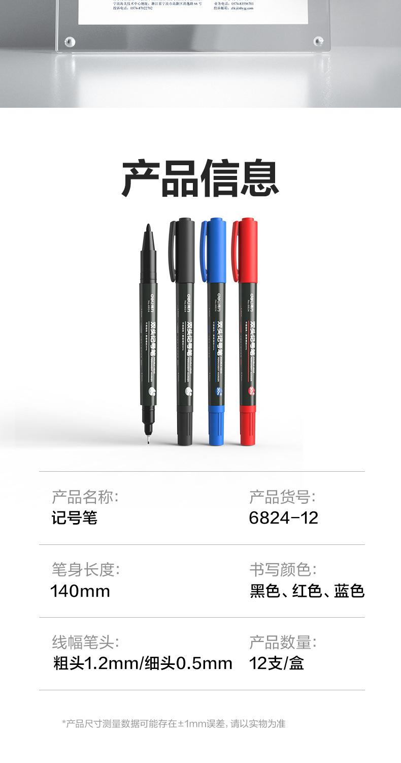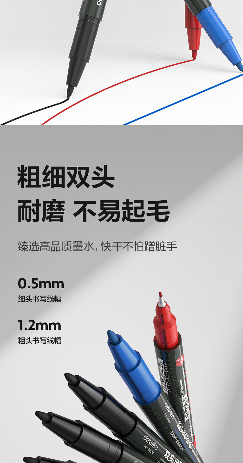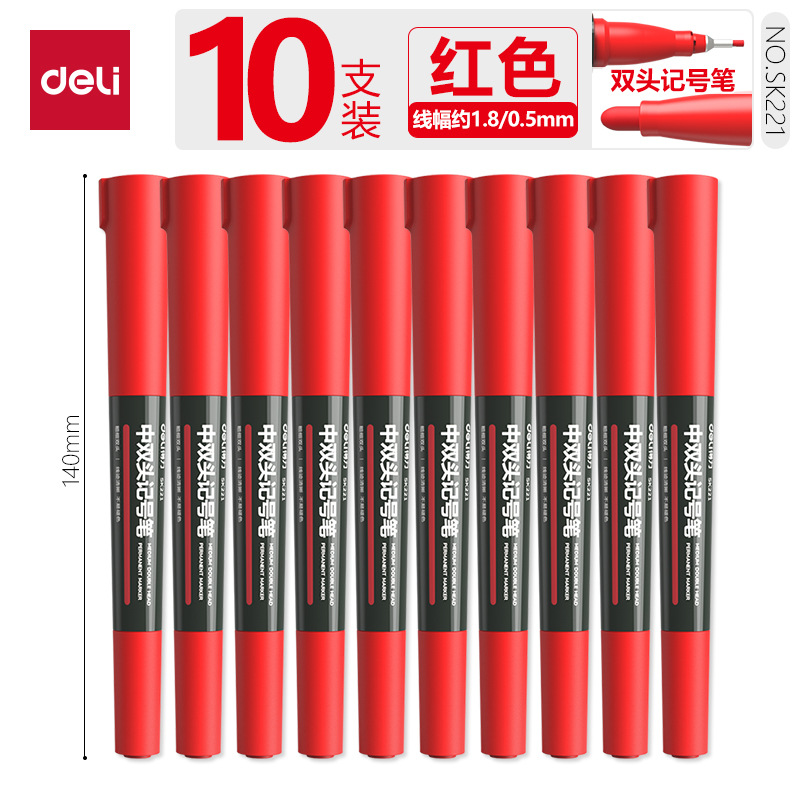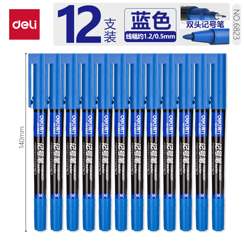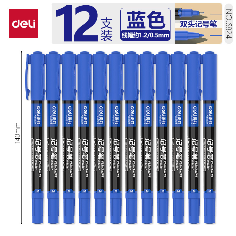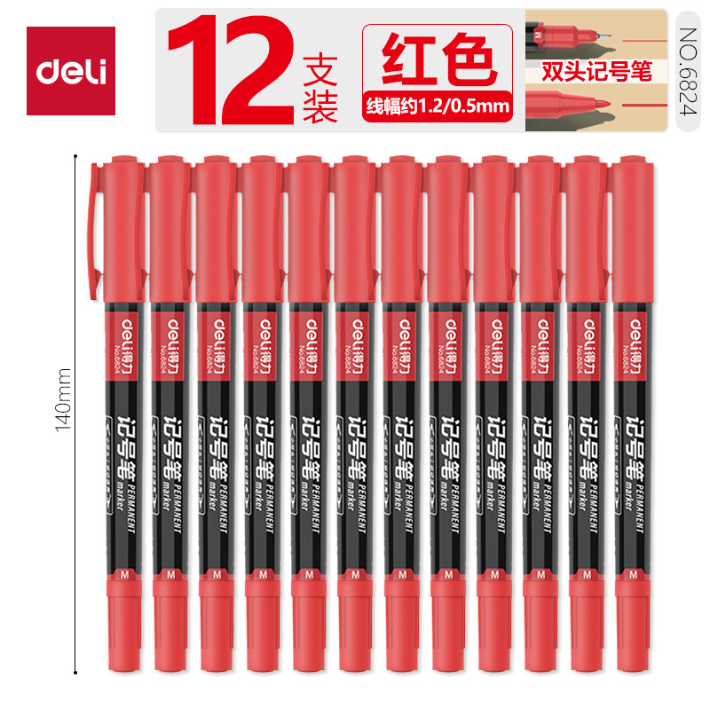 델리 6824 작은 더블 마커 레드 블루 블랙 오일 펜 그림 Gou 라인 펜 물류 익스프레스 마커 12스토어 가기