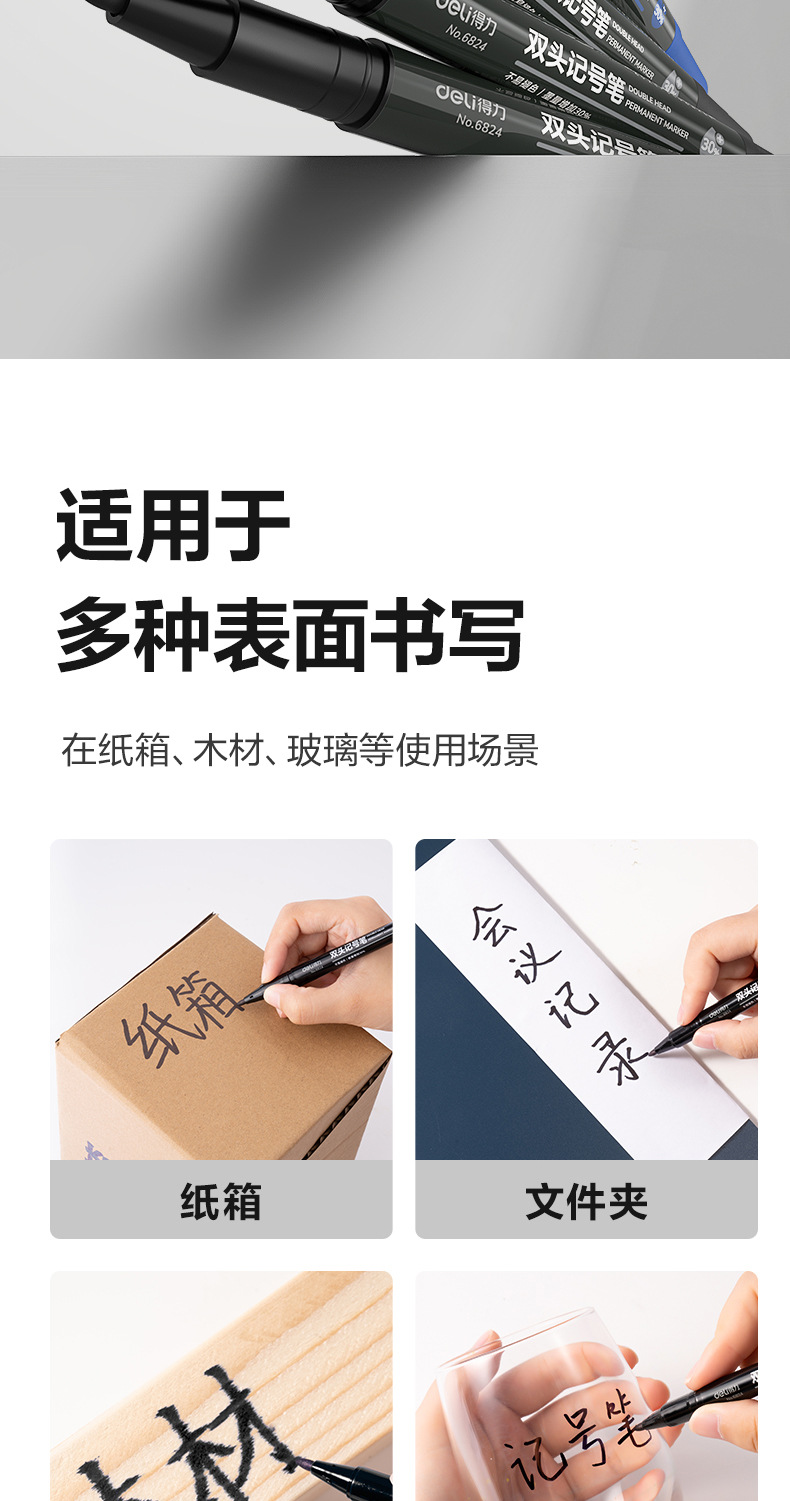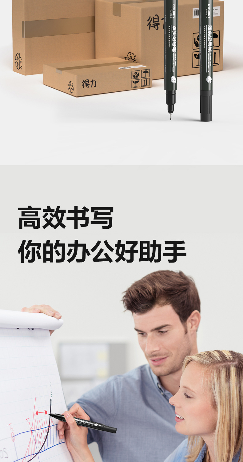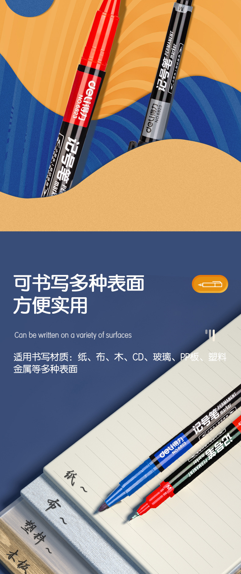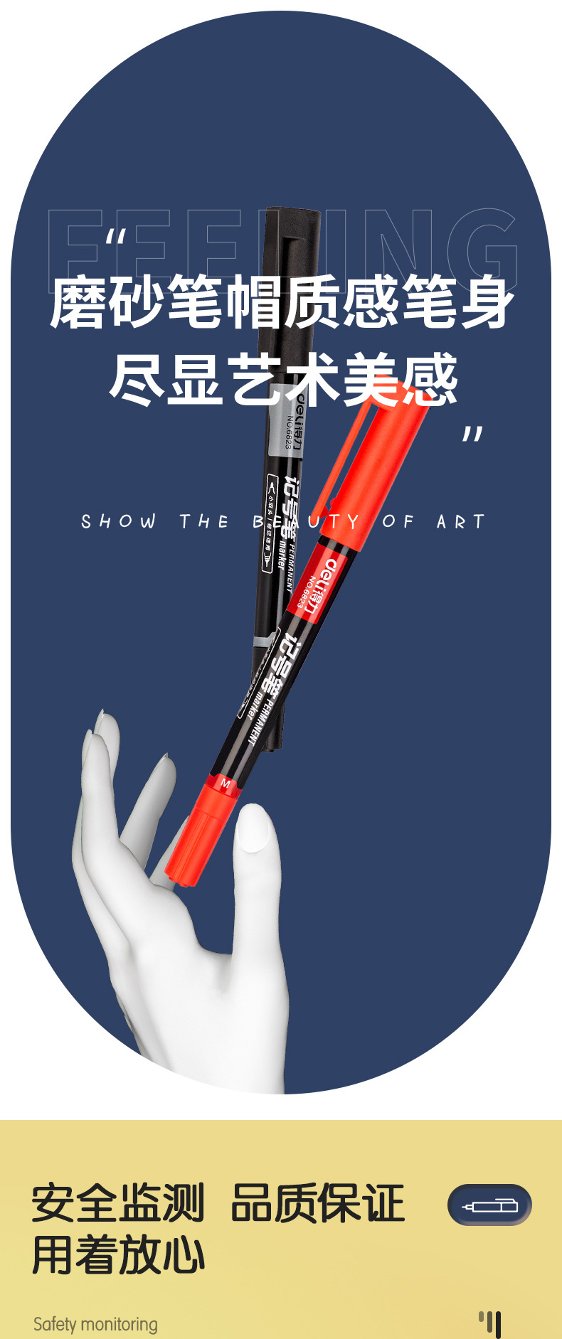 델리 6824 작은 더블 마커 레드 블루 블랙 오일 펜 그림 Gou 라인 펜 물류 익스프레스 마커 12스토어 가기