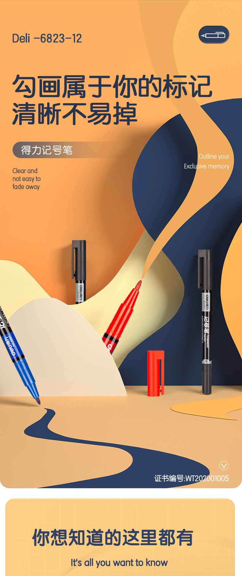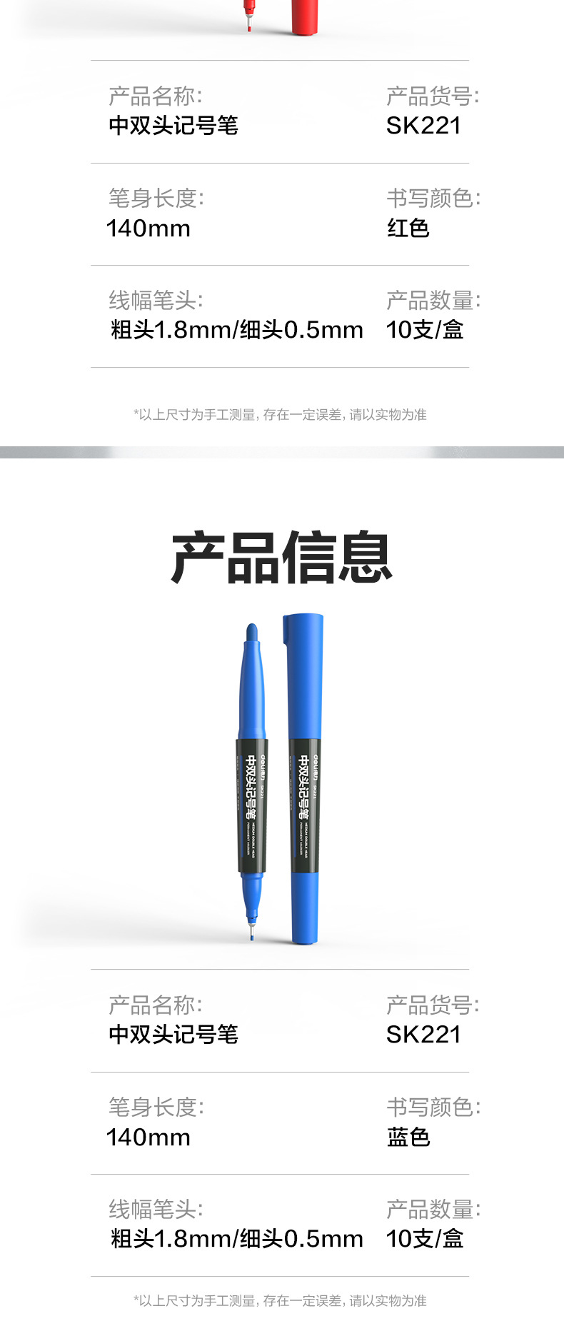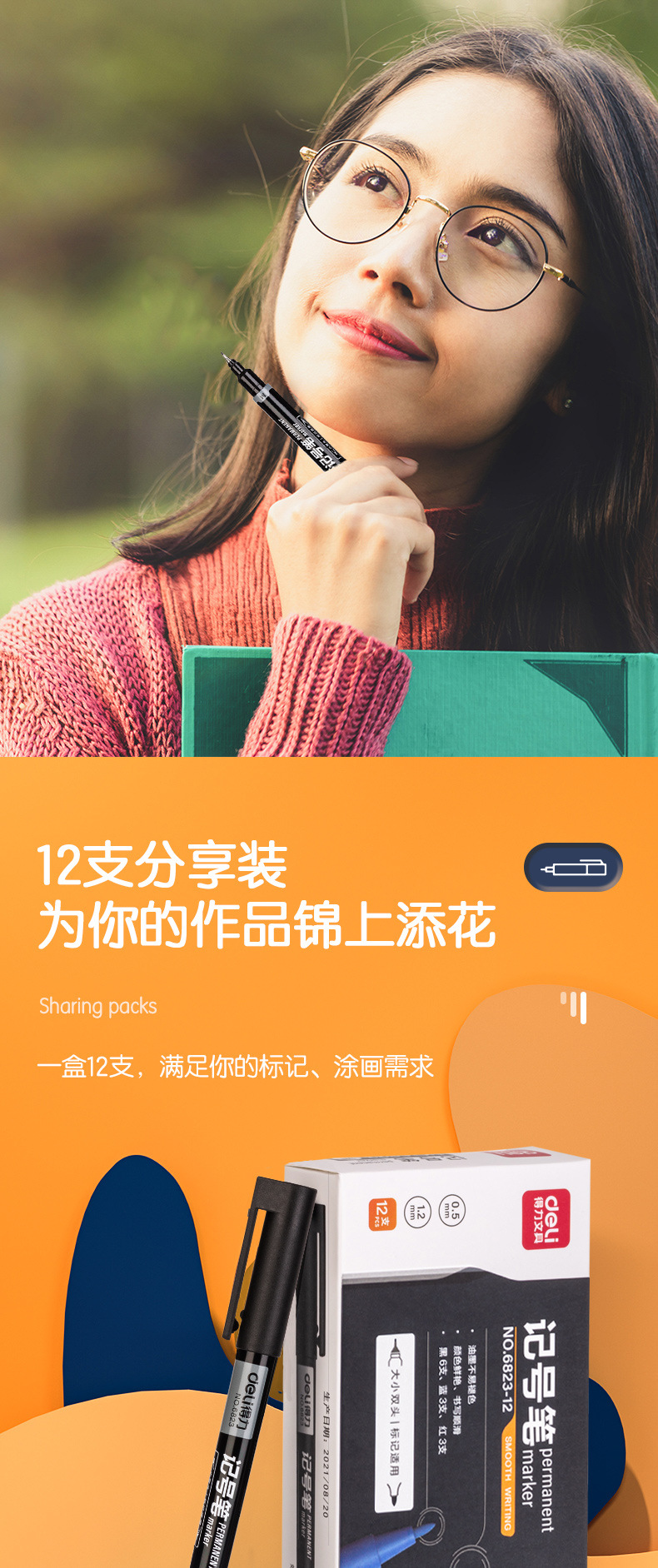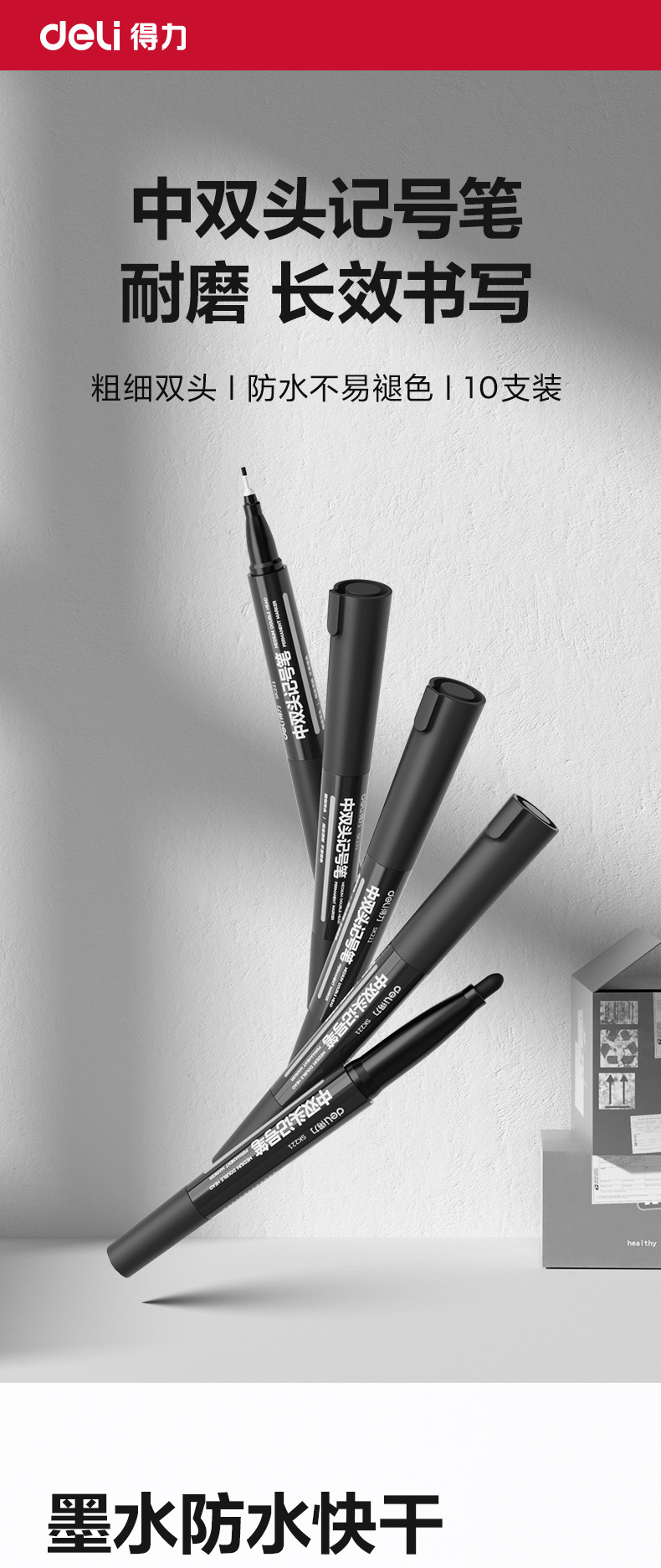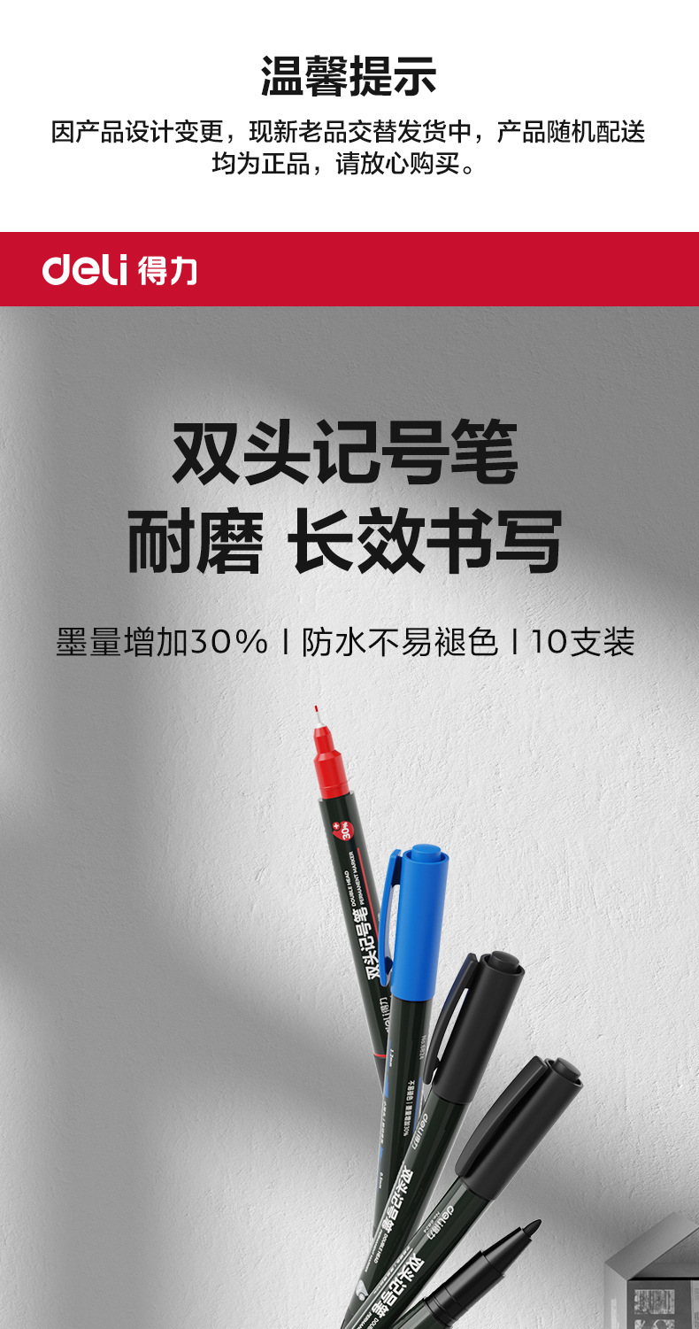 델리 6824 작은 더블 마커 레드 블루 블랙 오일 펜 그림 Gou 라인 펜 물류 익스프레스 마커 12스토어 가기