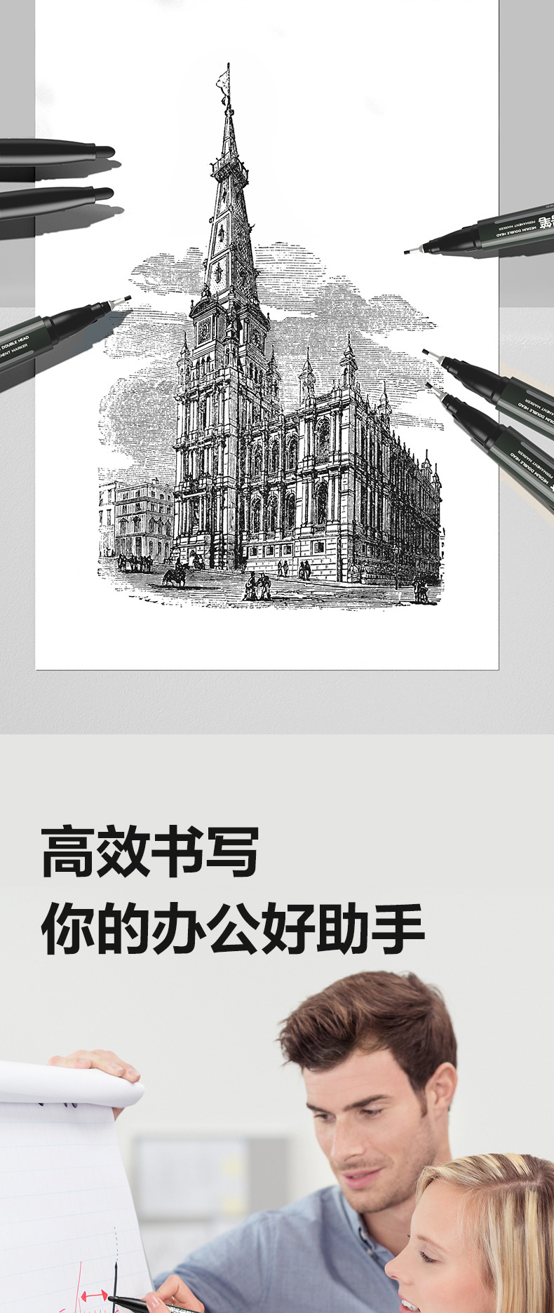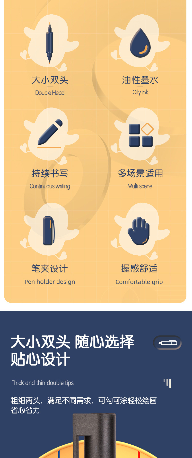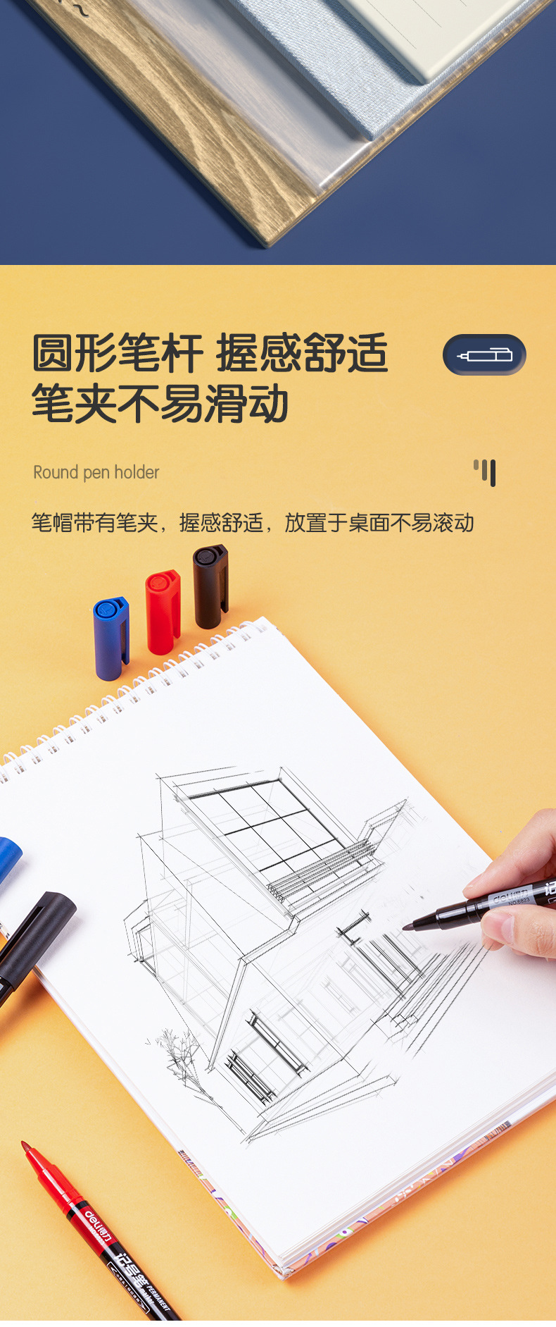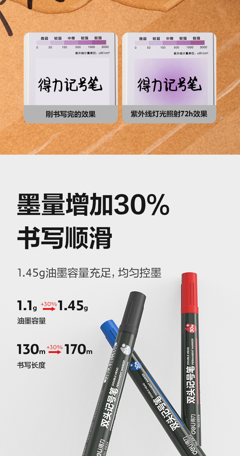 델리 6824 작은 더블 마커 레드 블루 블랙 오일 펜 그림 Gou 라인 펜 물류 익스프레스 마커 12스토어 가기
