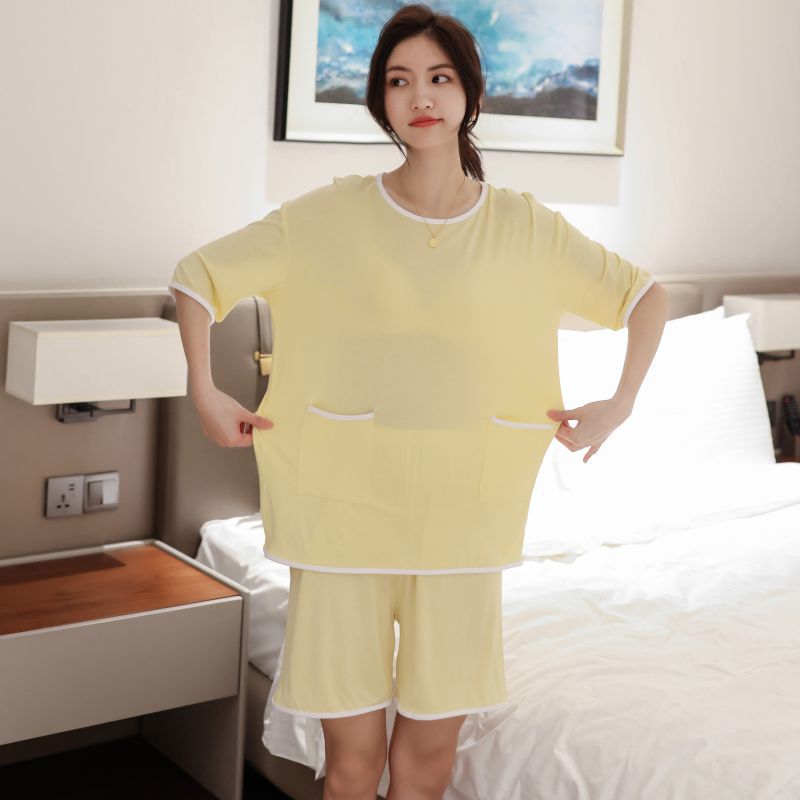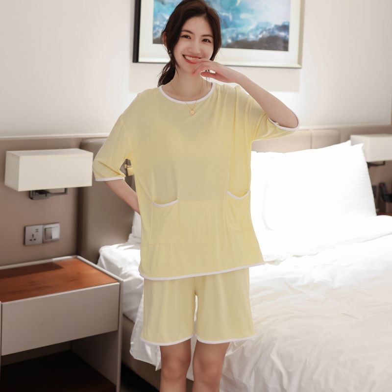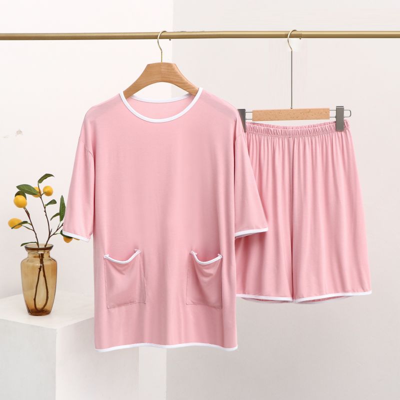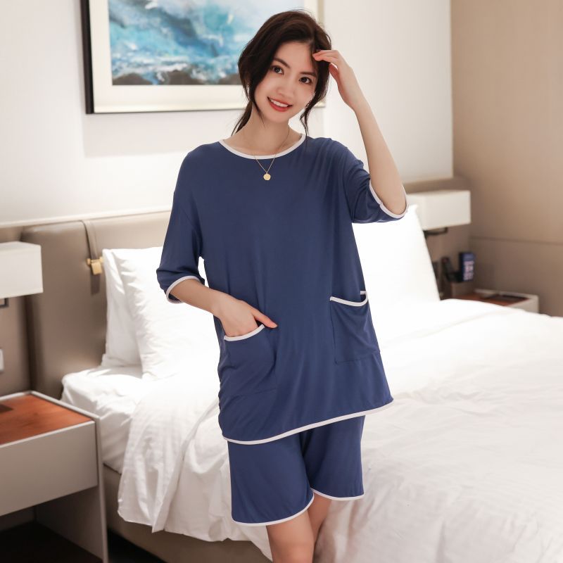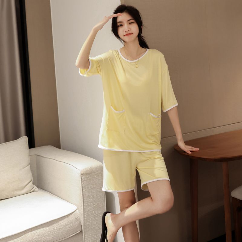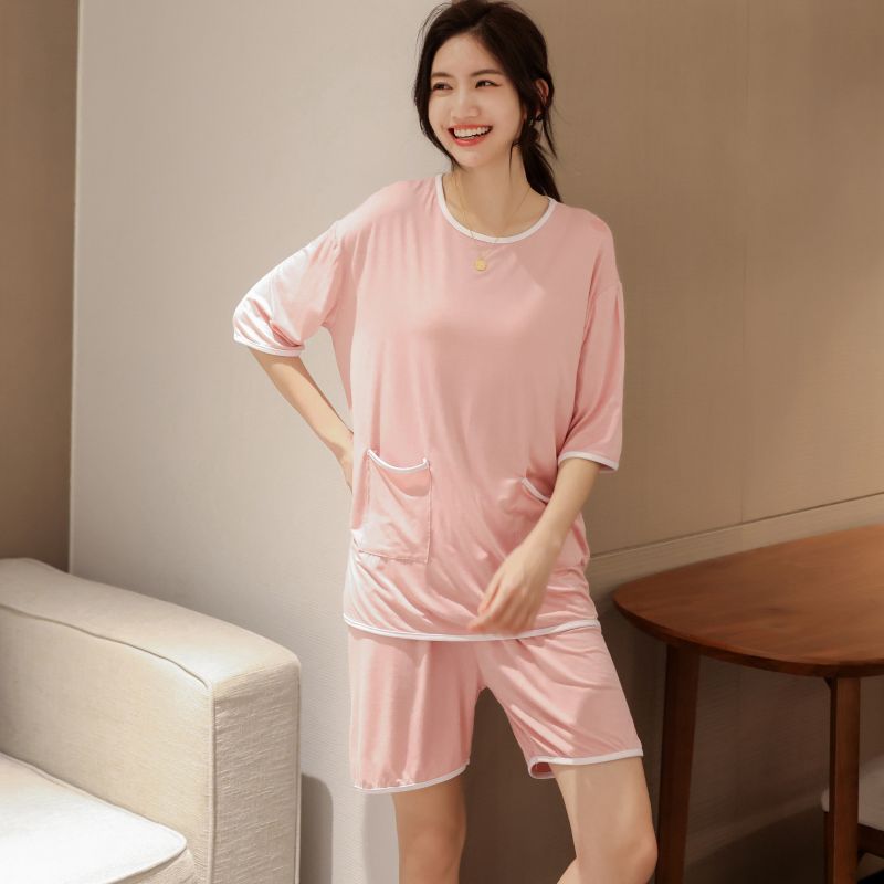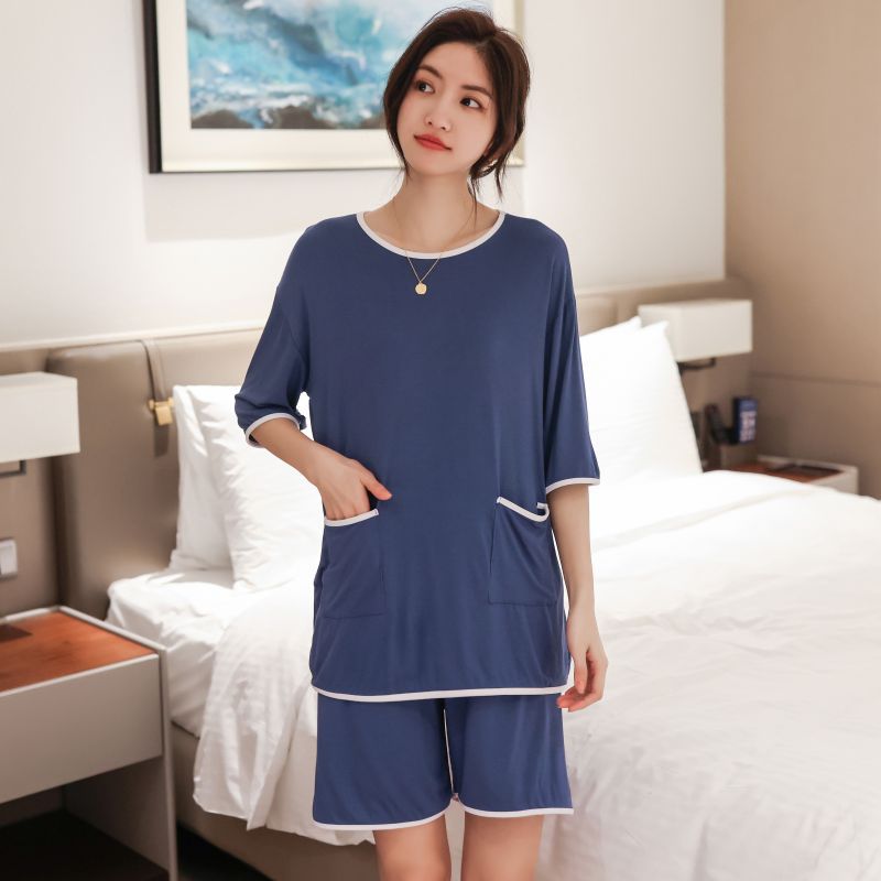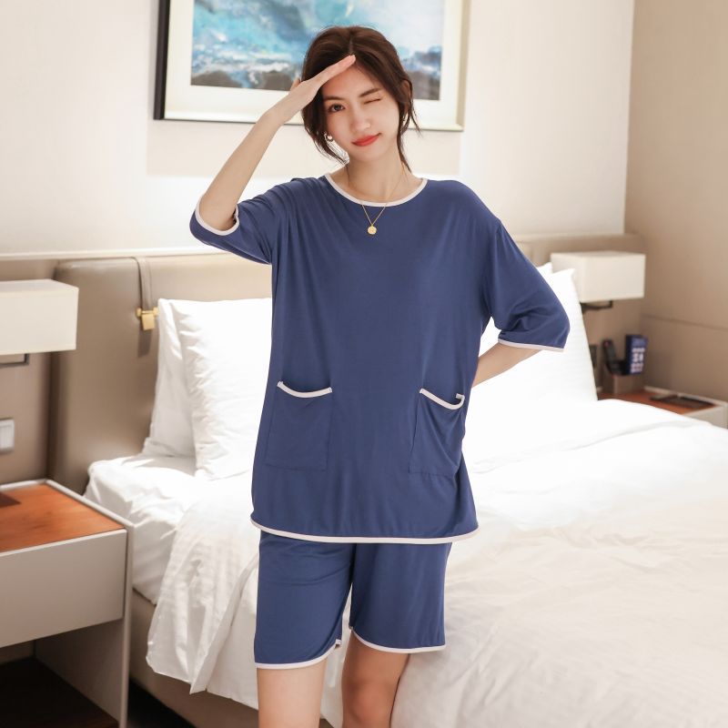 모달 잠옷 세트 여성 여름 높은 탄성 느슨한 슬리밍 반팔 반바지 투피스 의상 홈 옷스토어 가기
