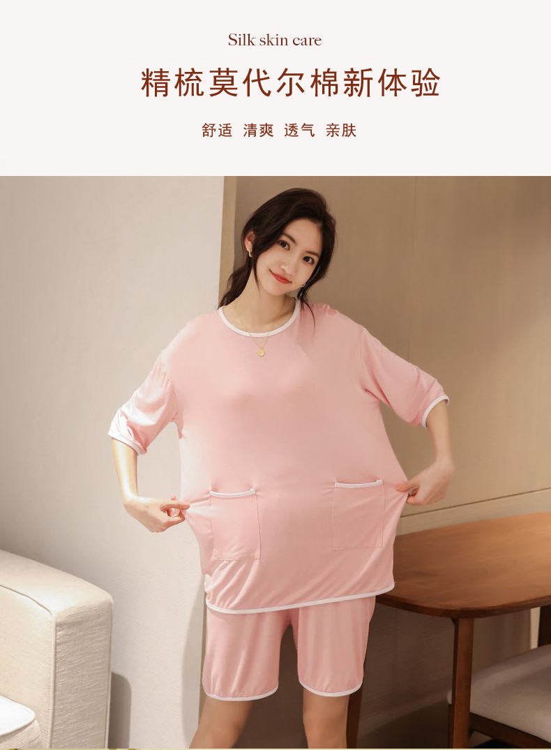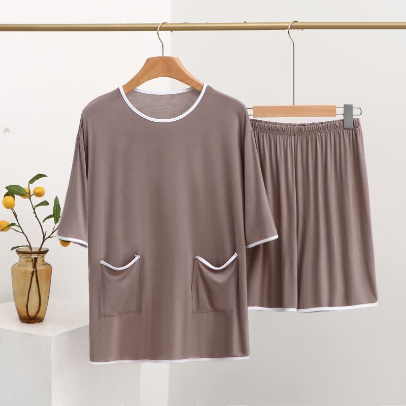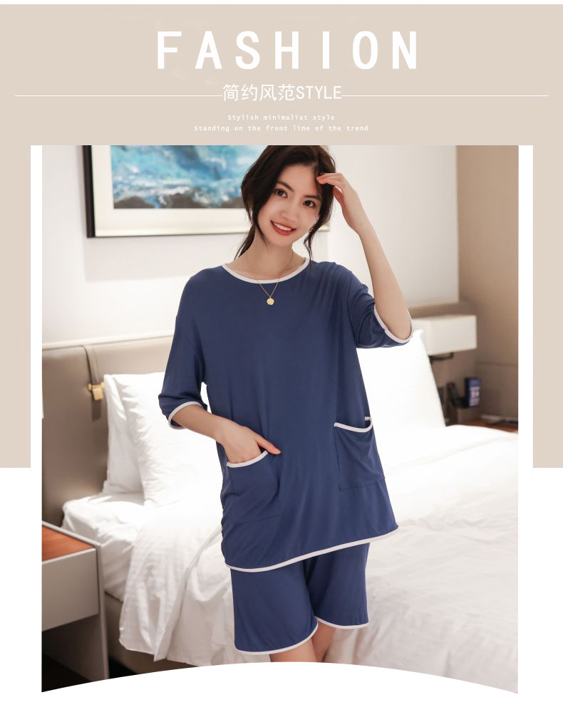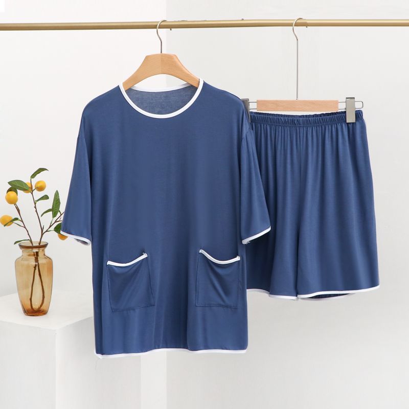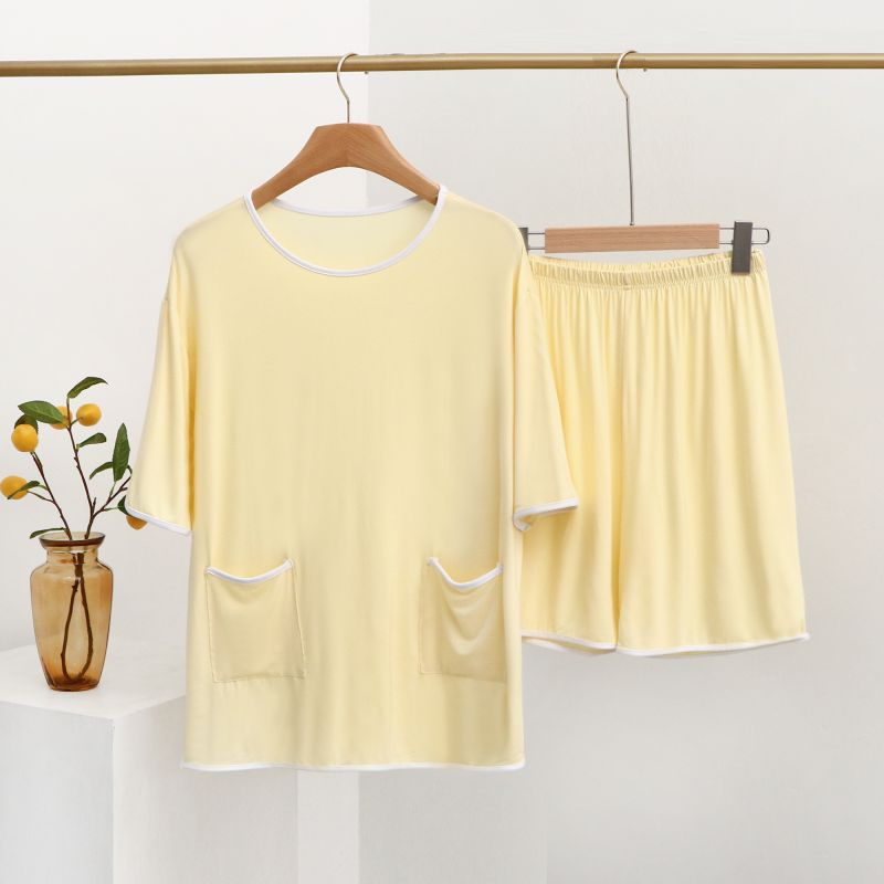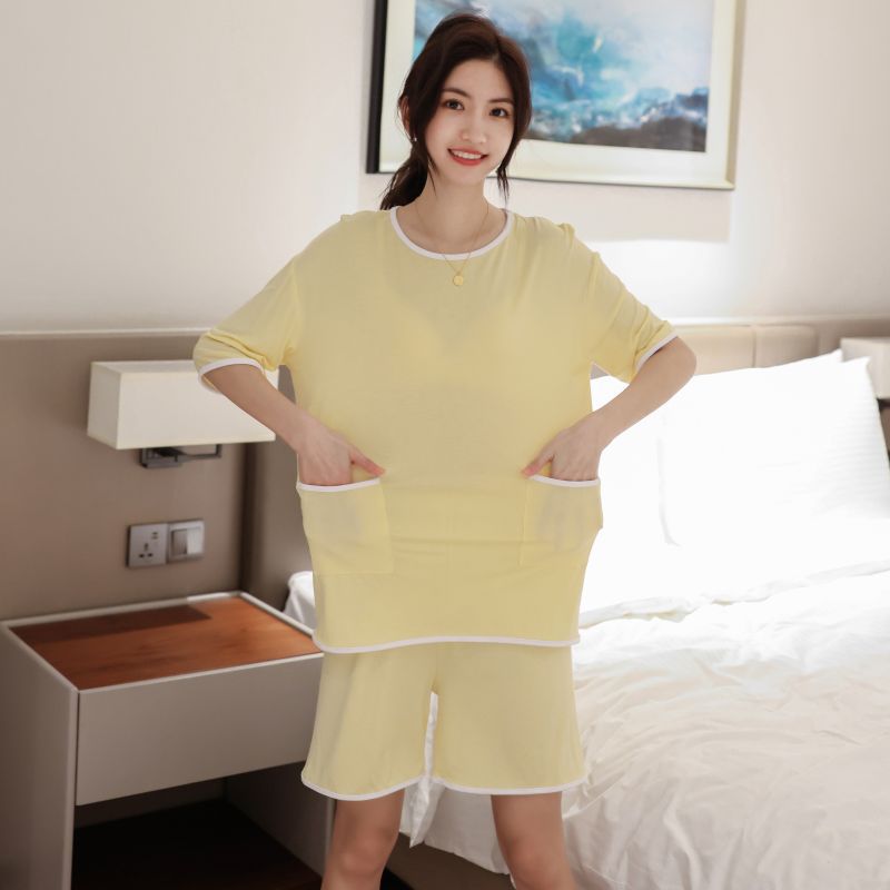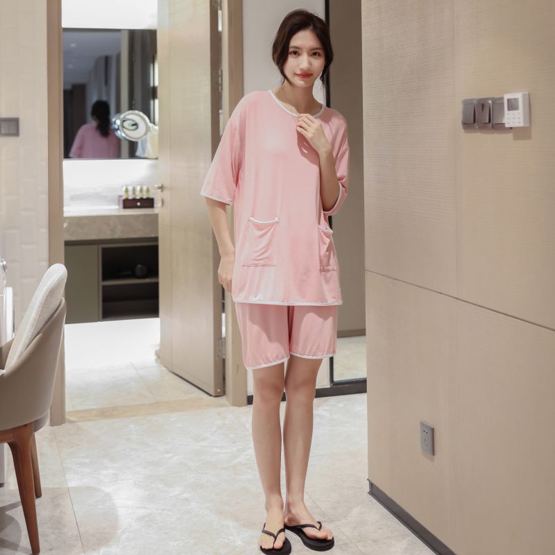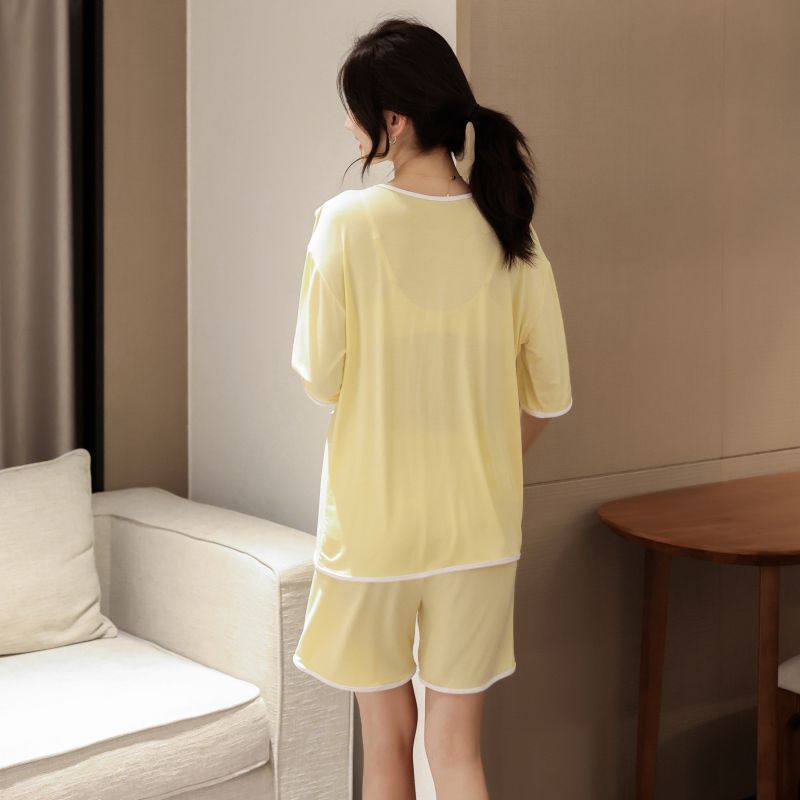 모달 잠옷 세트 여성 여름 높은 탄성 느슨한 슬리밍 반팔 반바지 투피스 의상 홈 옷스토어 가기