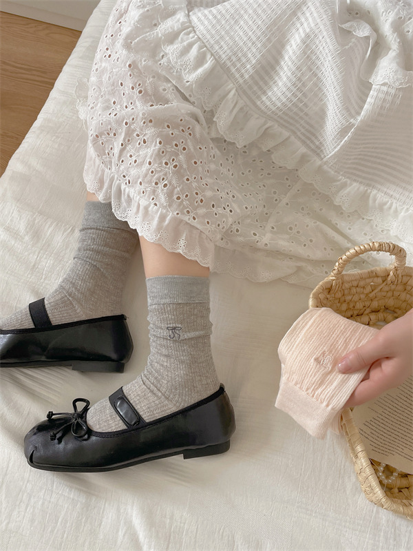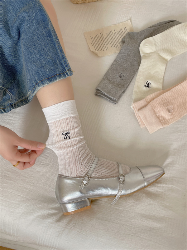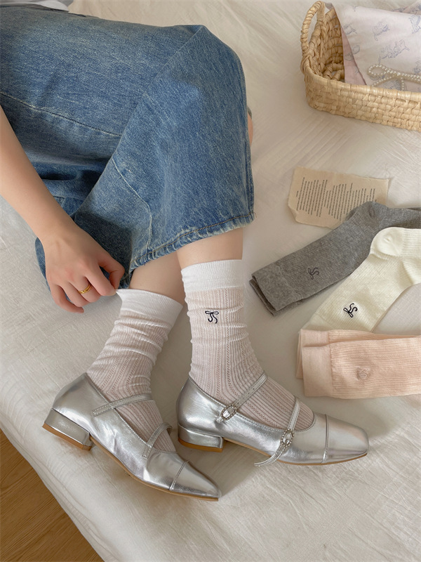 봄과 여름 우유 흰색 얇은 JK 양말 여성 튜브 양말 발레 활 중공 더미 양말 올 매치 단색