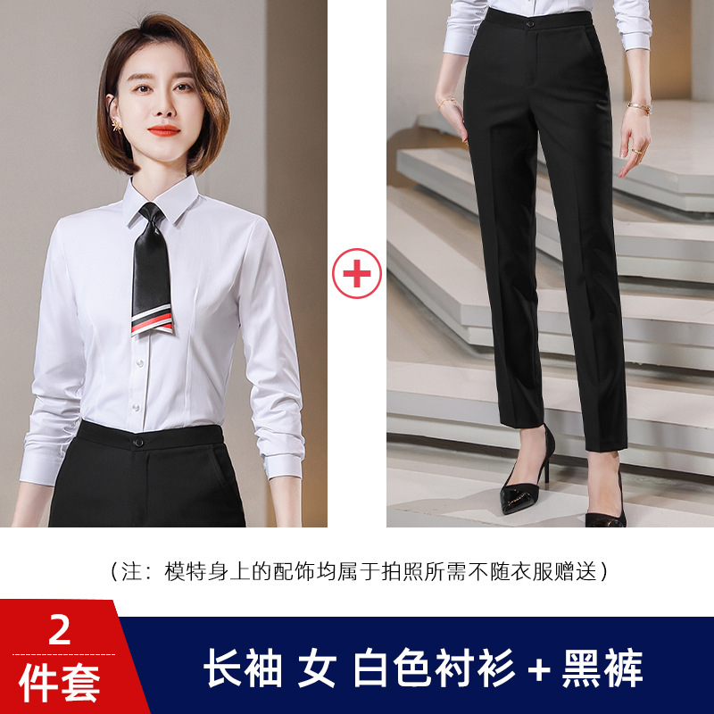 • 긴팔 여성용 흰색 셔츠 + 검은 바지
