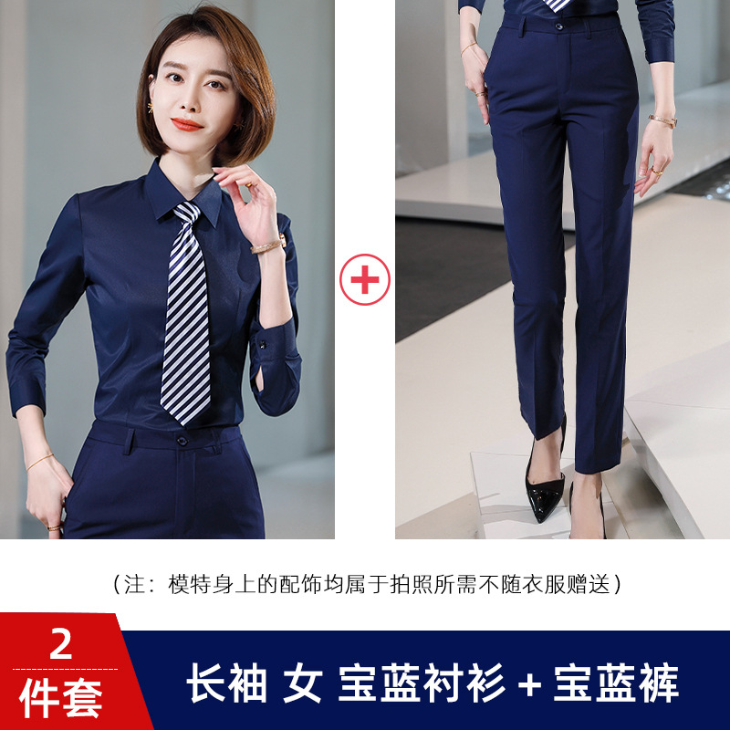 • 긴팔 여성용 사파이어 블루 셔츠 + 사파이어 블루 바지