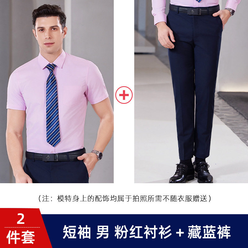 • 반팔 남성용 핑크 셔츠 + 자줏빛 파란색 바지