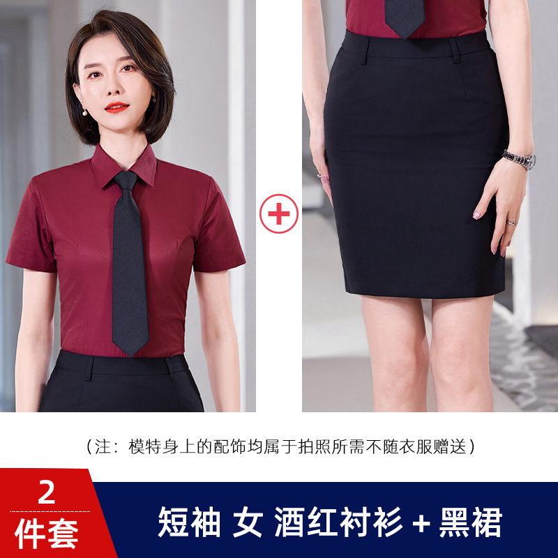 • 반팔 여성용 버건디 셔츠 + 블랙 원피스
