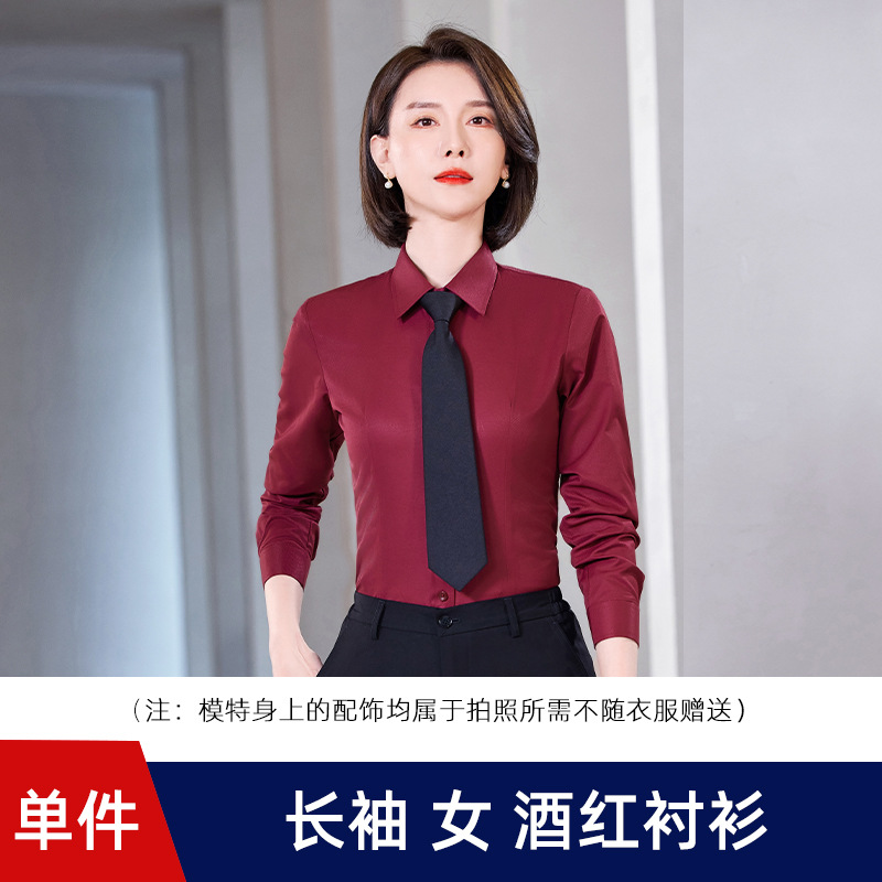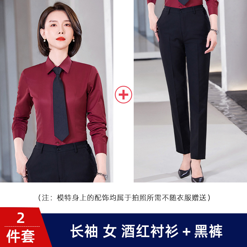 • 긴 소매 여성 버건디 셔츠 + 검은 바지