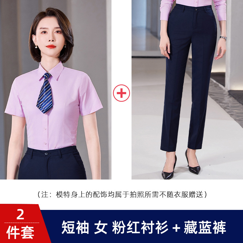 • 반팔 여성용 핑크 셔츠 + 자줏빛 파란색 바지