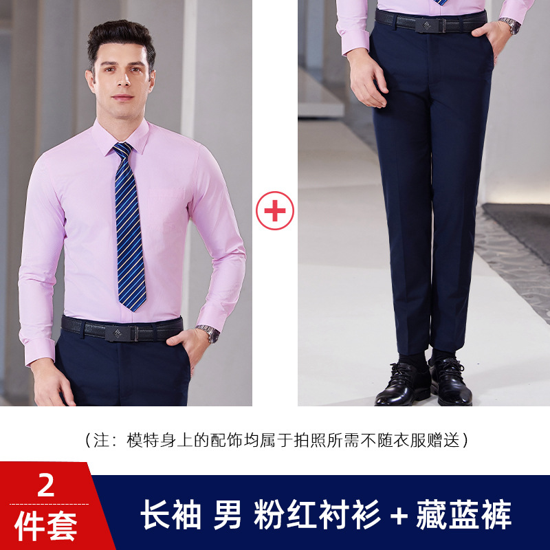 • 긴팔 남성용 핑크 셔츠 + 자줏빛 파란색 바지