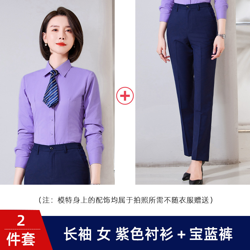 • 긴팔 여성용 보라색 셔츠 + 사파이어 블루 바지