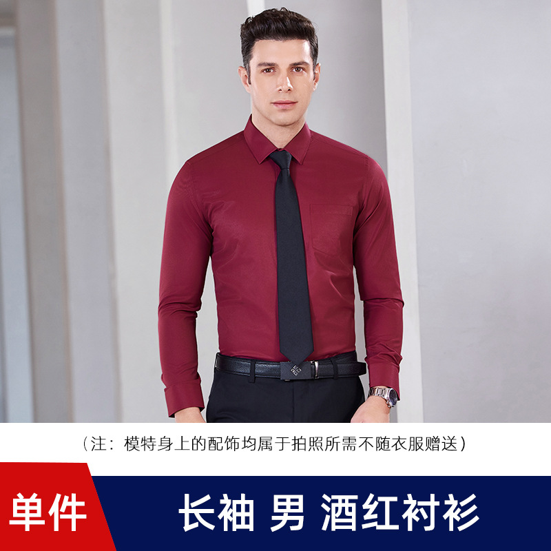 • 긴 소매 남성 버건디 셔츠 + 검은 바지