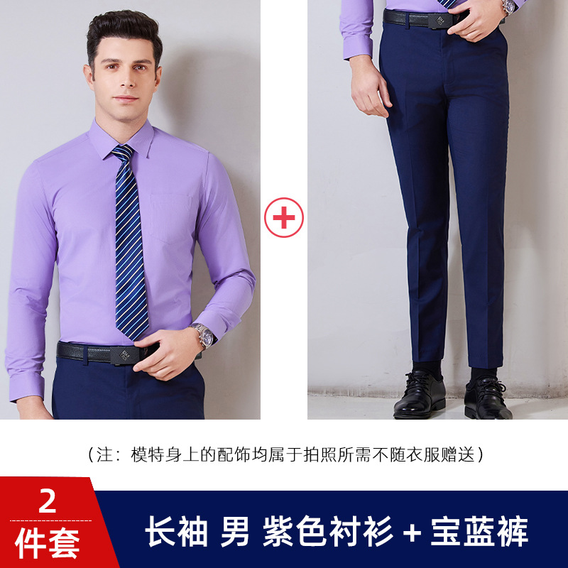 • 긴 소매 남성 보라색 셔츠 + 사파이어 블루 바지