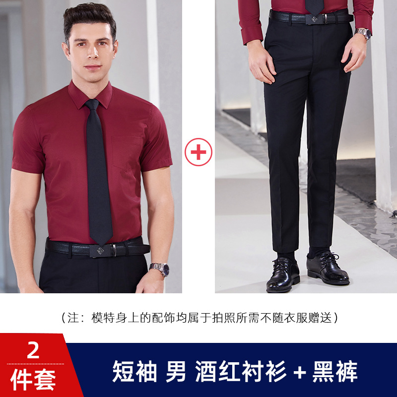 • 반팔 남성 버건디 셔츠 + 검은 바지