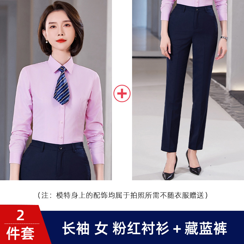 • 여성용 긴팔 핑크 셔츠 + 자줏빛 파란색 바지
