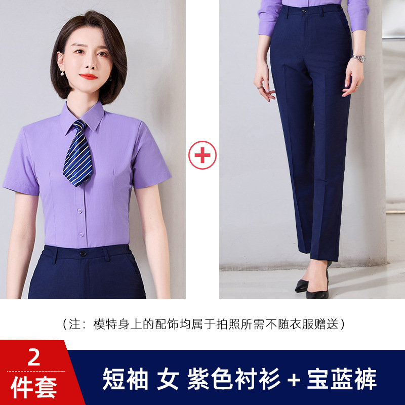 • 반팔 여성용 보라색 셔츠 + 사파이어 블루 바지