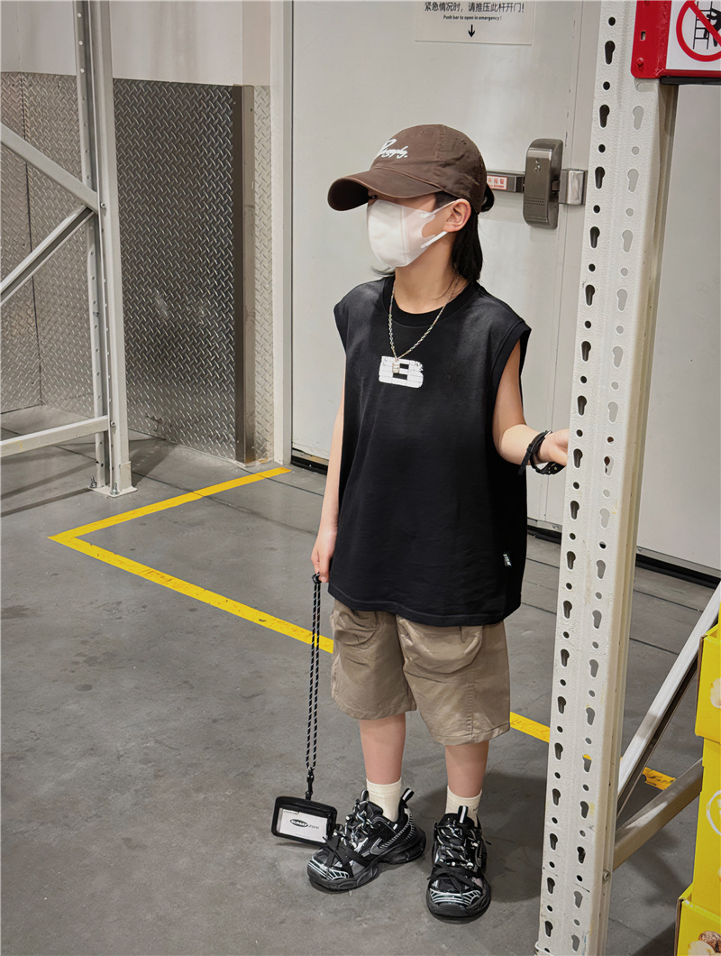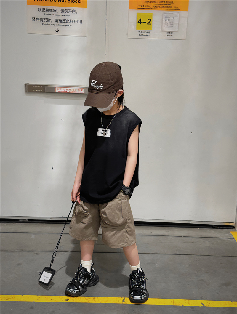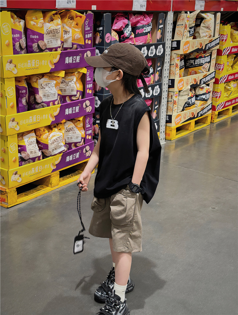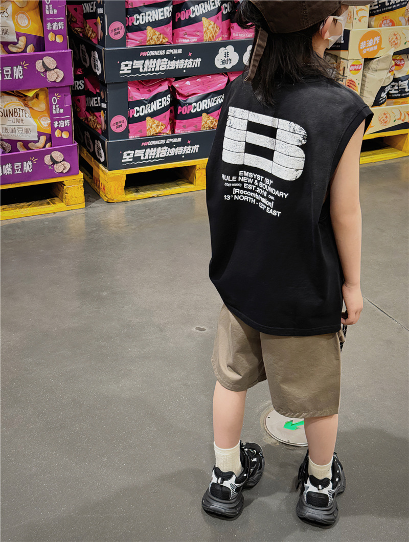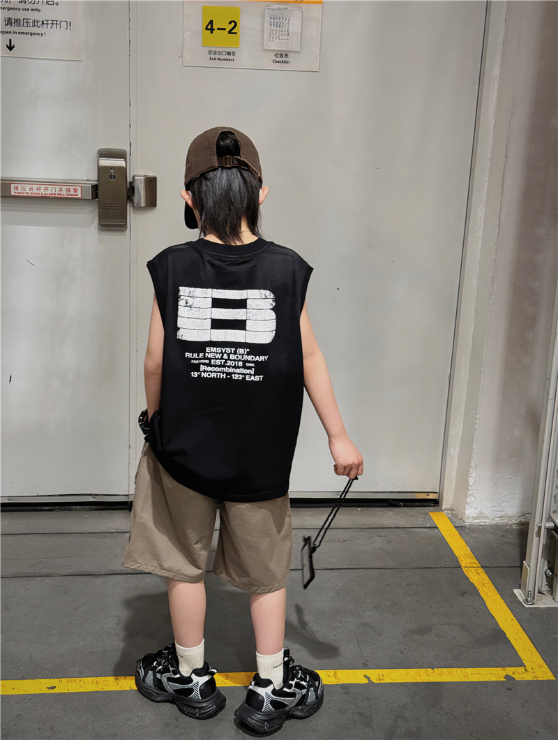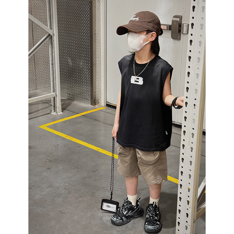 바오 두 아동복 한국 스타일 어린이 조끼 서양식 2024 소년 여름 탑 어린이 민소매 티셔츠 조끼 T 트렌디