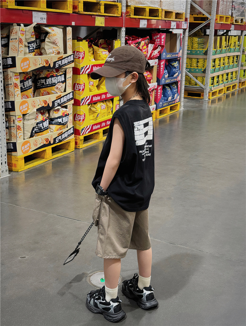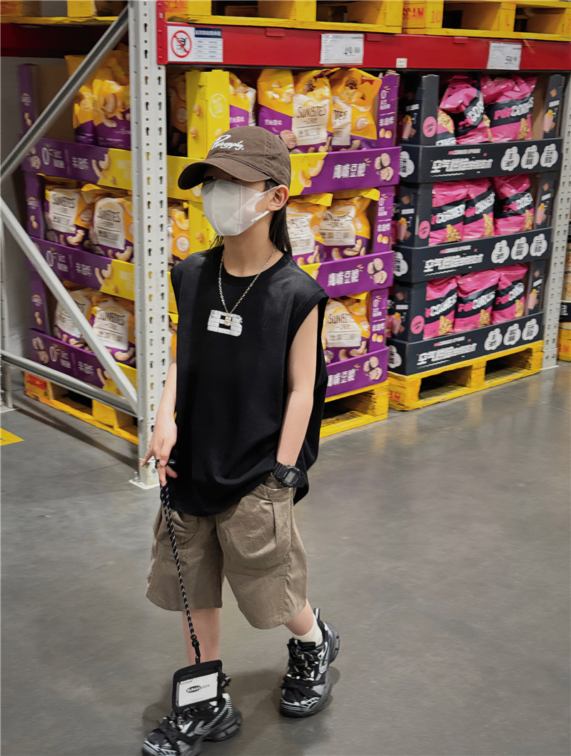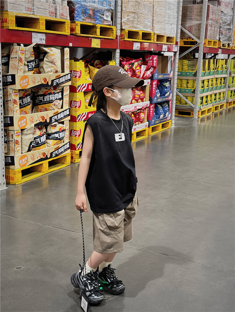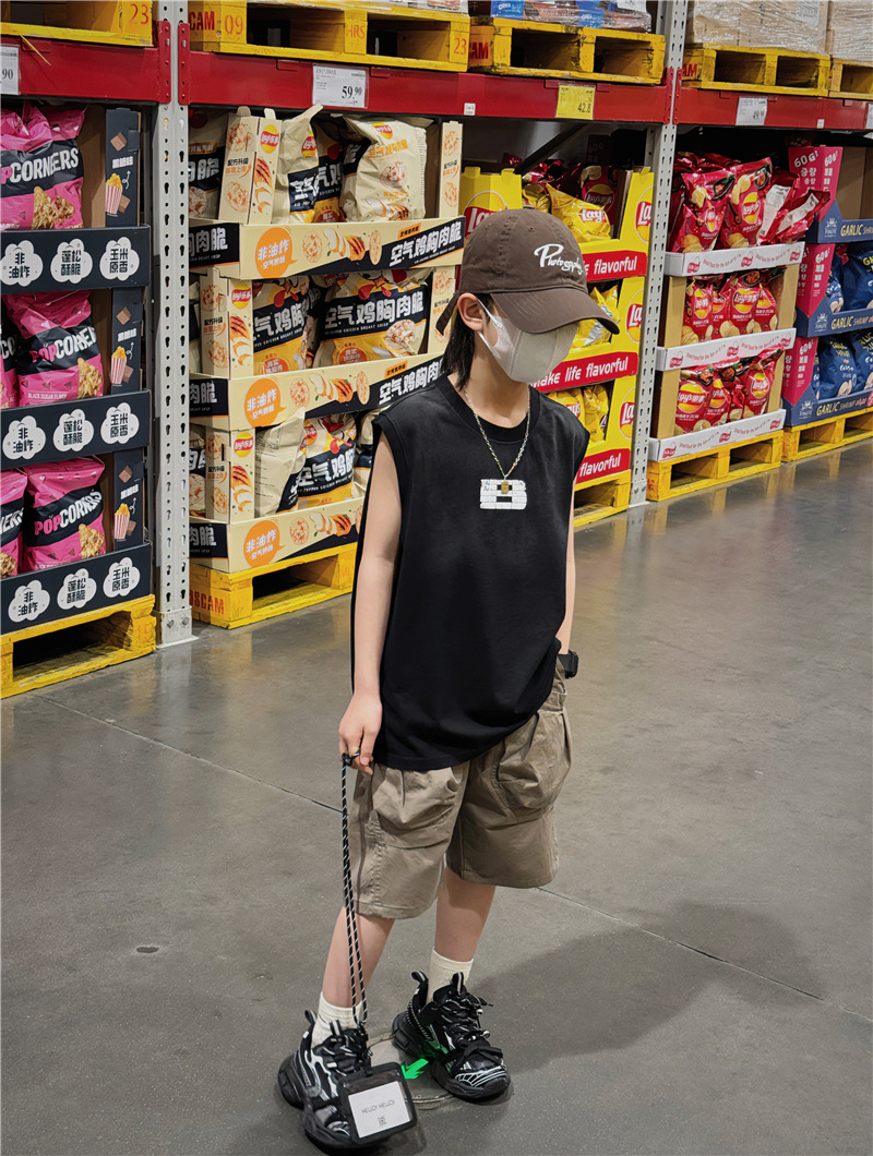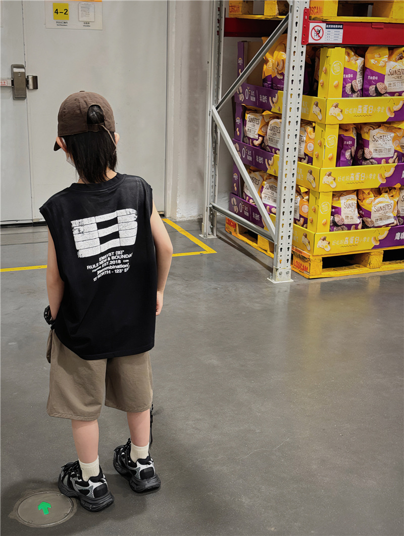 바오 두 아동복 한국 스타일 어린이 조끼 서양식 2024 소년 여름 탑 어린이 민소매 티셔츠 조끼 T 트렌디