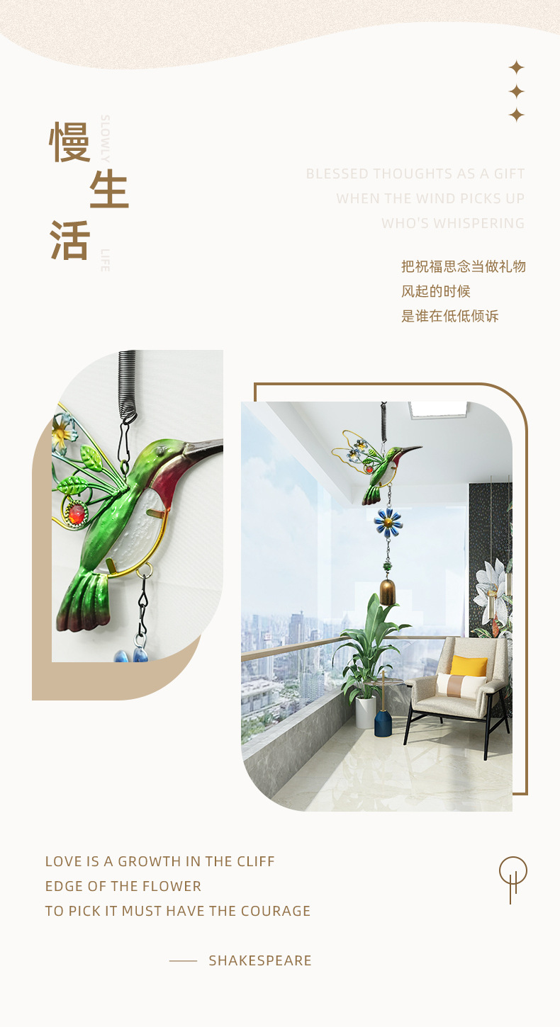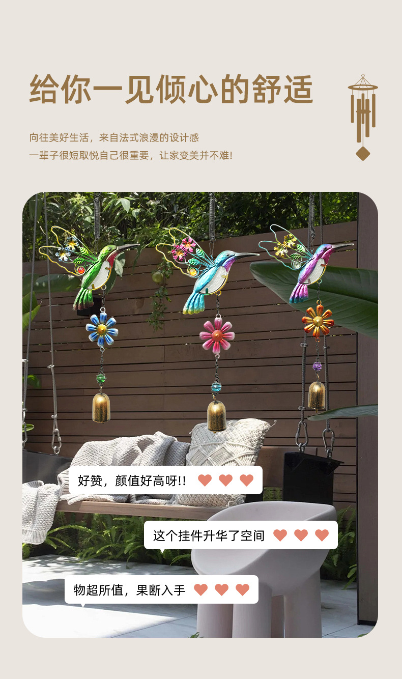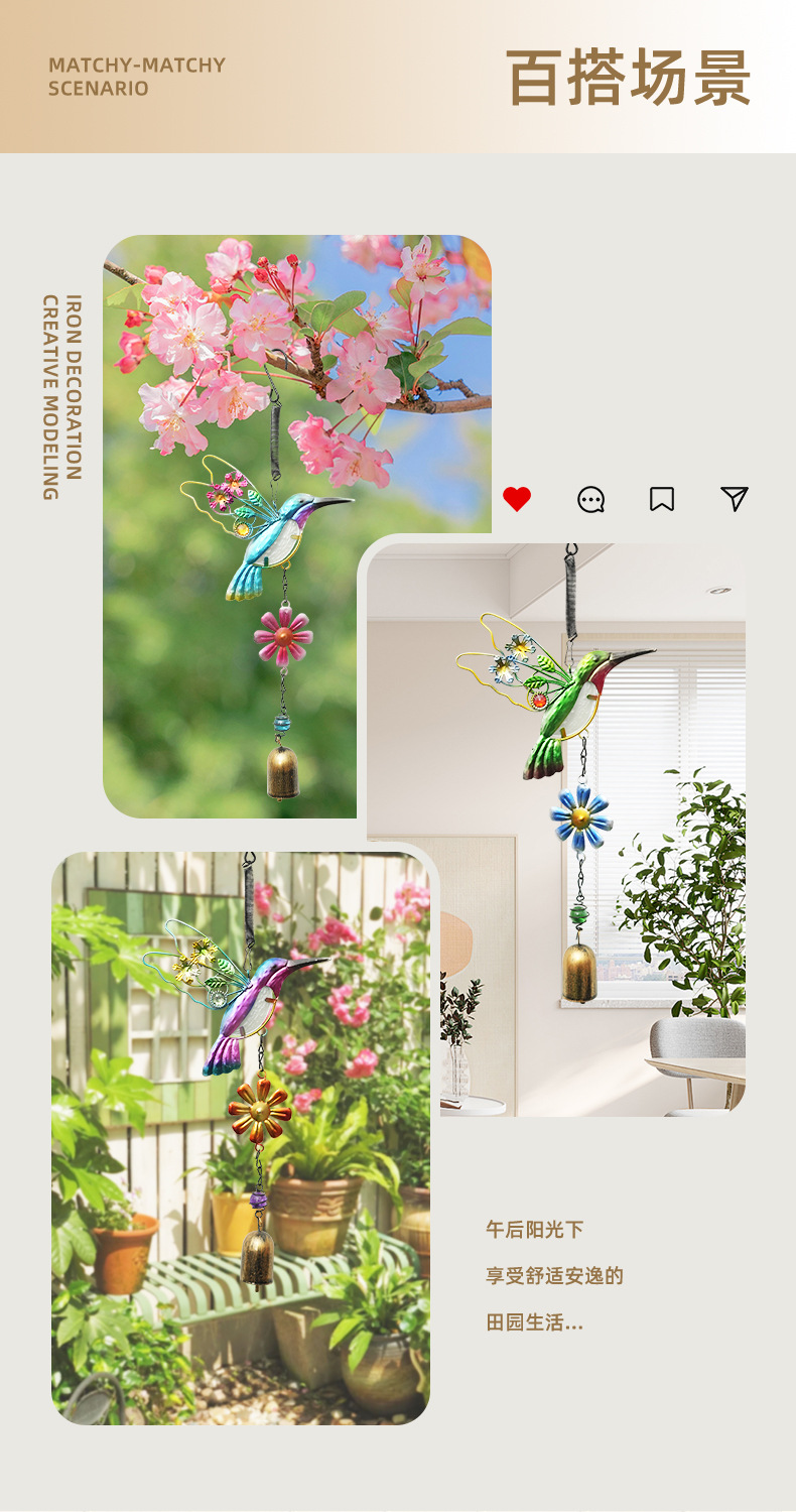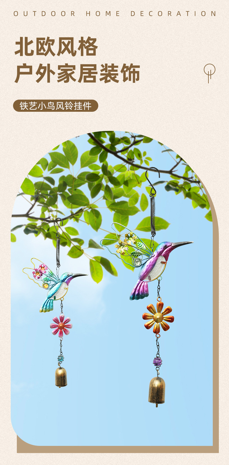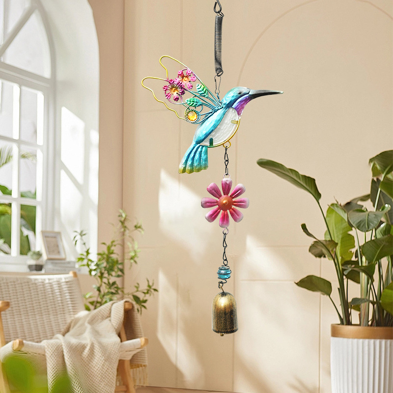 야외 정원 Kingfisher 바람 벨 철 펜던트 장식 목가적 인 스타일 금속 벌새 벨 매달려 장식 페인트 공예스토어 가기