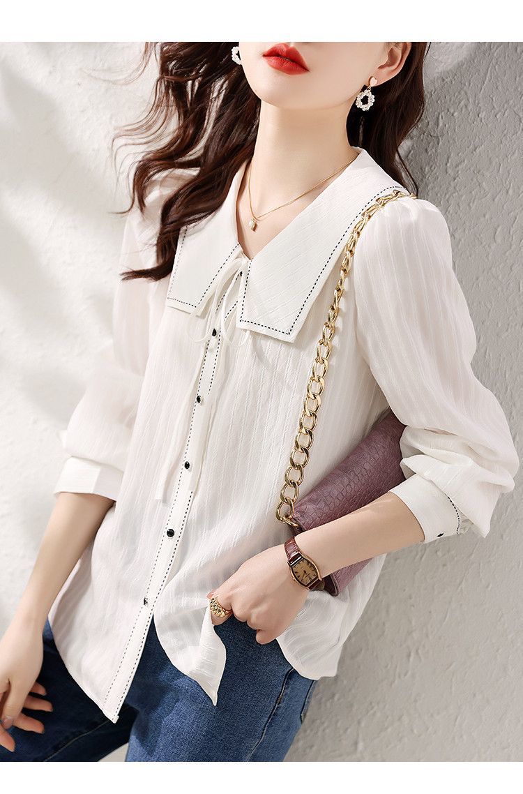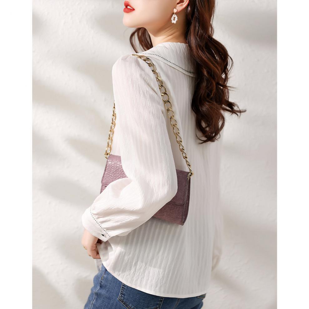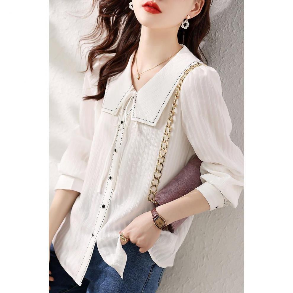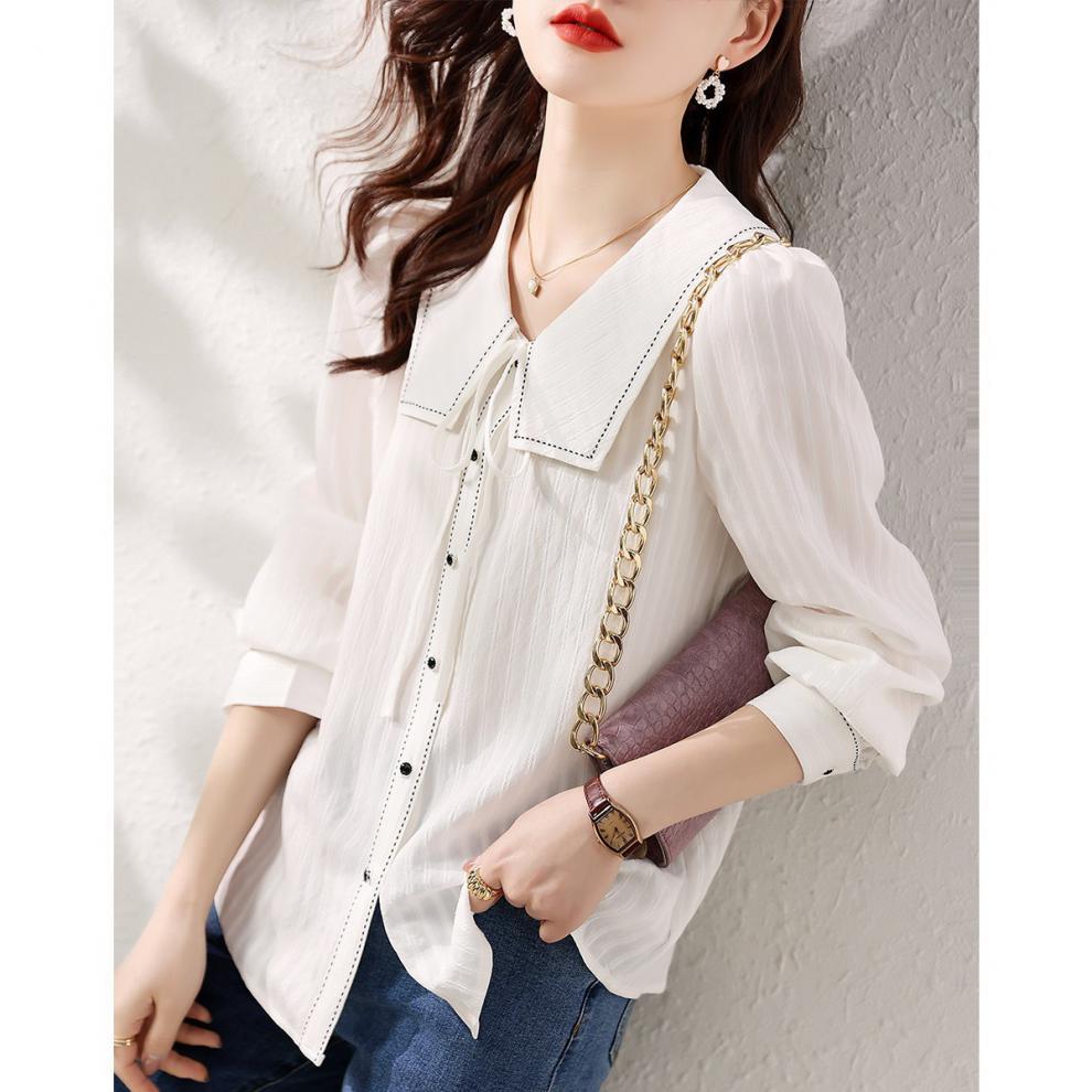 새로운 도시 스타일 간단한 나이 감소 올 매치 플라잉 슬리브 긴 소매 탑 우아한 쉬폰 셔츠