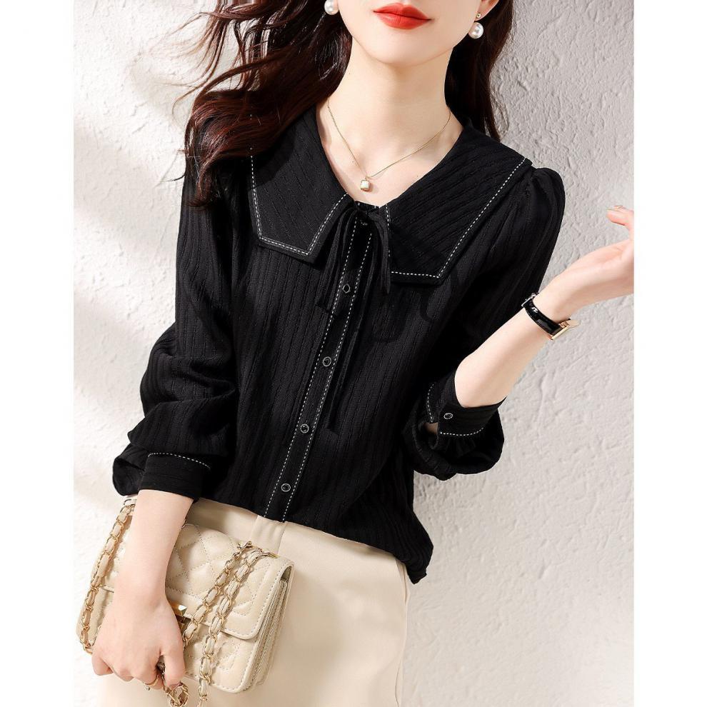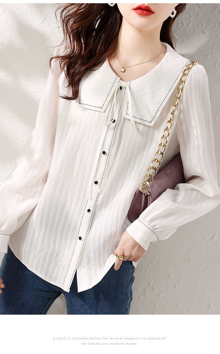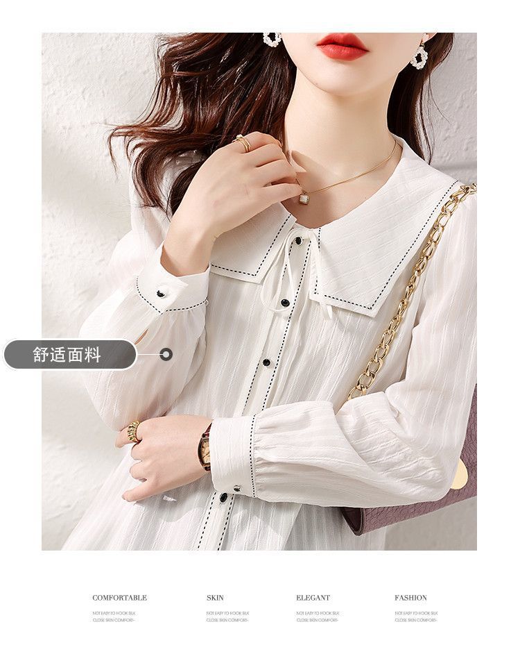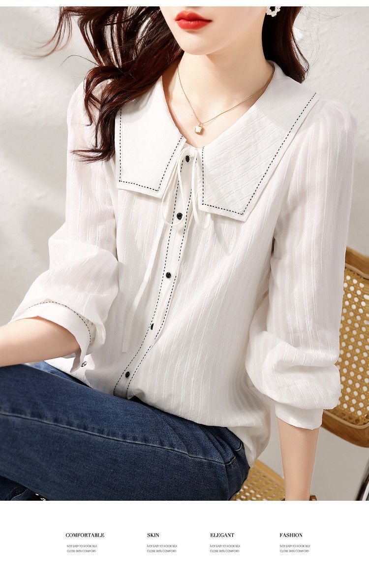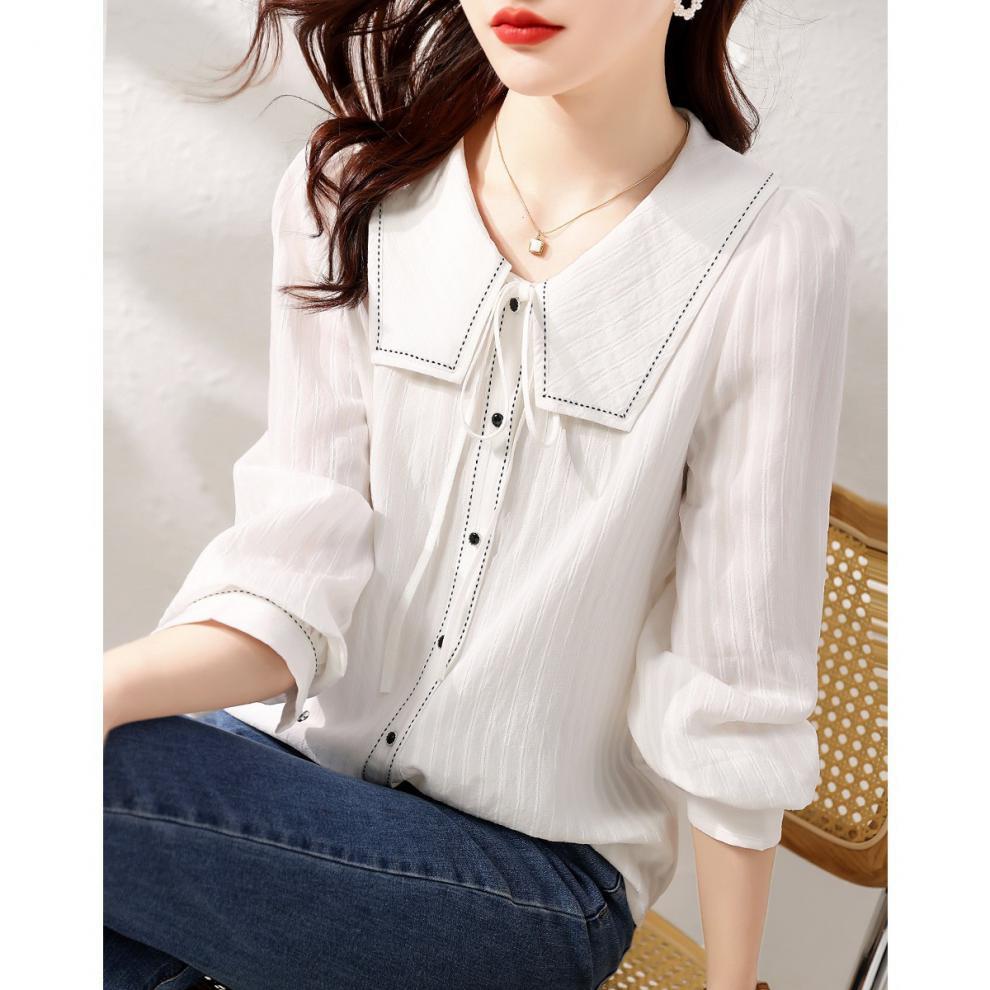새로운 도시 스타일 간단한 나이 감소 올 매치 플라잉 슬리브 긴 소매 탑 우아한 쉬폰 셔츠